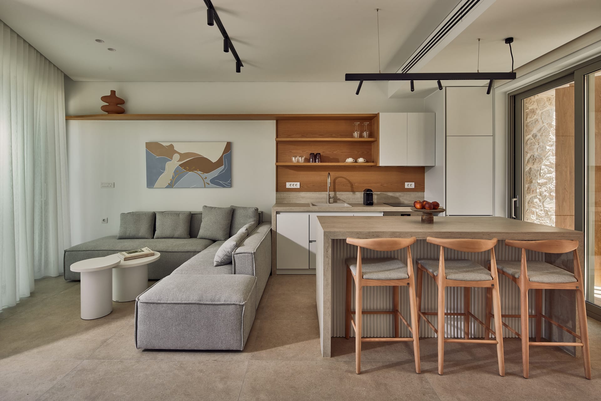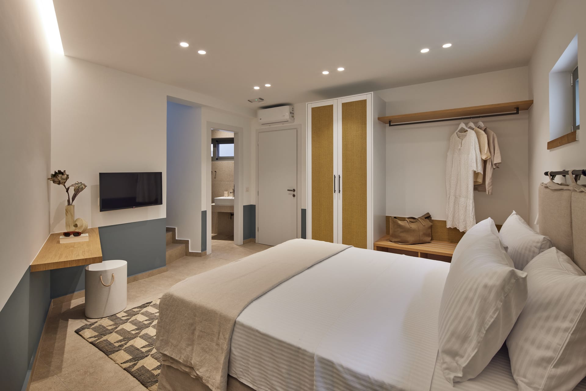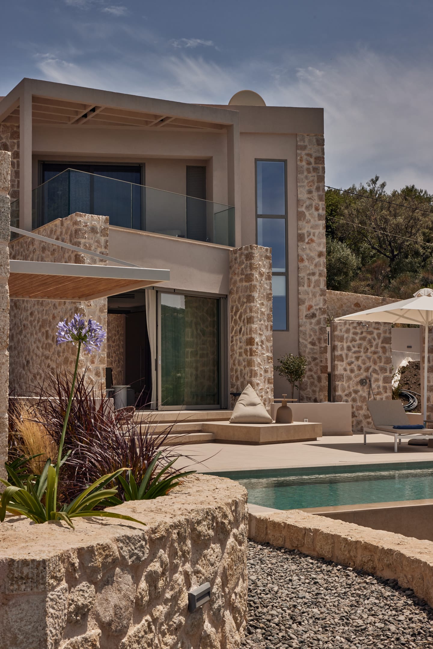 In a private estate of 4500 sqm, we have created 3 eye-catching buildings of 80 sqm surrounded by 3 private pools and gardens. The ideal accommodation for couples or families who appreciate comfort and privacy. Modern decoration, top class amenities and high-end facilities will charm you. Large windows allow excellent views over the Ionian sea and the port of Lefkada. Each Villa can accommodate 4 guests in 3 levels, offering 2 bedrooms, 3 bathrooms, a living room and a fully equipped kitchen promising a memorable stay. The facilities are furnished and decorated with natural colors in an artistic design. Private parking lots are also available for our guests.