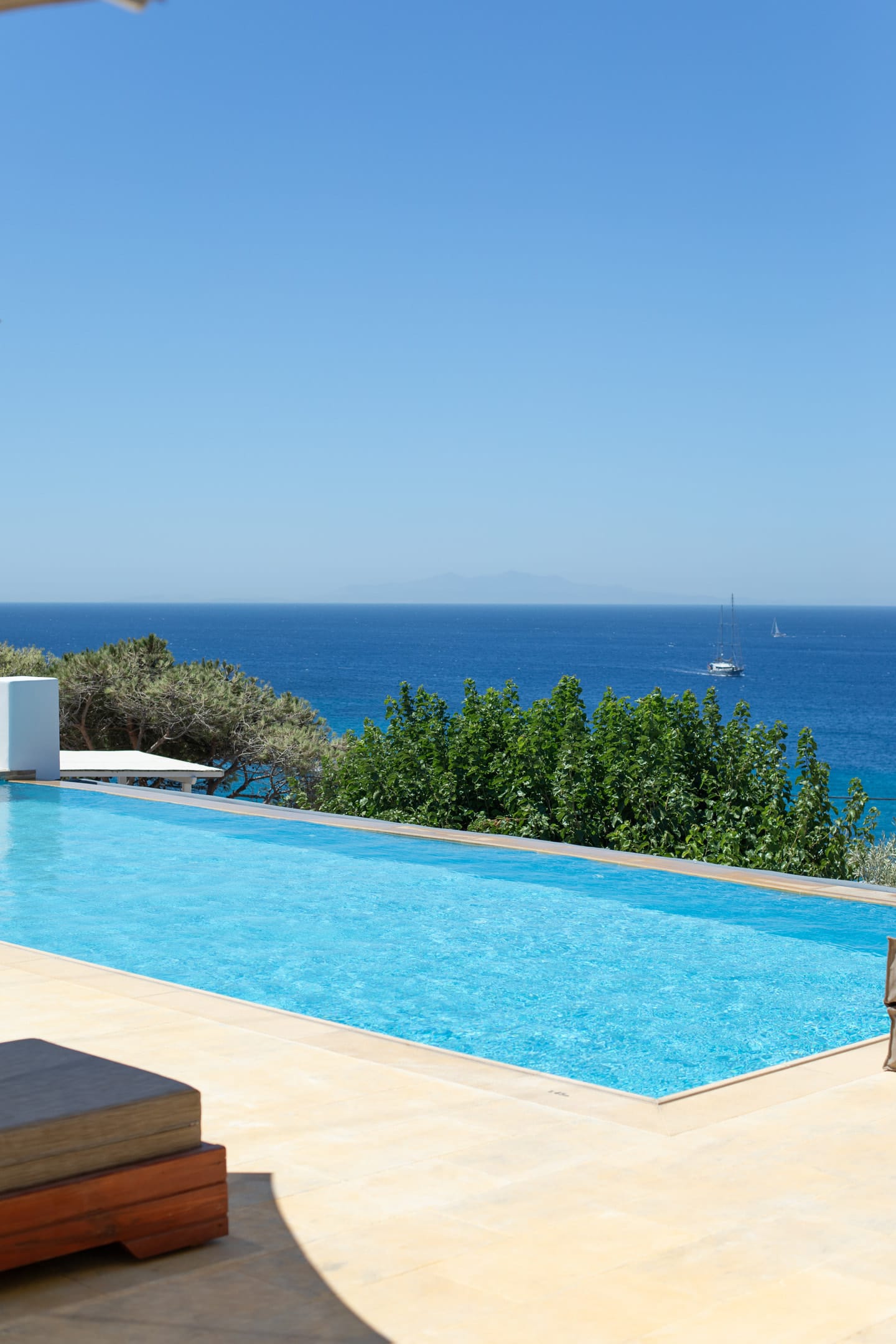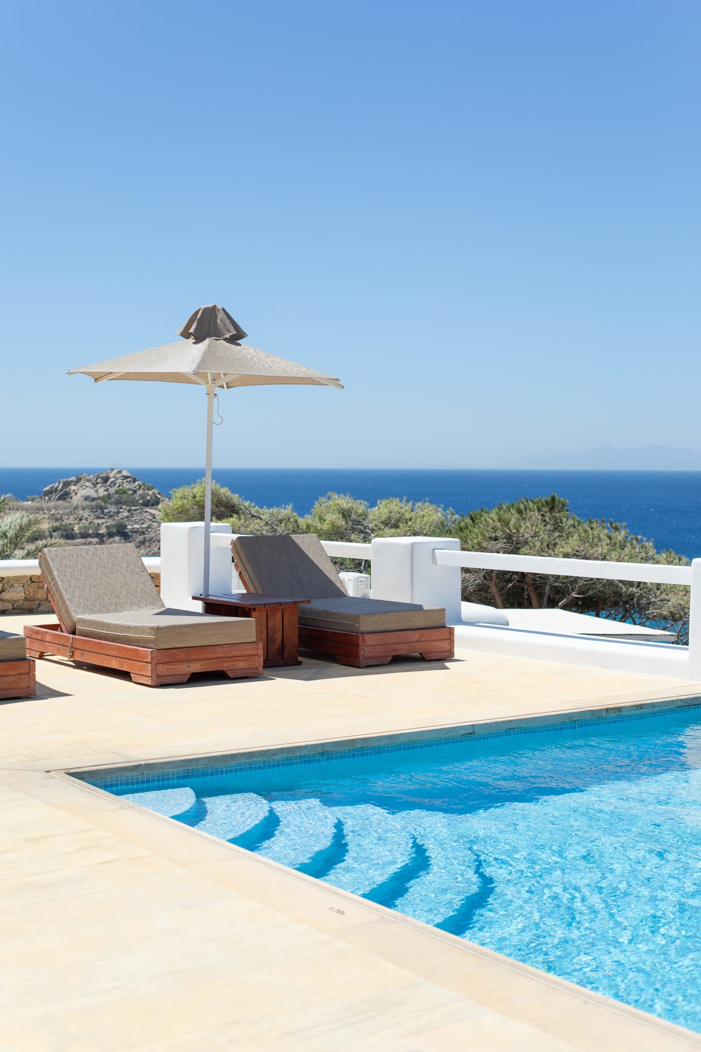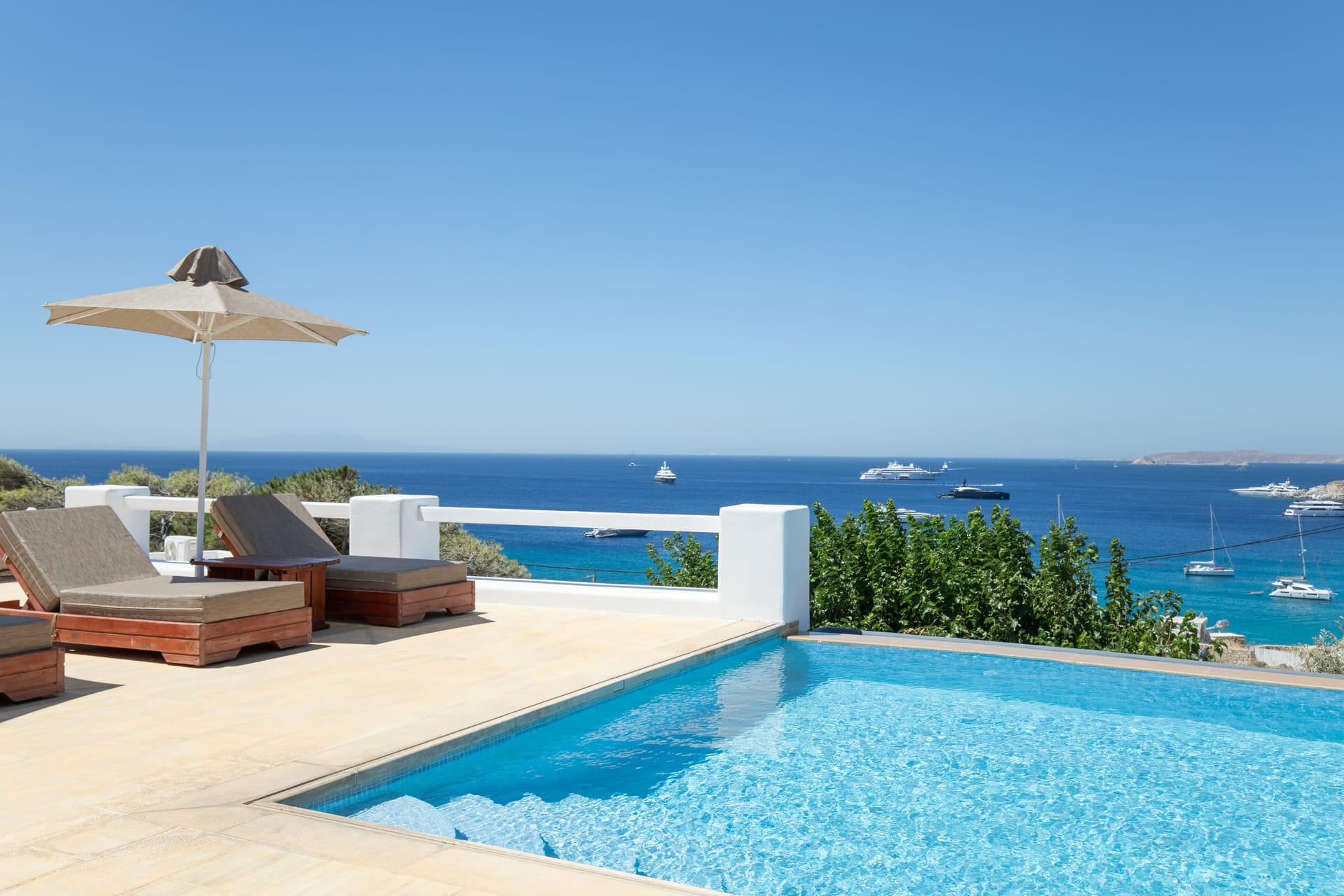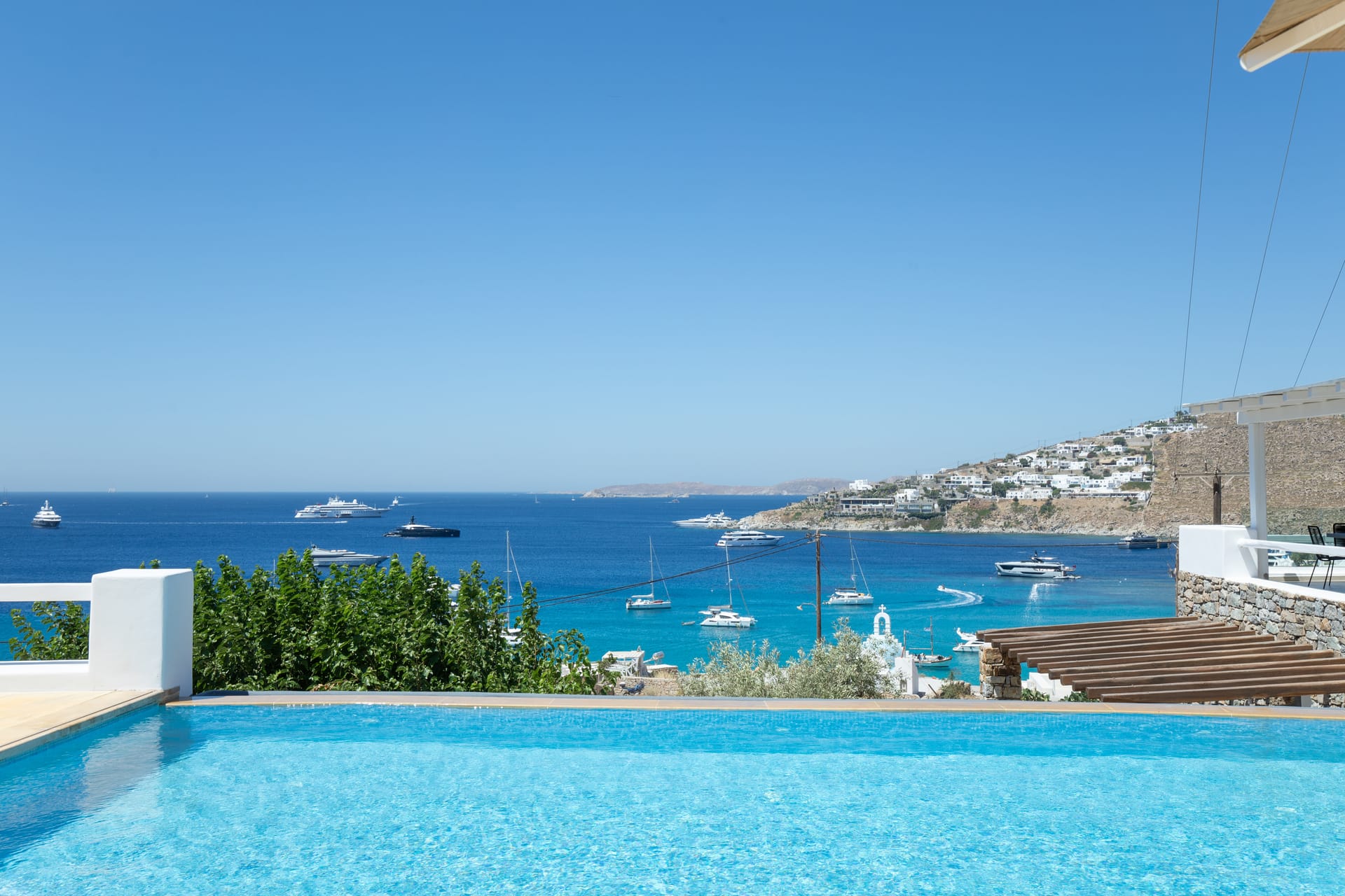 Unique and minimalist Cycladic architecture has been used in the decoration. The entire hotel areas are decorated with natural colors, stone and wood, combining elegance and comfort. The rooms and suites, as well as the swimming pool area offer a breathtaking view. The deep blue waters of the Aegean Sea, the ancient island of Delos and the magnificent neighboring islands are some of the sights enjoyed from either place.