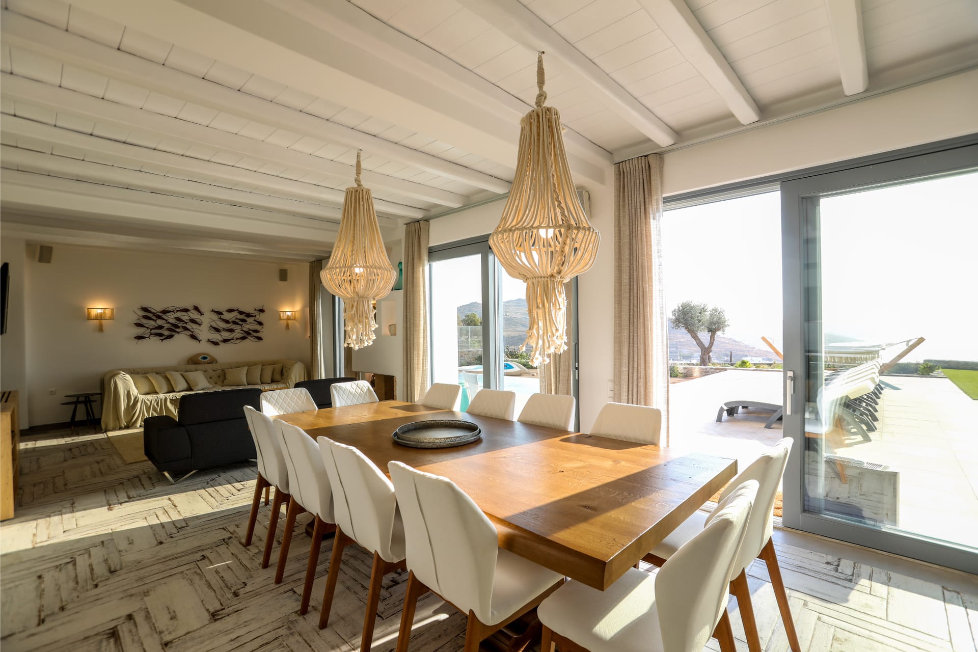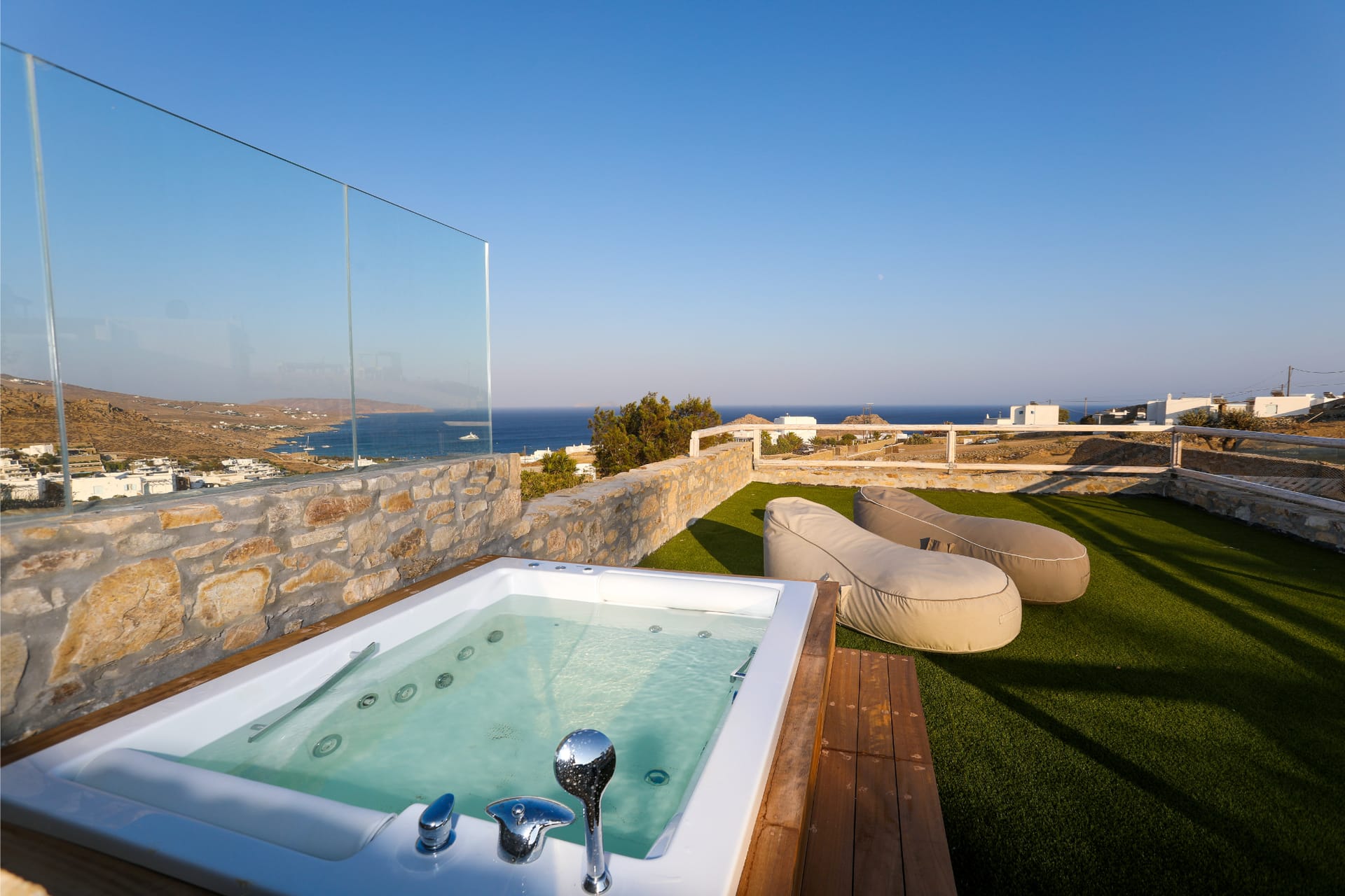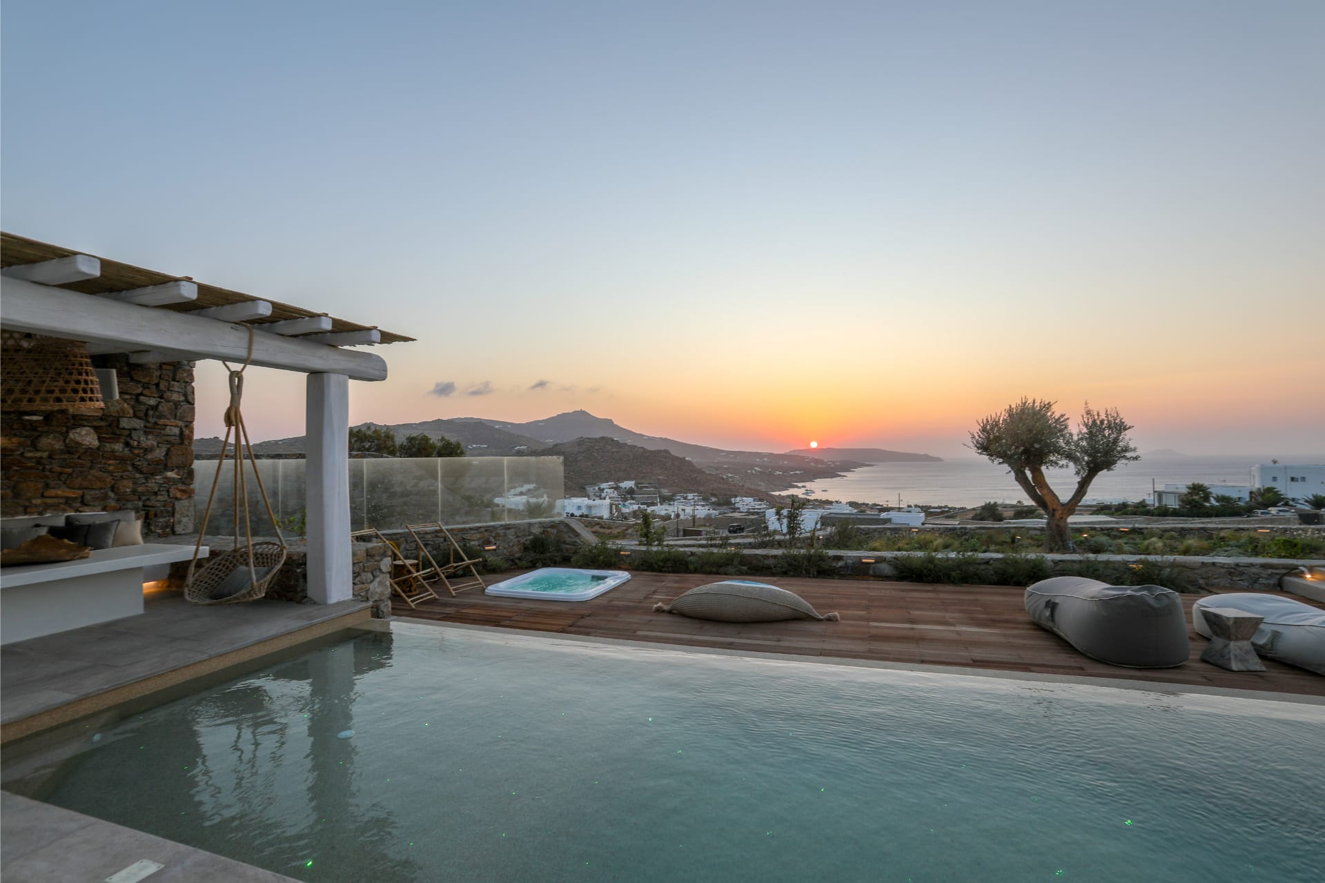 Relax and unwind in the inviting living rooms, furnished with cozy sofa beds for additional sleeping arrangements, or step outside to your private outdoor oasis. Whether it's the jacuzzi in Azalea, the pool with sun loungers in Elia, the pool with sun loungers and jacuzzi in Iakinthos, or the outdoor jacuzzi in Manolia, each villa offers the perfect setting for relaxation and indulgence.