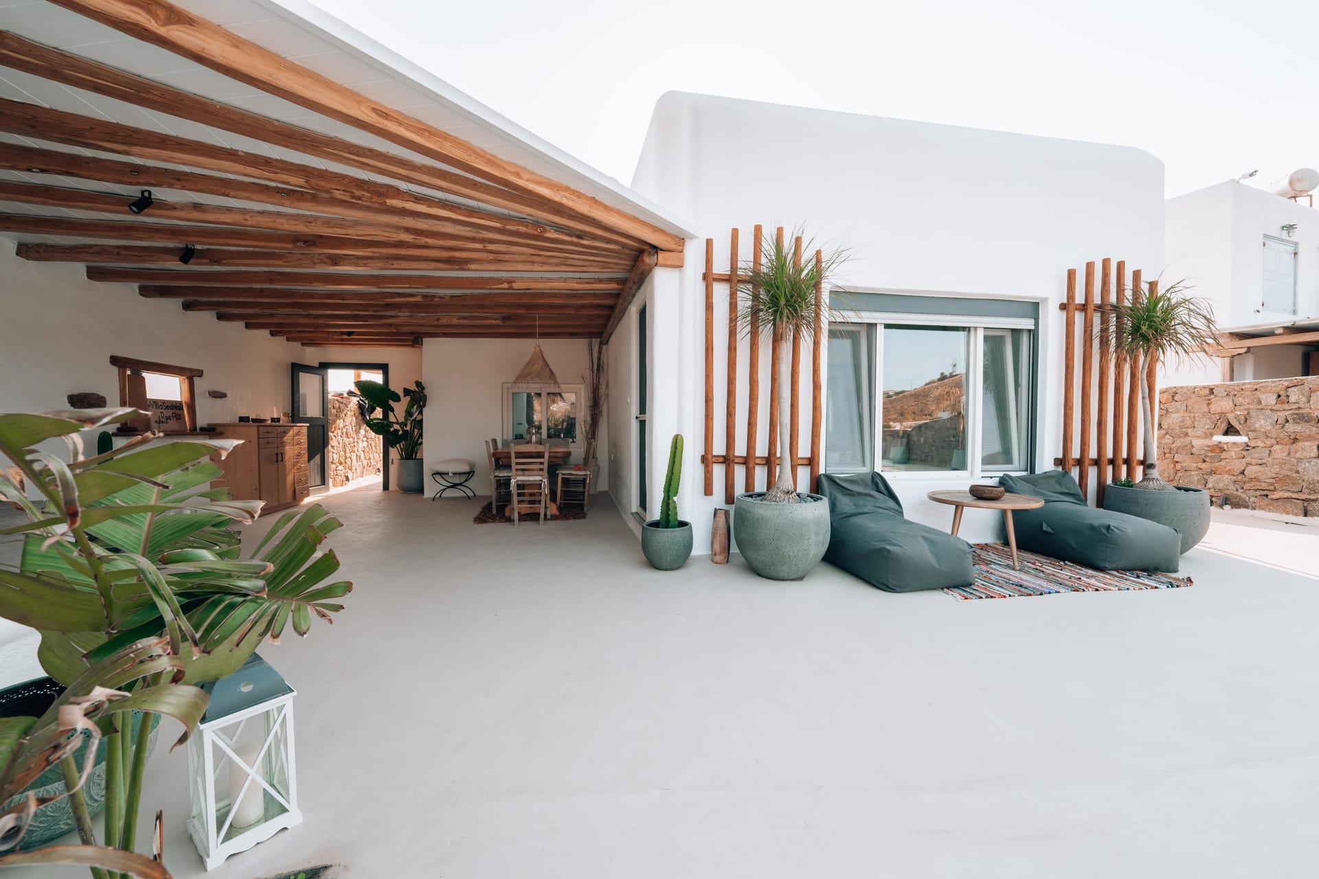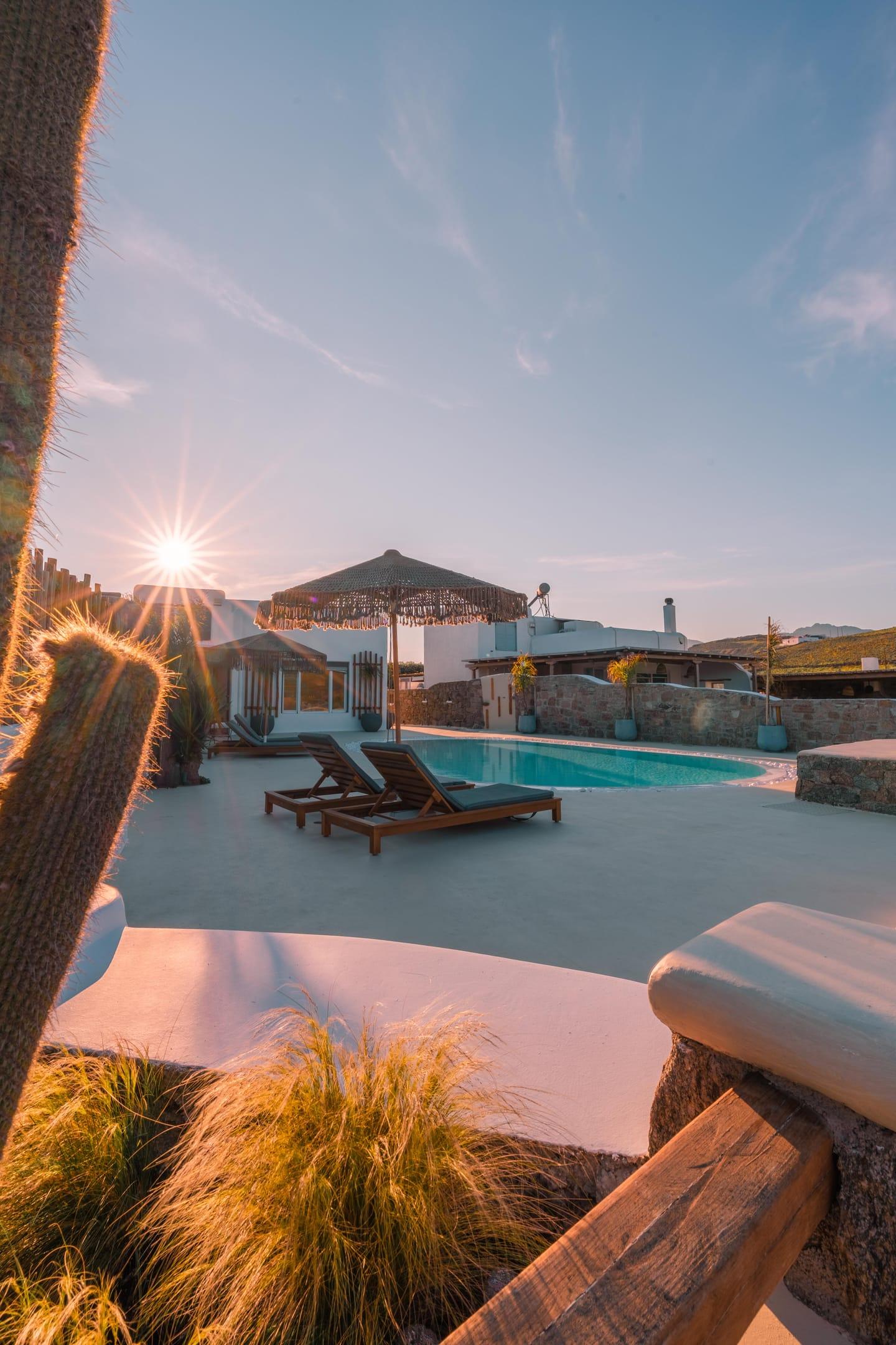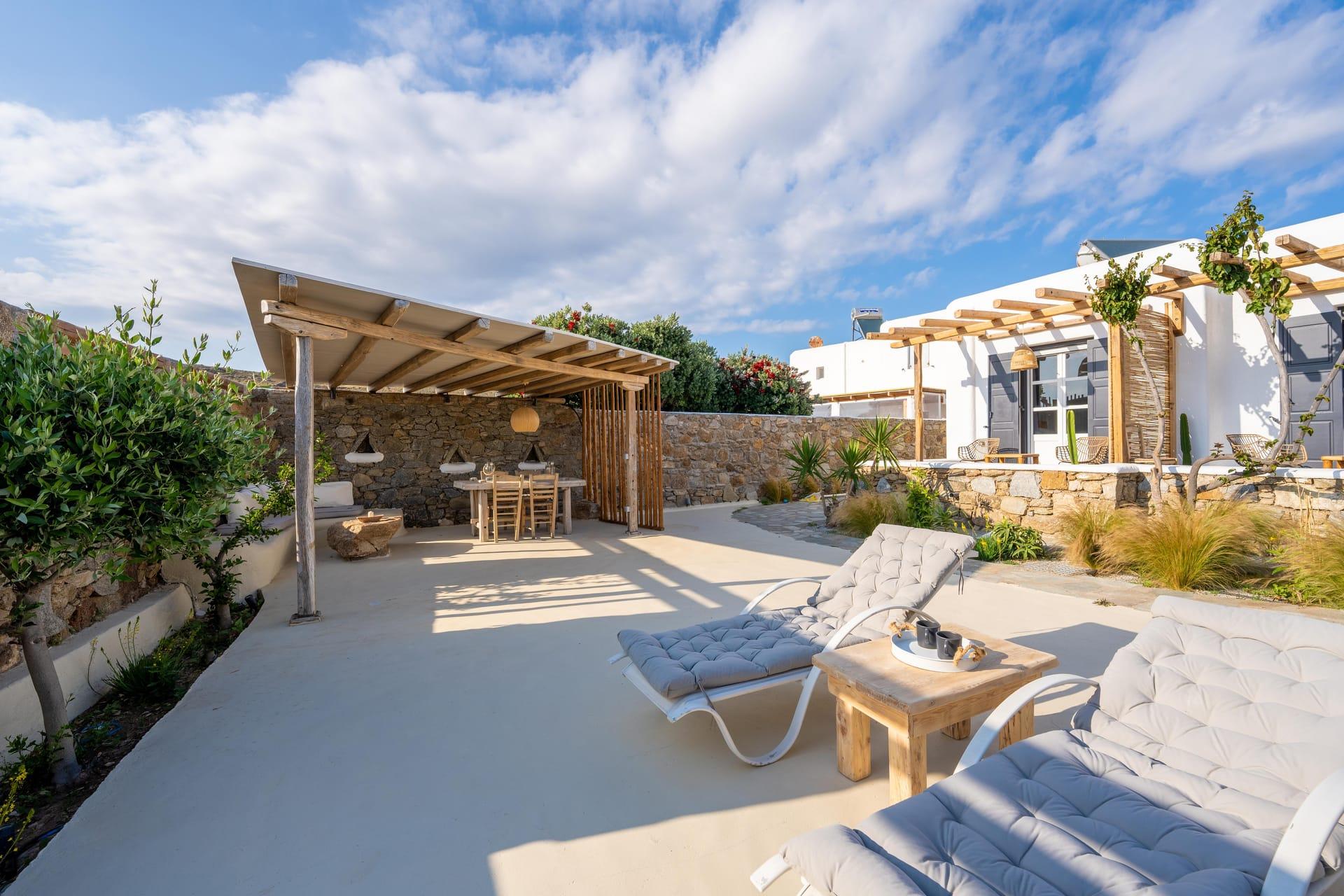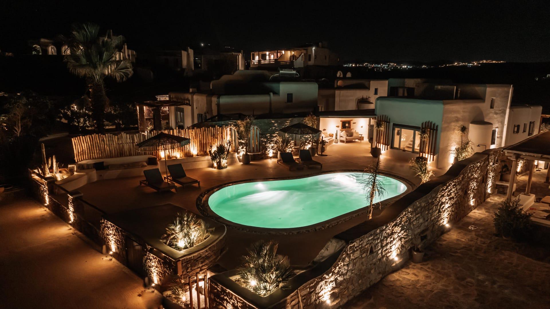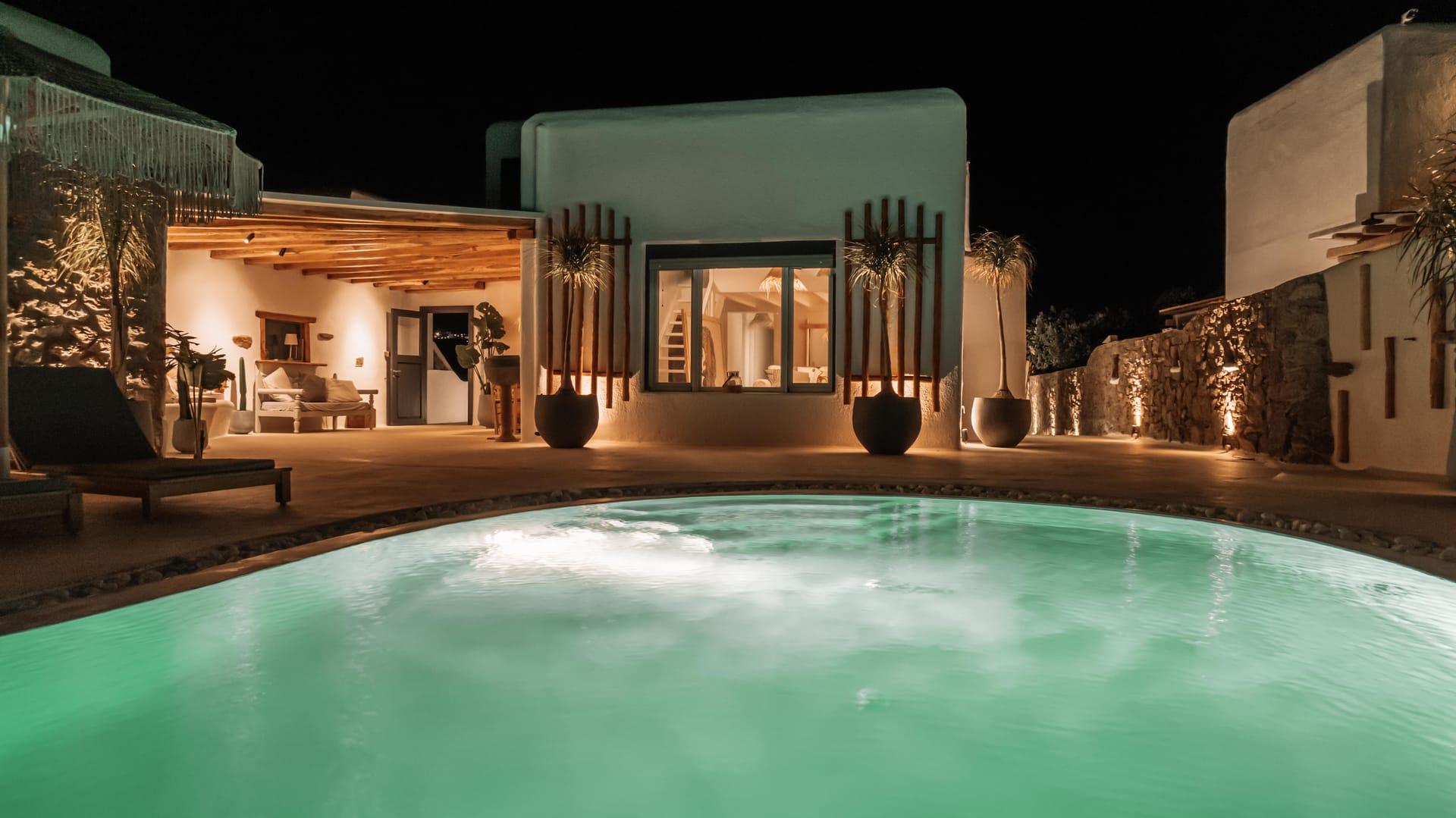 Unwind in the embrace of tranquility as you revel in the privacy of your own oasis, surrounded by lush landscapes and a sparkling private pool. Enjoy leisurely afternoons, lounging poolside and basking in the warm rays of the Mediterranean sun. Despite its proximity to the vibrant nightlife Mykonos is renowned for, our villa is nestled in a serene enclave, guaranteeing the utmost privacy and serenity throughout your stay.