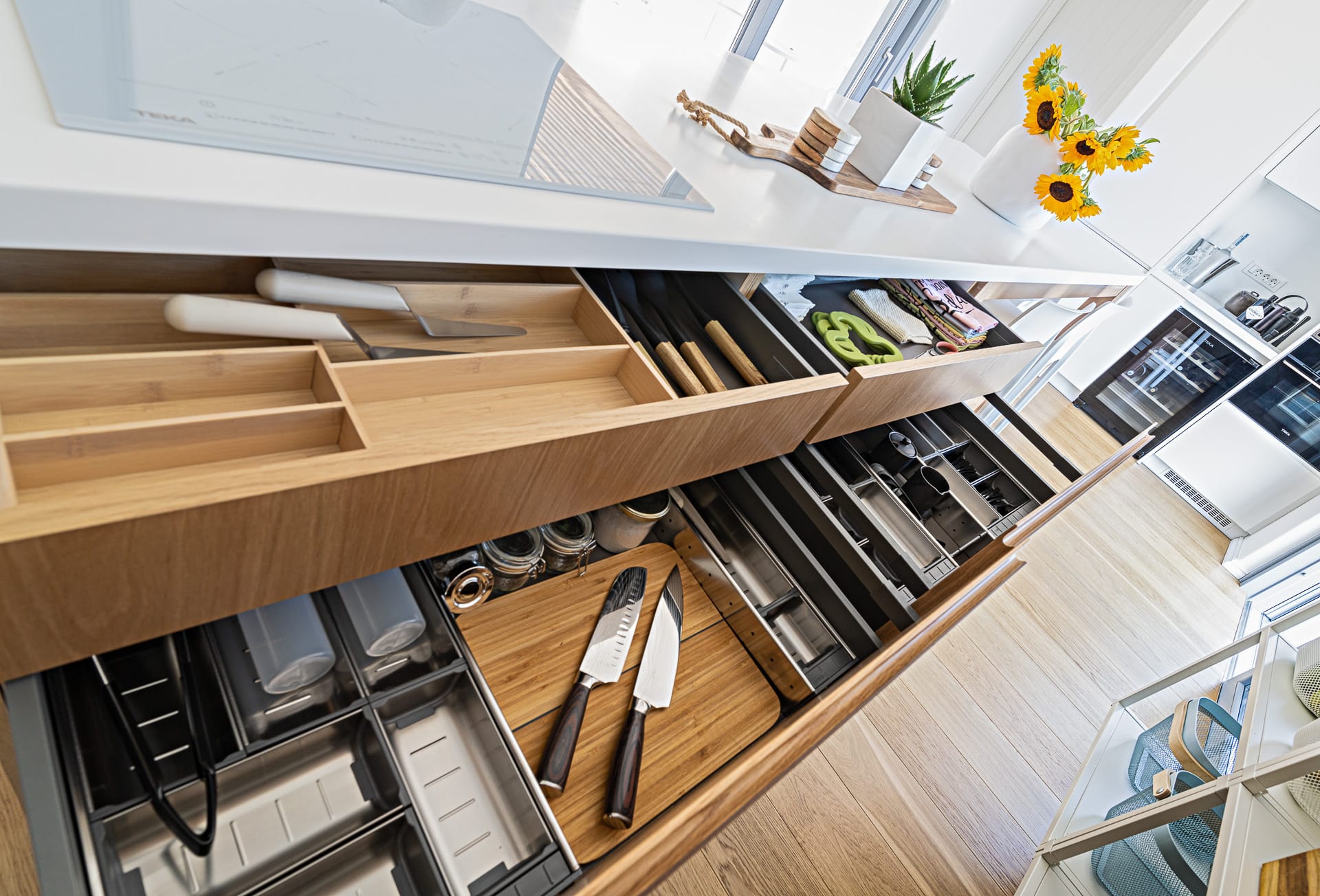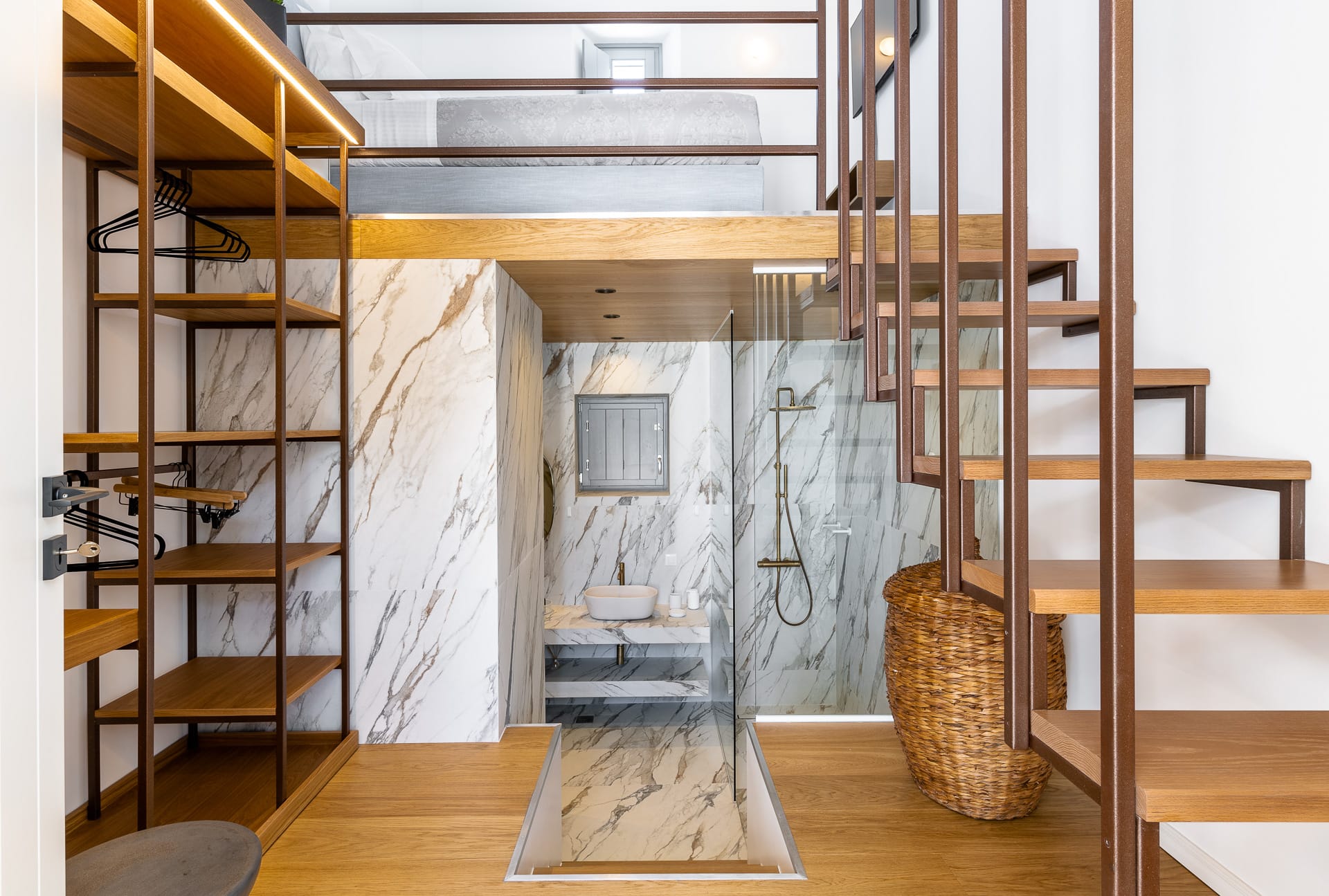 The garage connects with the main house with an internal staircase, while on the lower level, the laundryroom is located and soon the gym.