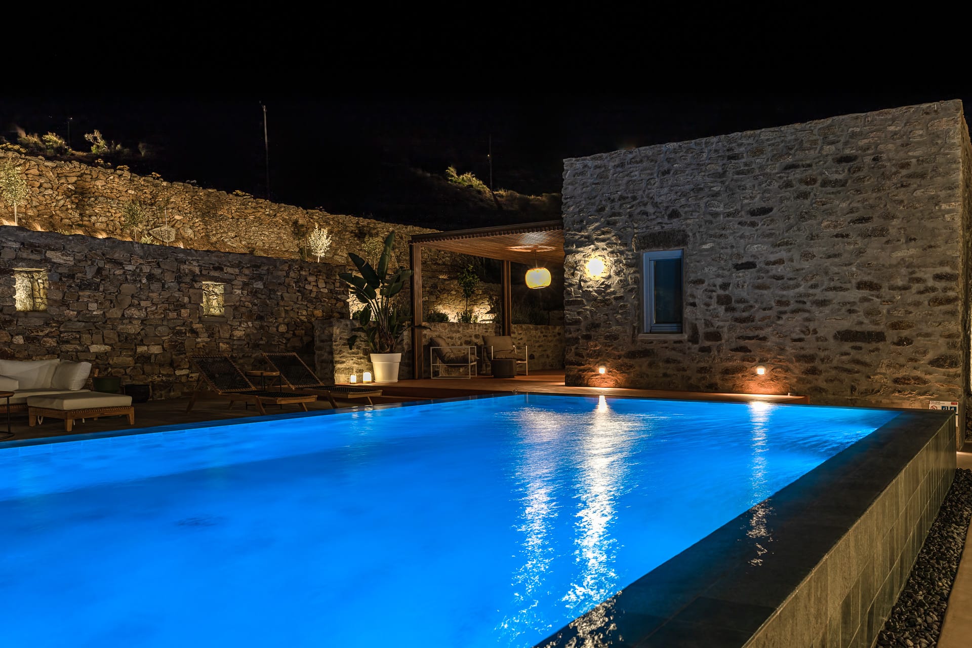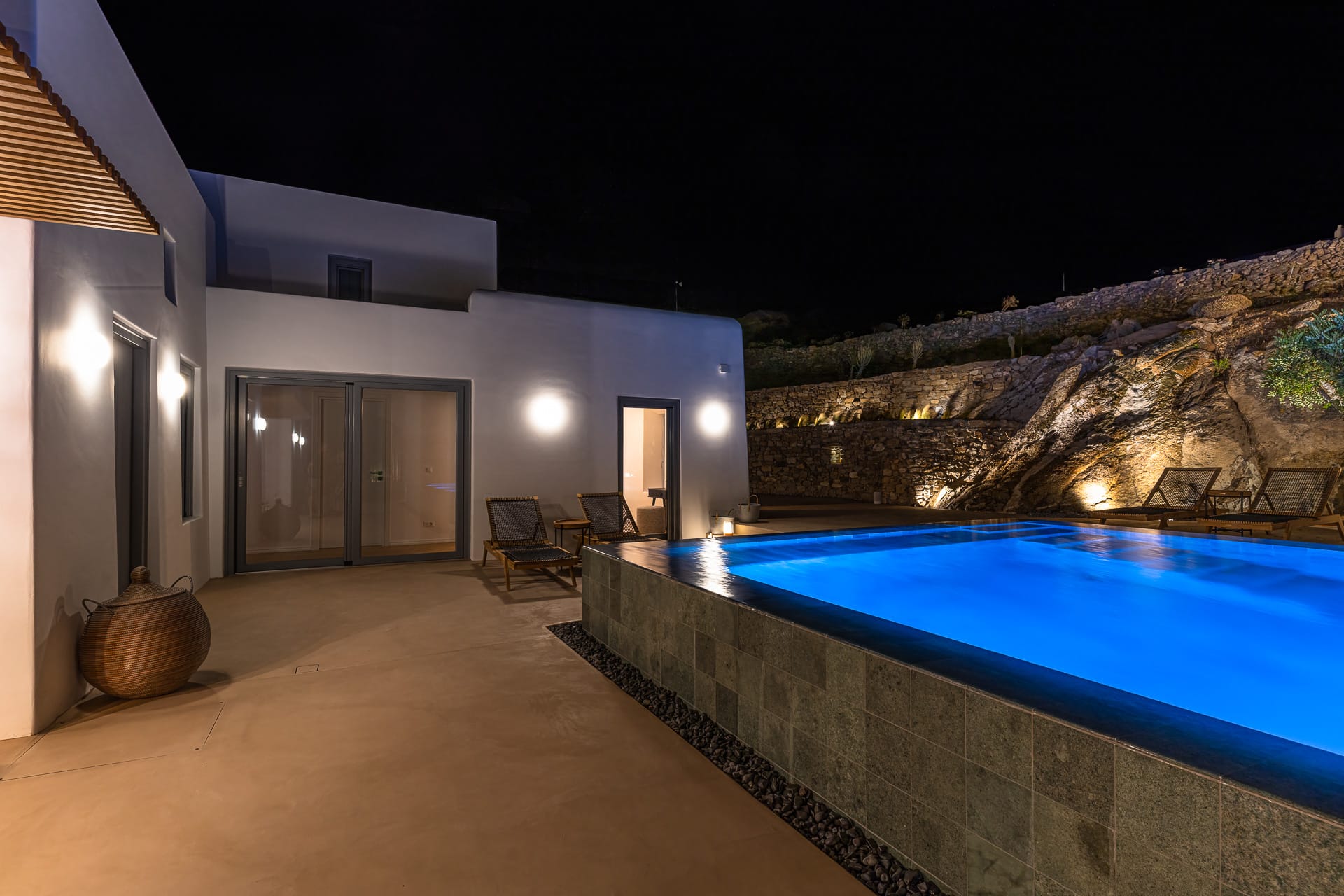 The luxurious Villa Cape Ftelia, is located in the area of Ftelia, about 15 minutes, by car from the town of Mykonos and 15 minutes’ drive from the airport of the island.
