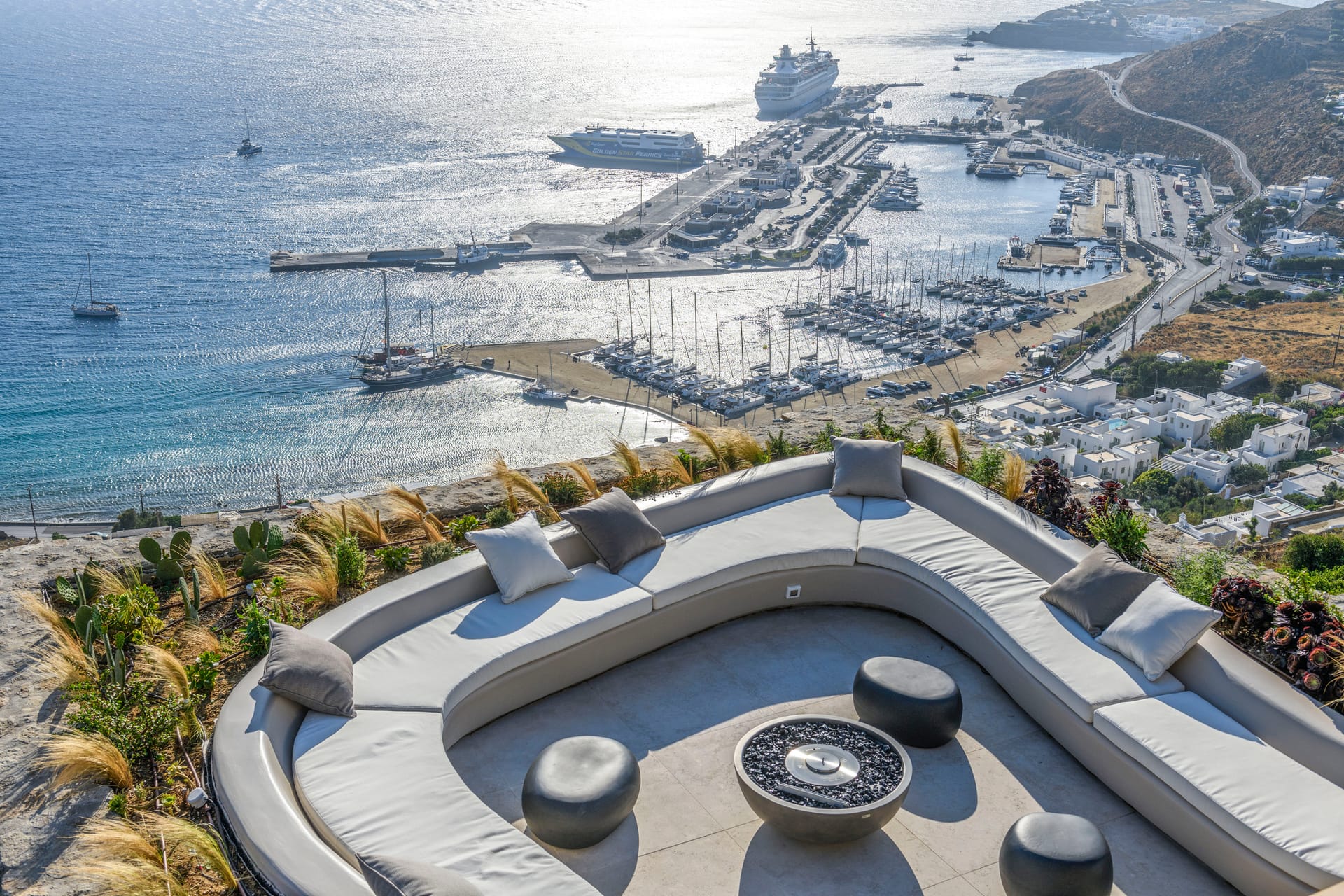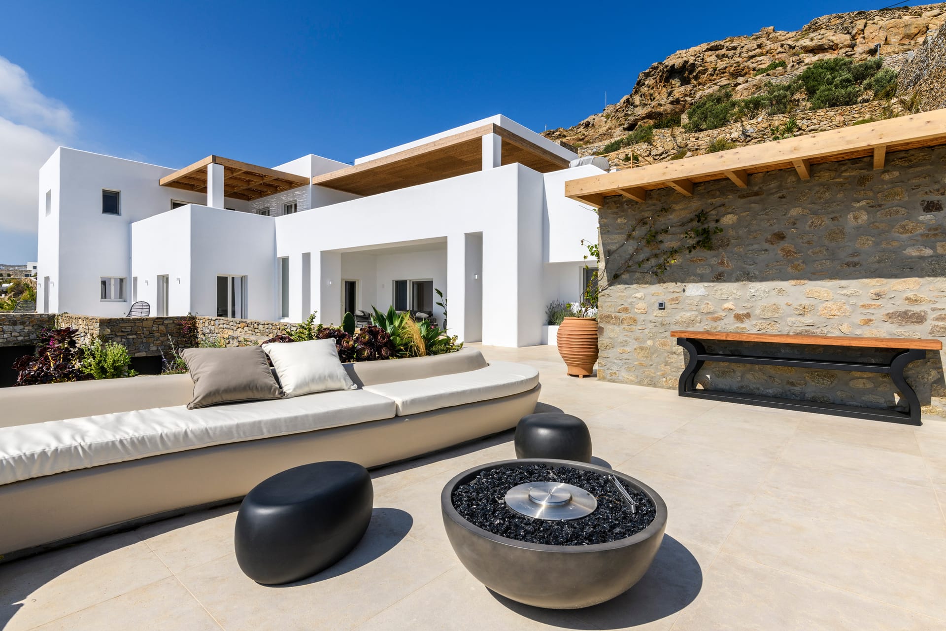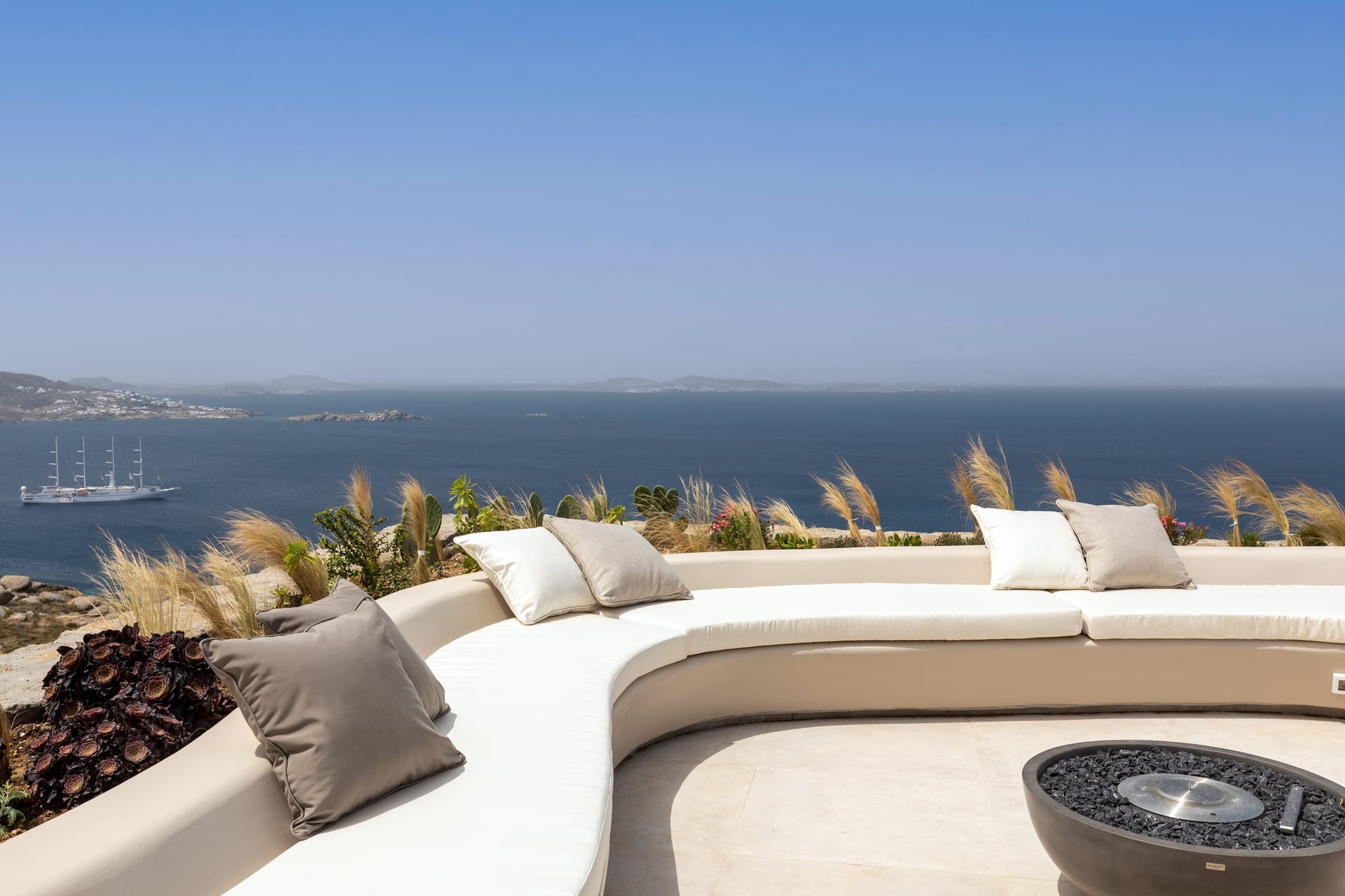 Nestled in the prime locale of Tourlos, Mykonos, a masterpiece villa perches on a picturesque hillside, exuding an aura of timeless elegance and effortless chic. This is Villa Silver Breeze, a luxurious retreat spread over 4.6 acres of pristine Mykonian landscape. The villa, primely located, offers a stunning panoramic view of Mykonos Town, the port and the islands of Delos, Rhenia, Tinos, Syros, and Paros. This unforgettable tableau captivates and enchants, providing uninterrupted vistas of the Aegean Sea. Far from fleeting trends, Silver Breeze stands as a testament to a design ethos that embraces timelessness. The villa is not about being fashionable; it's about creating a space that'll never feel dated, a minimalist delight wrapped in the elements of the Aegean Sea. This approach is evident in every corner of this luxurious abode, a space that embodies the simplicity of a Greek summer while offering the modern comforts of a high-end residence.