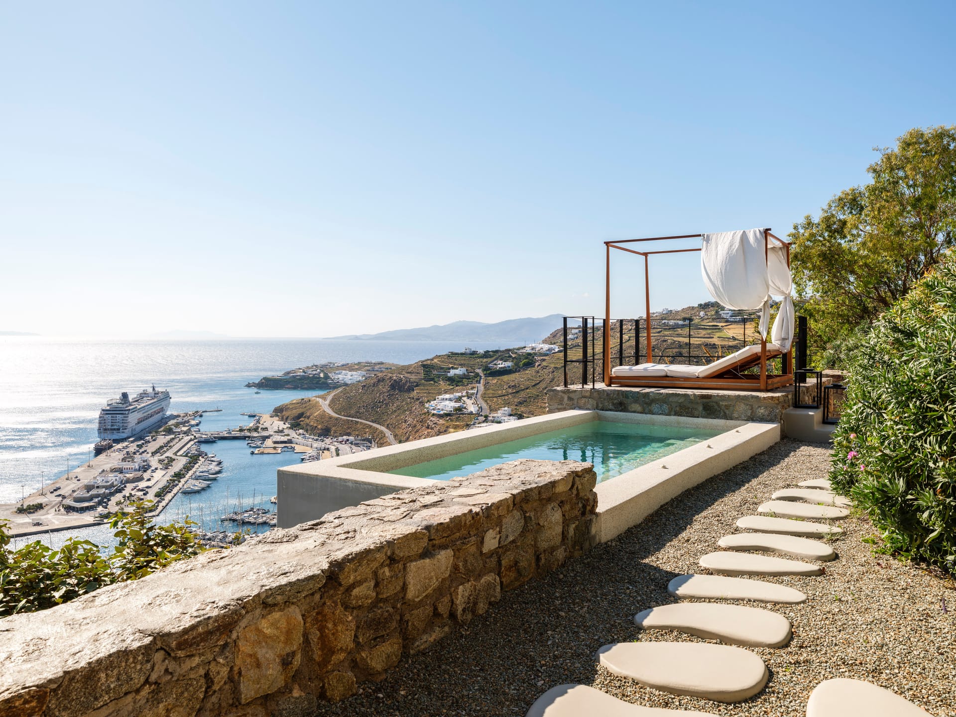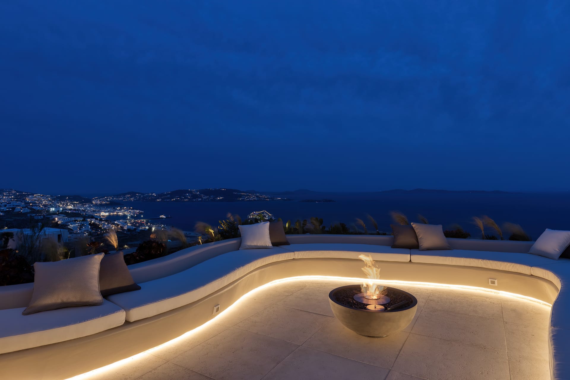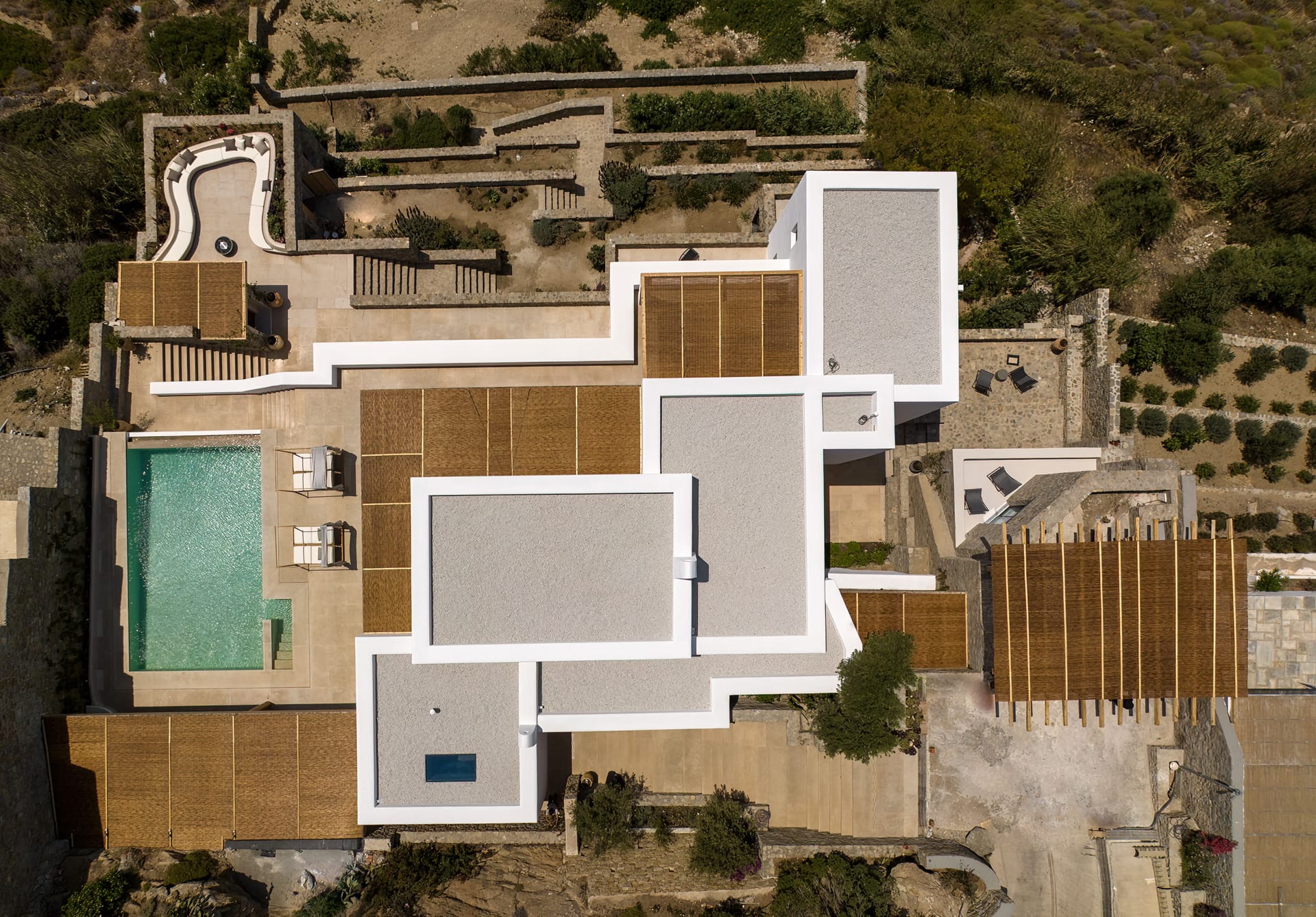 Nestled in the prime locale of Tourlos, Mykonos, a masterpiece villa perches on a picturesque hillside, exuding an aura of timeless elegance and effortless chic. This is Villa Silver Breeze, a luxurious retreat spread over 4.6 acres of pristine Mykonian landscape. The villa, primely located, offers a stunning panoramic view of Mykonos Town, the port and the islands of Delos, Rhenia, Tinos, Syros, and Paros. This unforgettable tableau captivates and enchants, providing uninterrupted vistas of the Aegean Sea. Far from fleeting trends, Silver Breeze stands as a testament to a design ethos that embraces timelessness. The villa is not about being fashionable; it's about creating a space that'll never feel dated, a minimalist delight wrapped in the elements of the Aegean Sea. This approach is evident in every corner of this luxurious abode, a space that embodies the simplicity of a Greek summer while offering the modern comforts of a high-end residence.
