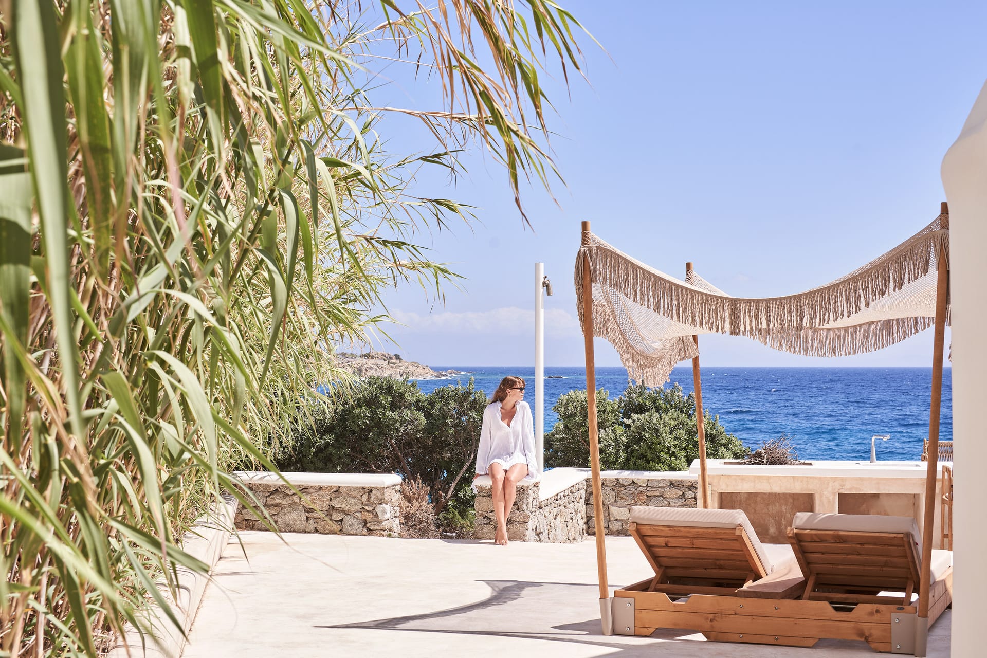 Villa Santa Katerina is located at Platis Gialos, Mykonos, Greece. It offers a great view of the sea as it is infront of it and it’s close to shops, café/bars, restaurants, beaches (Psarou beach, Pinky beach, and Paraga, Paradise beach Platis Gialos Beach - where you can enjoy swimming, watersports, food and drink), watersport facilities and a marina. You can come to the beautiful villa Santa Katerina by taxi (15 min), although free private and secure parking is available (no reservation needed). There is also a small church inside villa’s area. Especially popular with guests booking family stays, Villa Santa Katerina has 4 bedrooms with 4 queen-beds and a living room with a sofa-bed and can accommodate up to 8 guests.