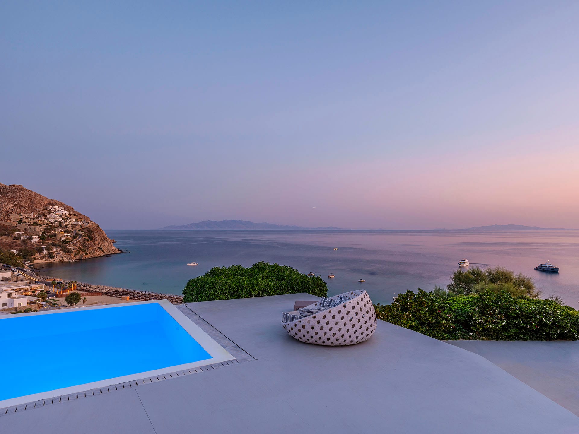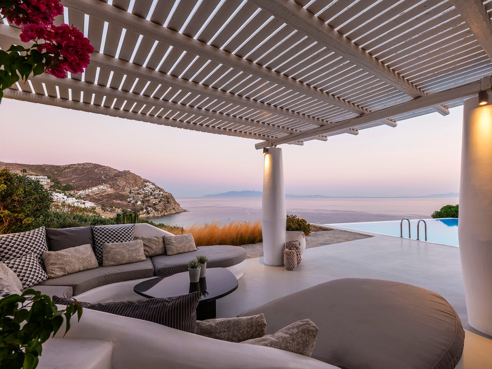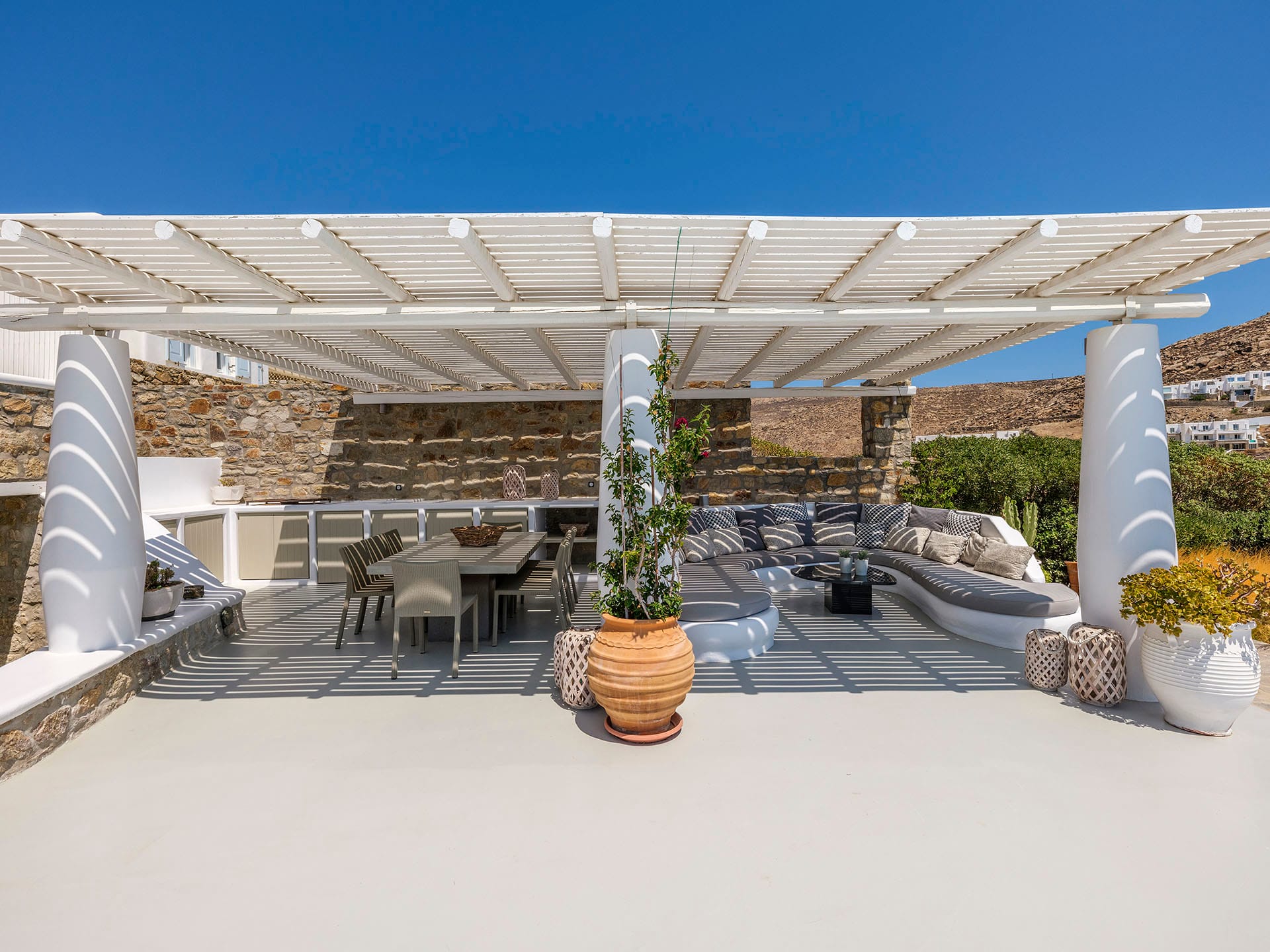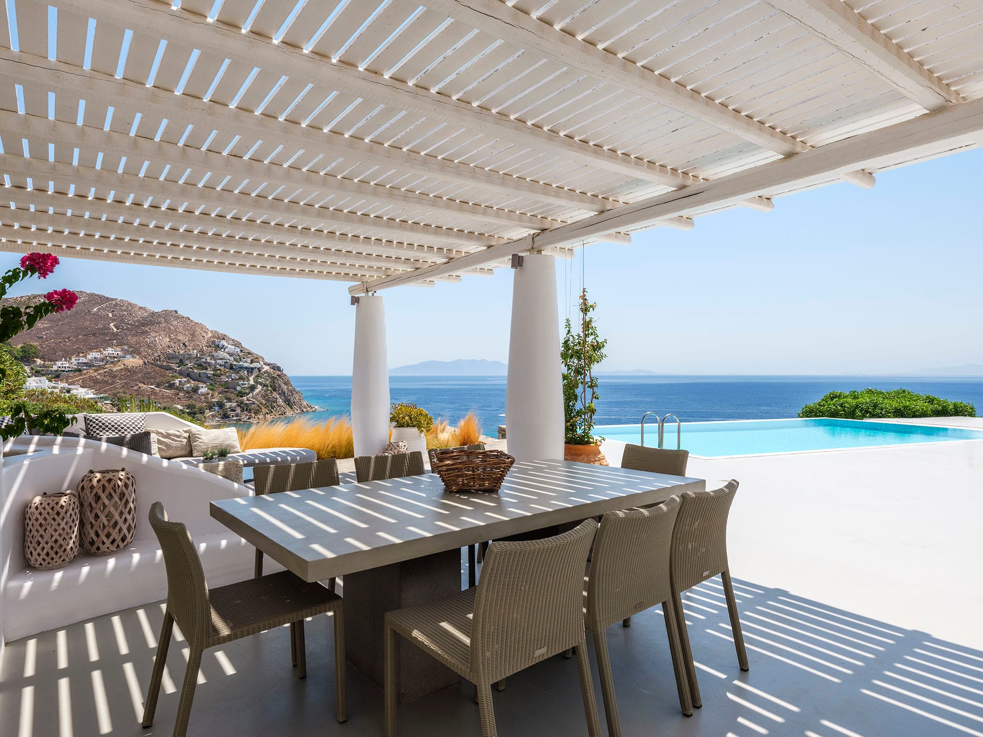 Villa Oleandri is a true private paradise that captivates with its stunning unobstructed views of the glistening Aegean Sea and the picturesque bay below. This unique location is just a short walk or drive from Eliá beach, making it an ideal base for sun-seekers.