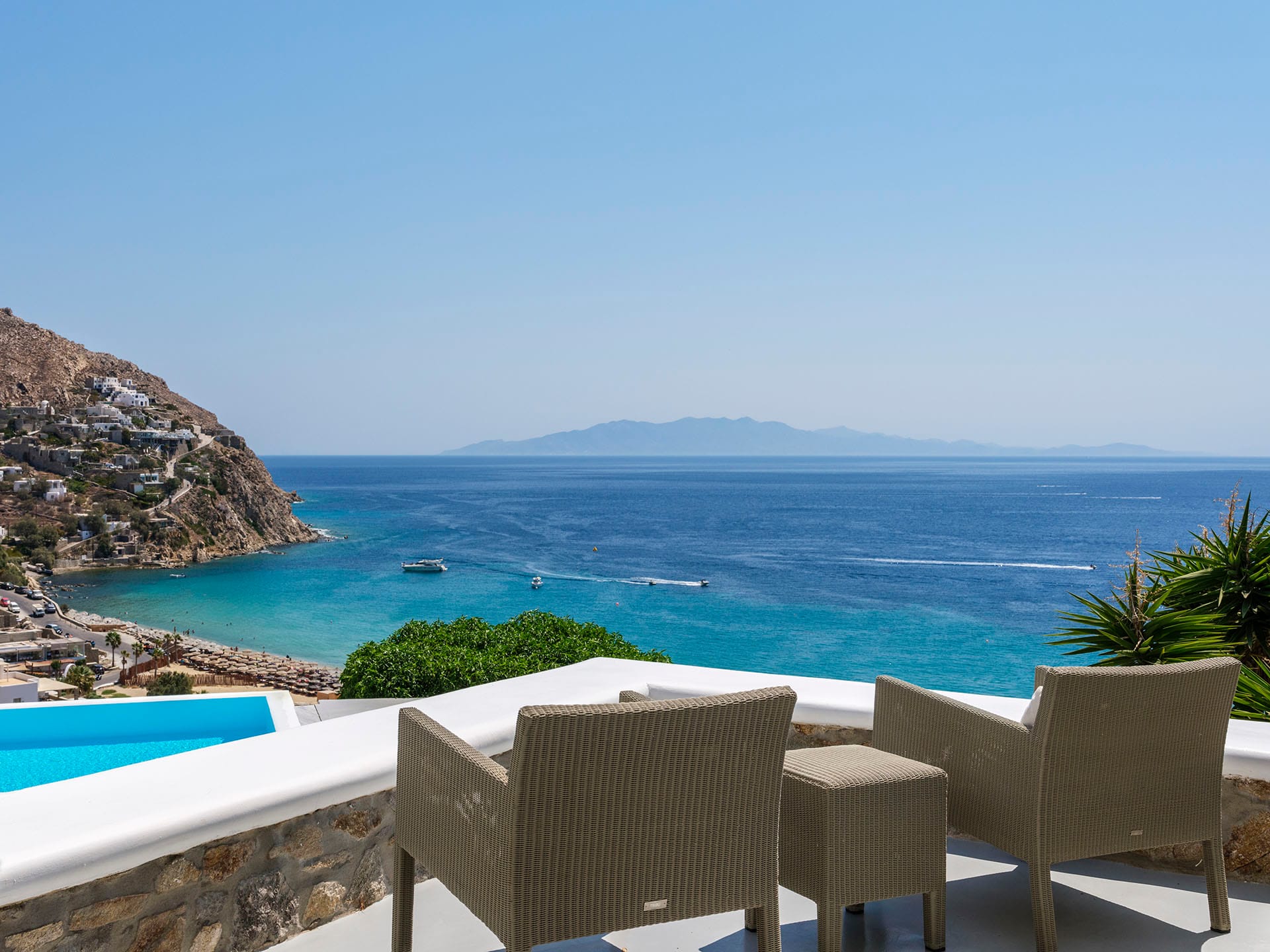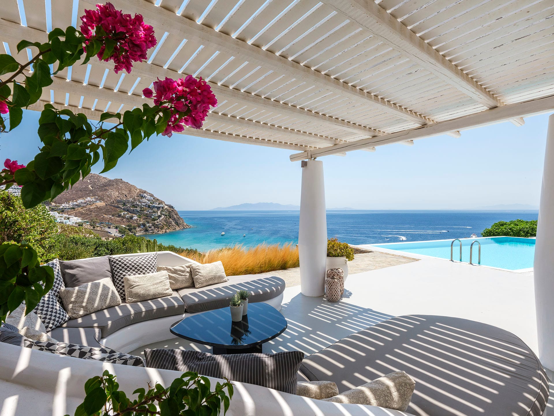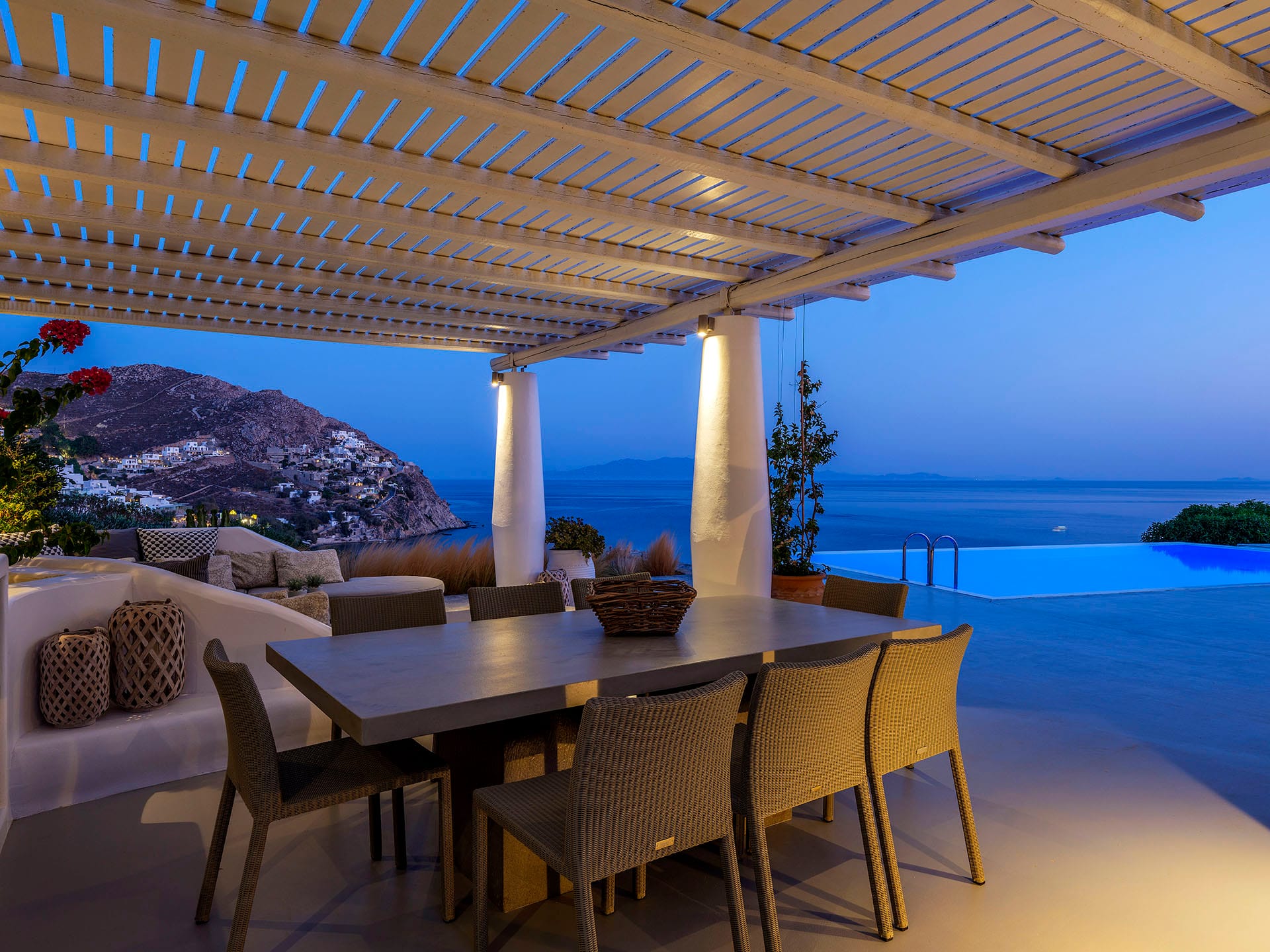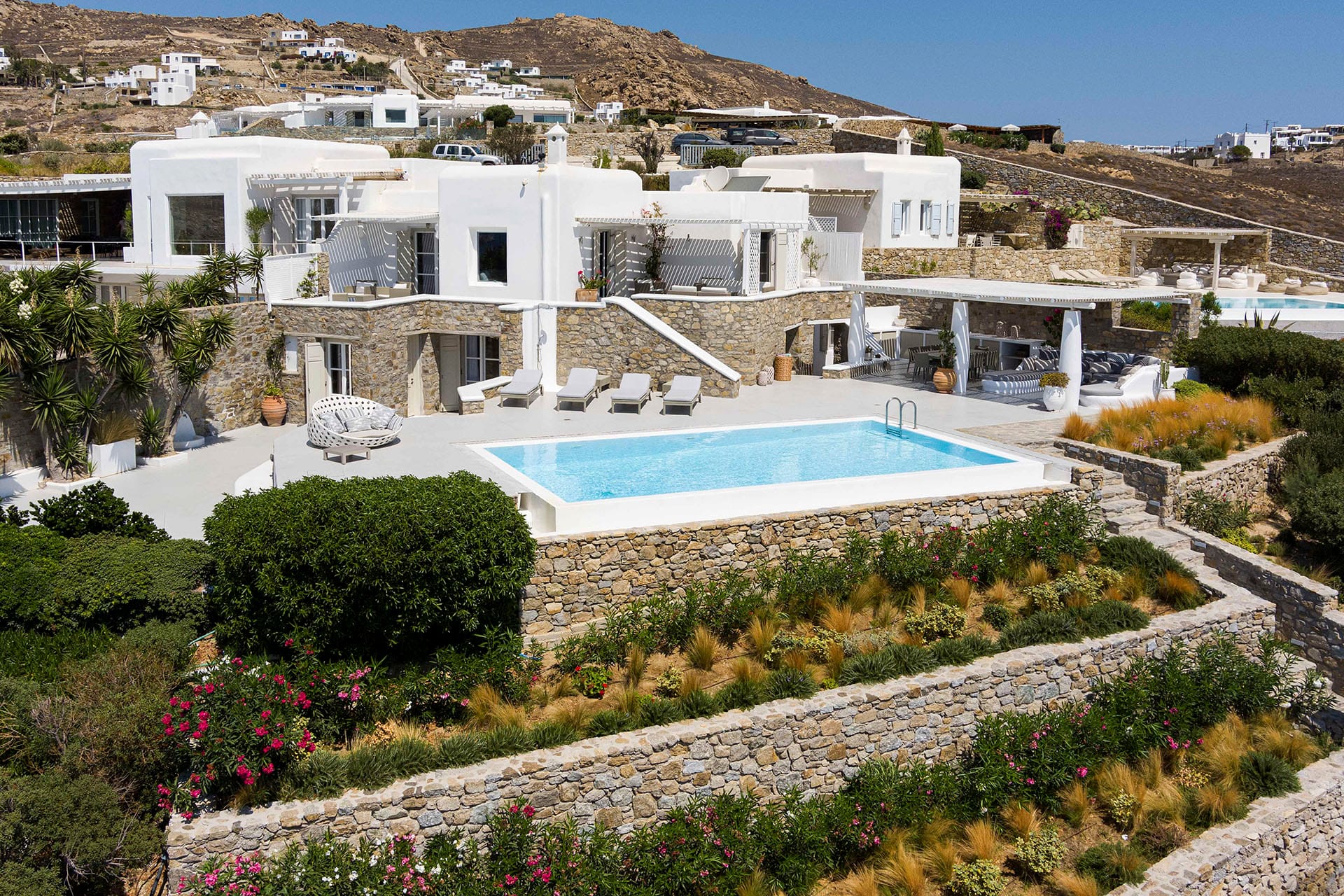 Villa Oleandri is a true private paradise that captivates with its stunning unobstructed views of the glistening Aegean Sea and the picturesque bay below. This unique location is just a short walk or drive from Eliá beach, making it an ideal base for sun-seekers.