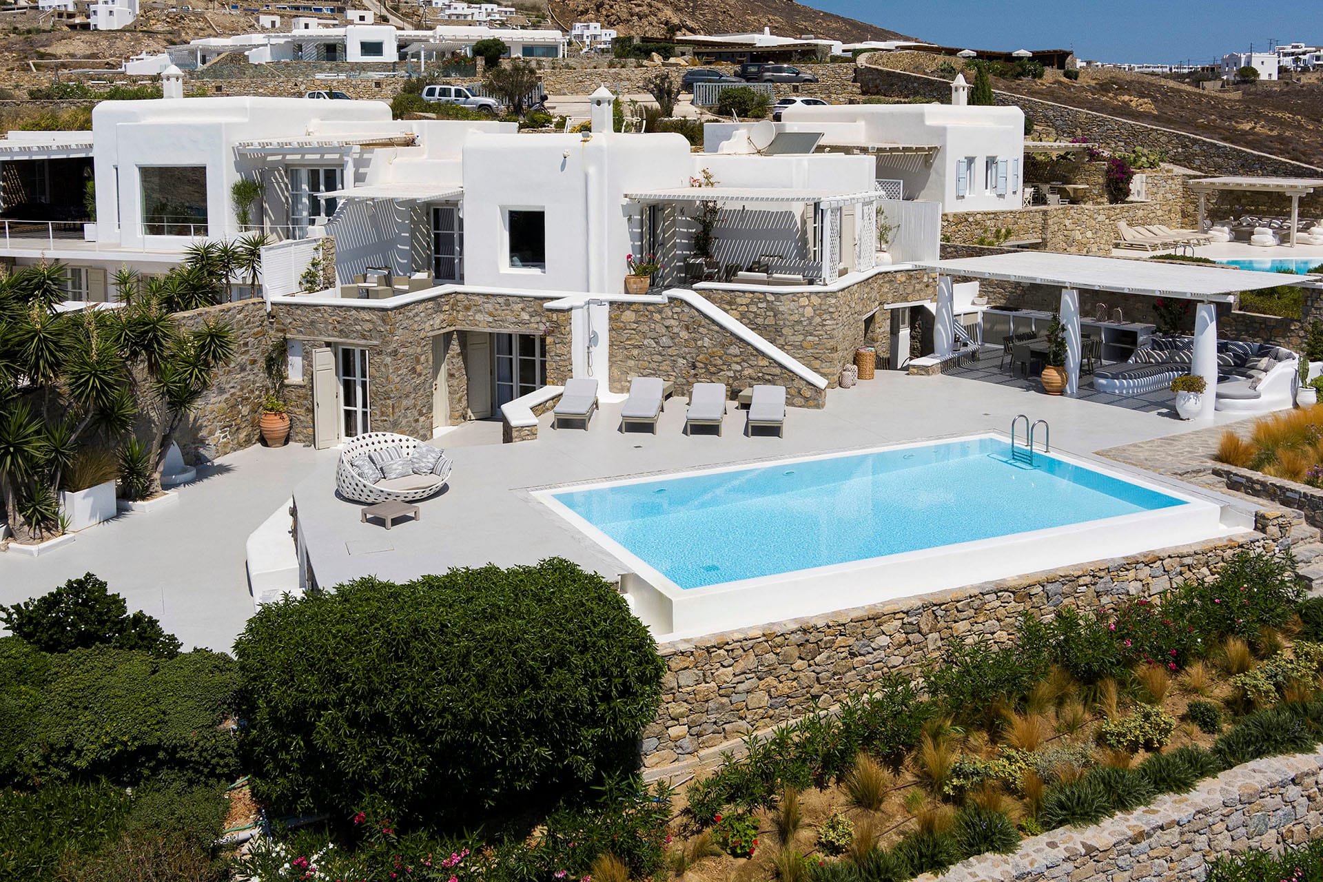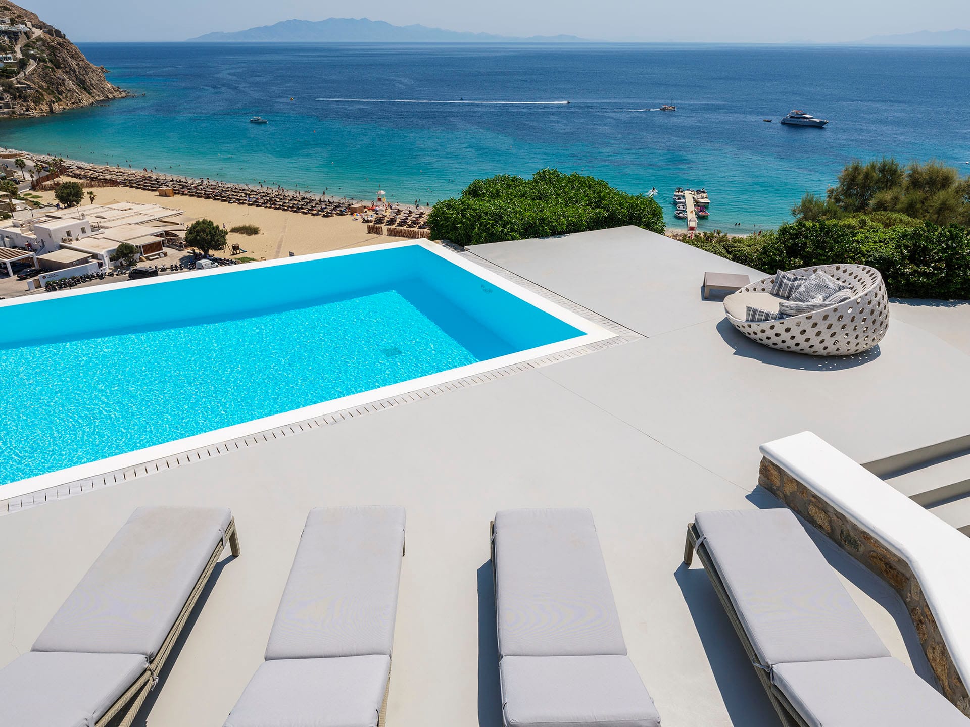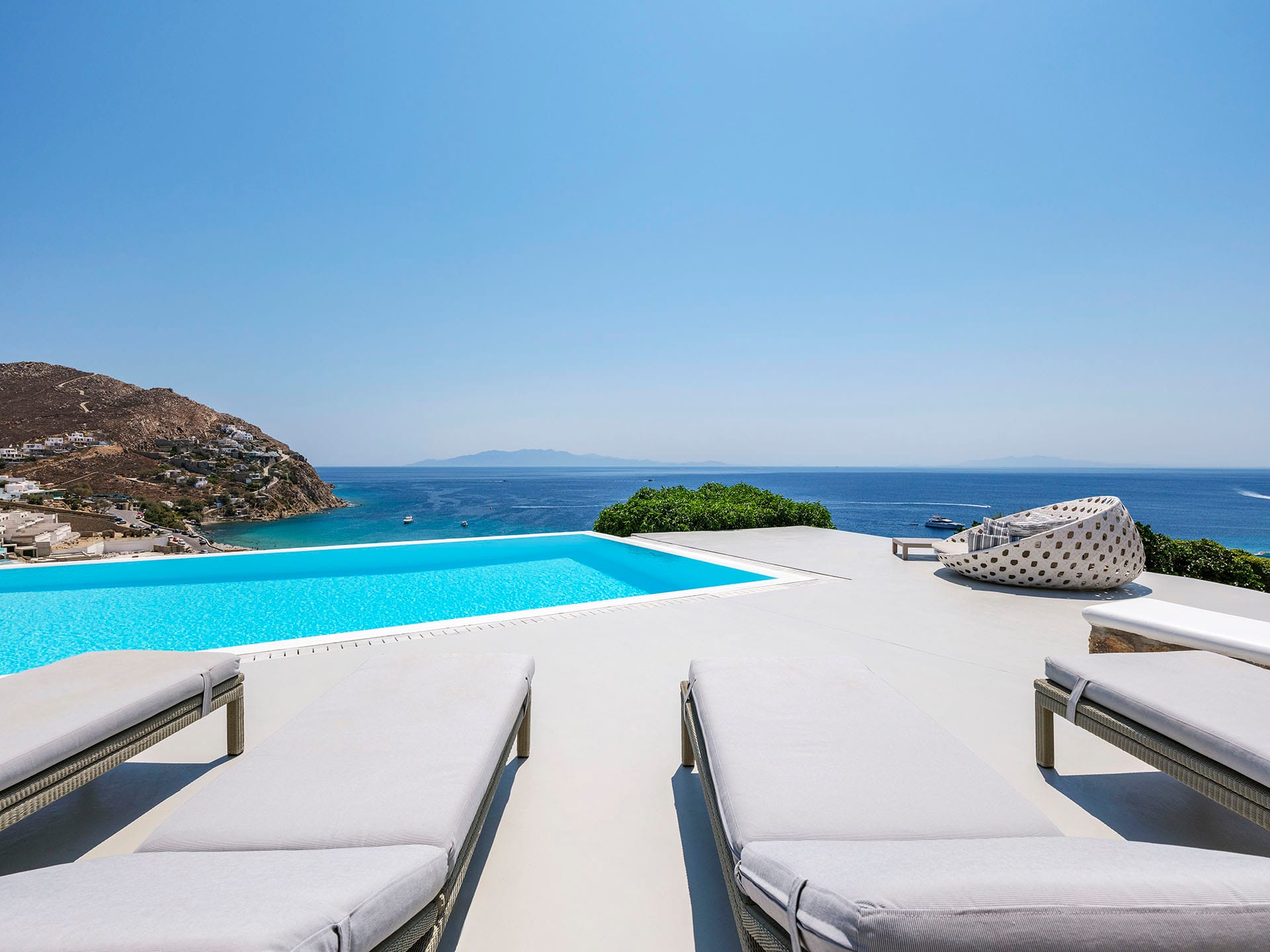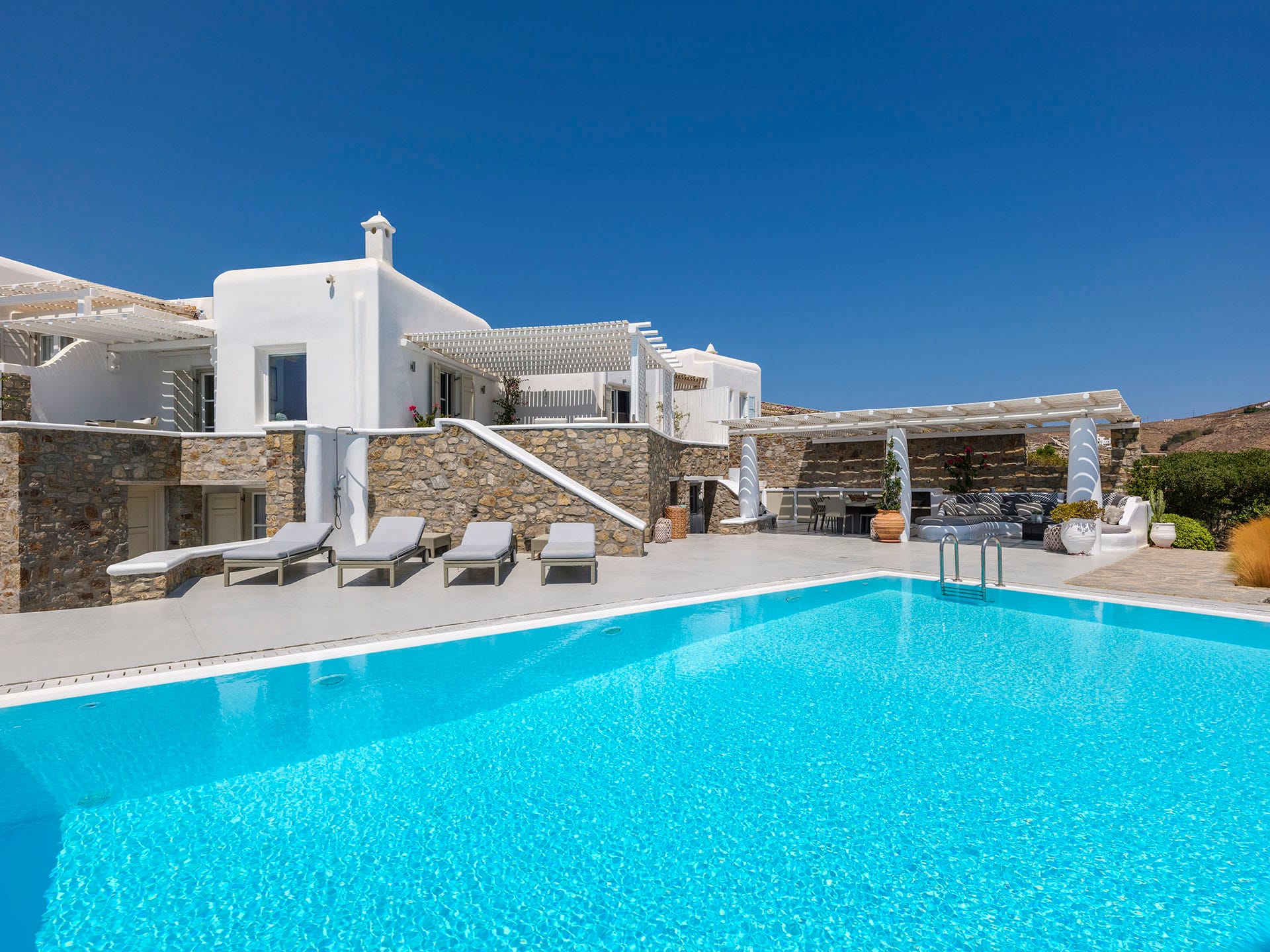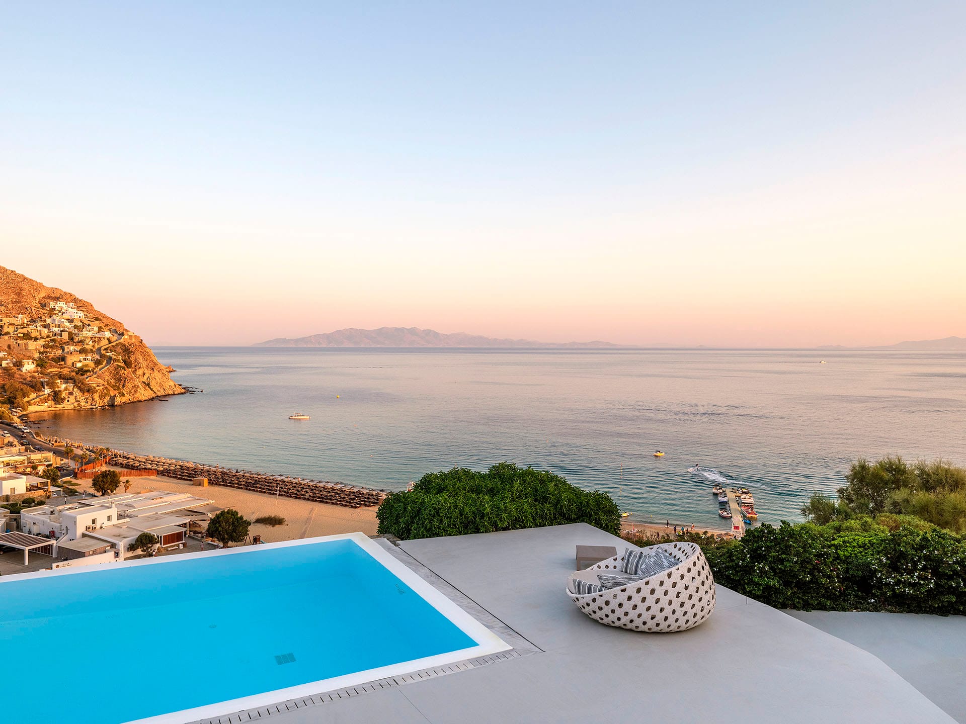 Villa Oleandri is a true private paradise that captivates with its stunning unobstructed views of the glistening Aegean Sea and the picturesque bay below. This unique location is just a short walk or drive from Eliá beach, making it an ideal base for sun-seekers.