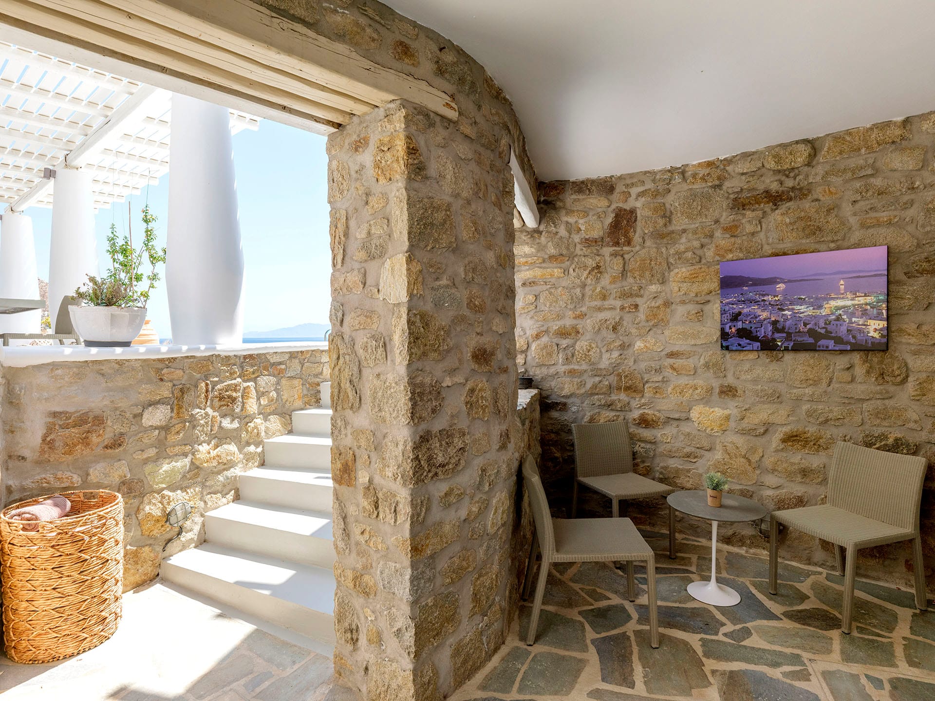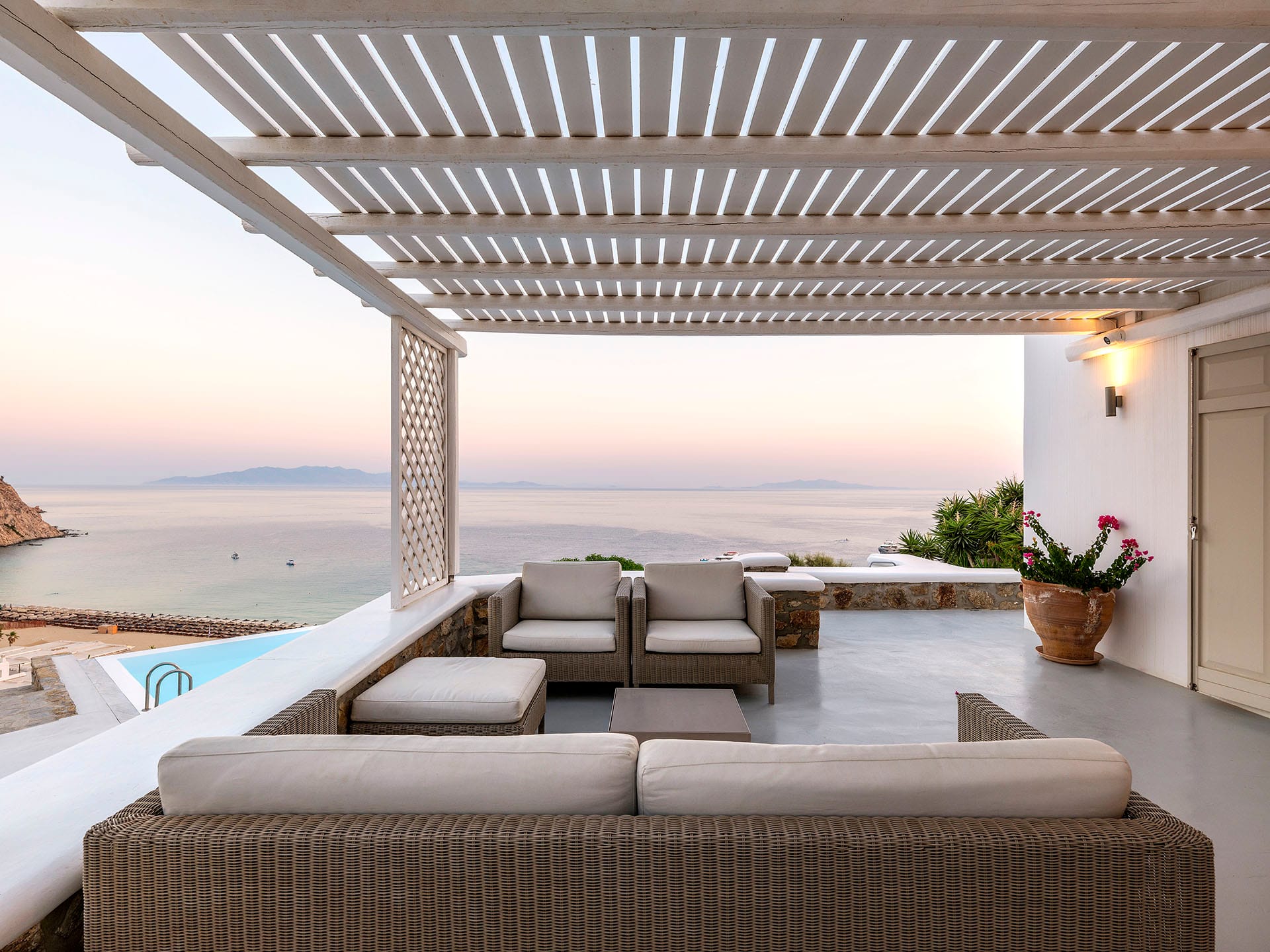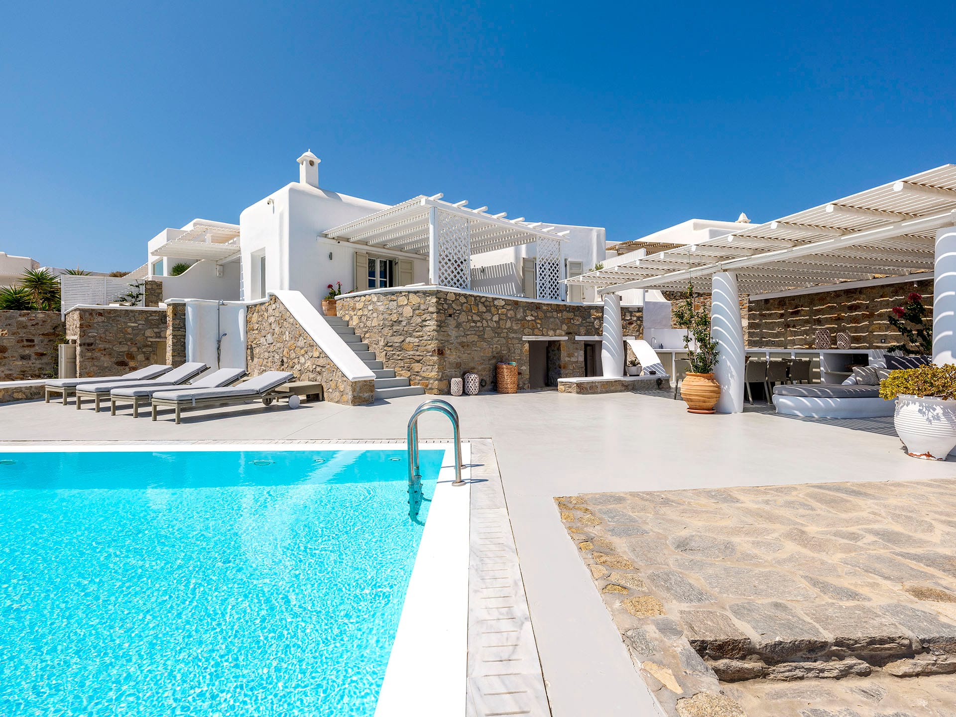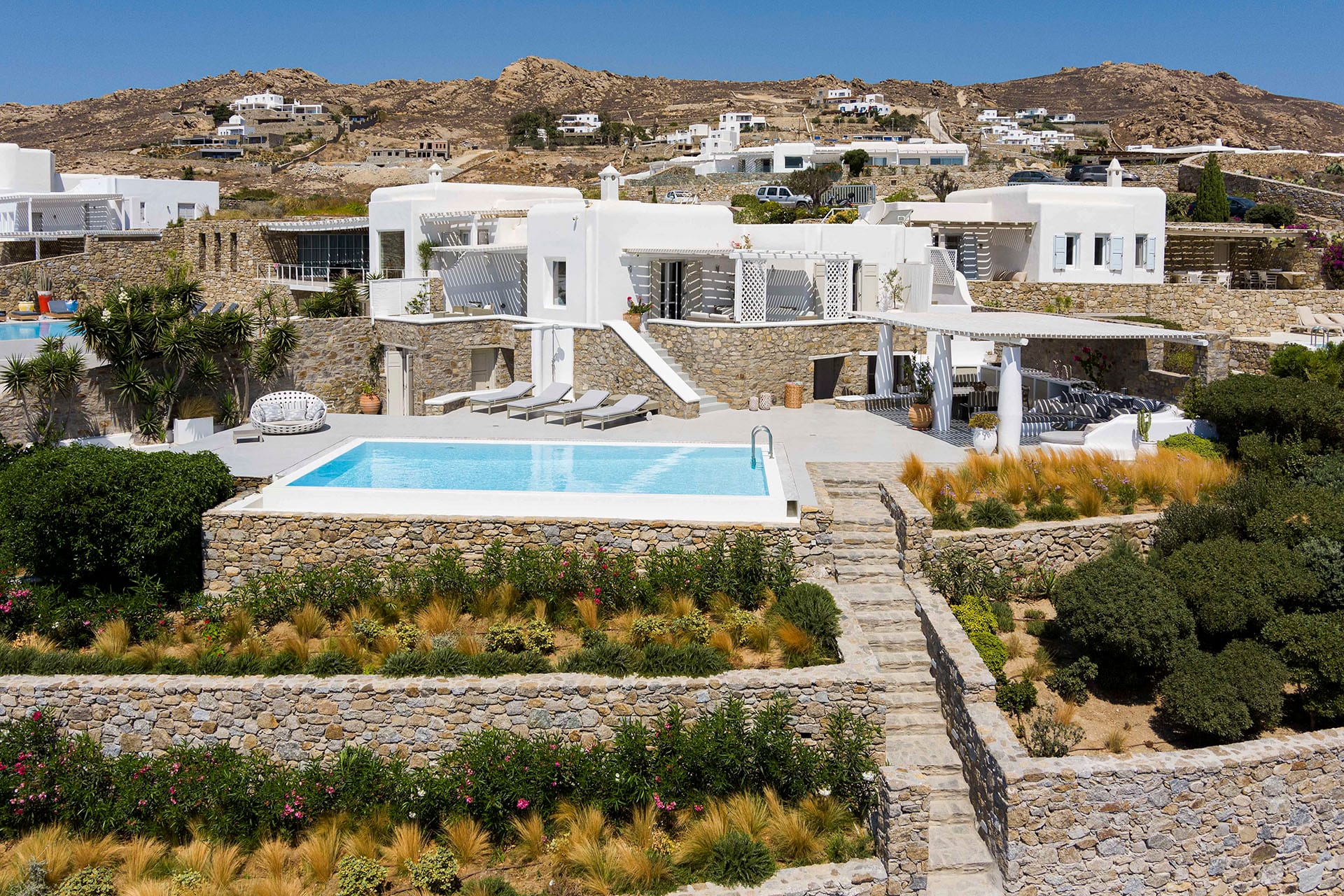 Villa Oleandri is a true private paradise that captivates with its stunning unobstructed views of the glistening Aegean Sea and the picturesque bay below. This unique location is just a short walk or drive from Eliá beach, making it an ideal base for sun-seekers.