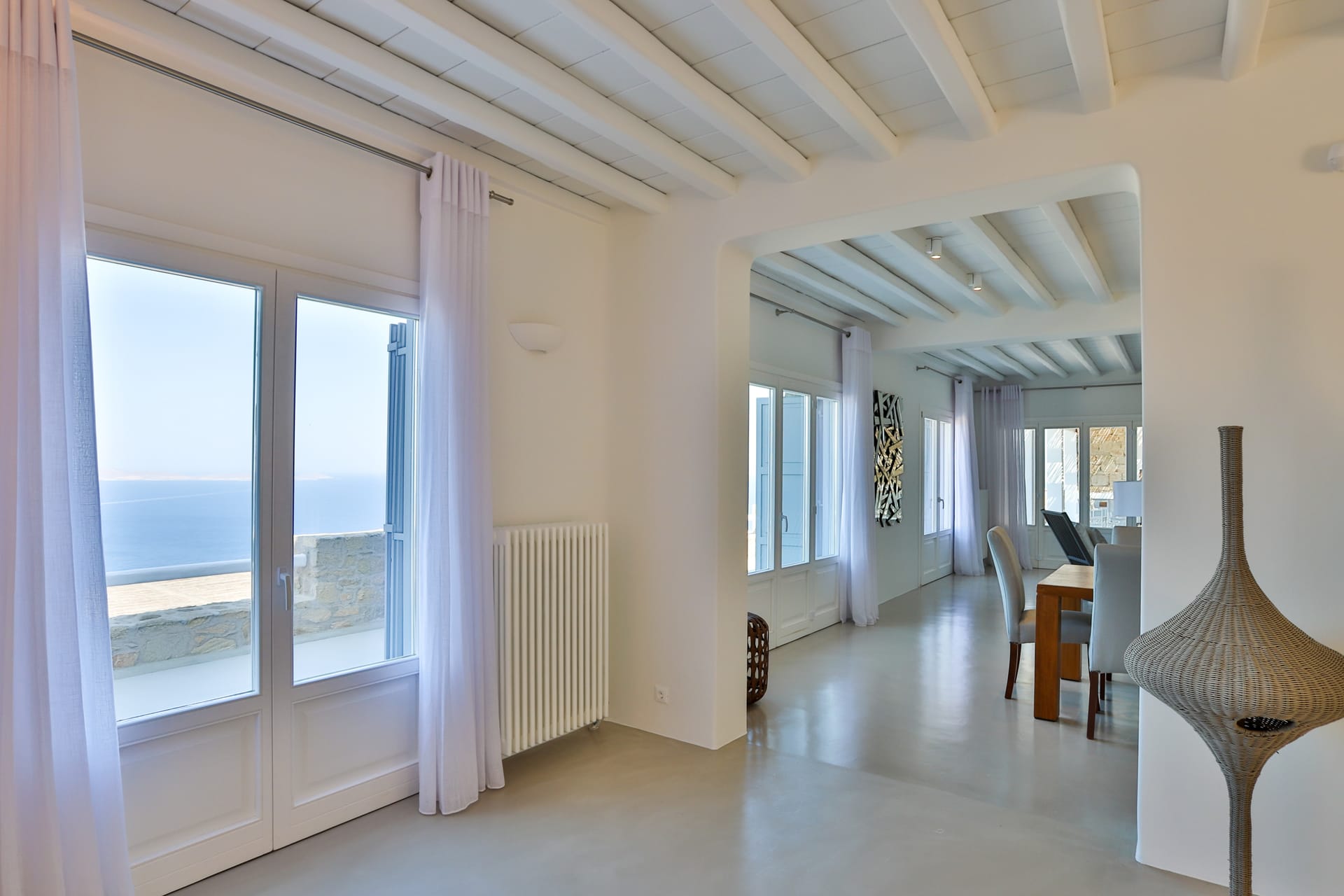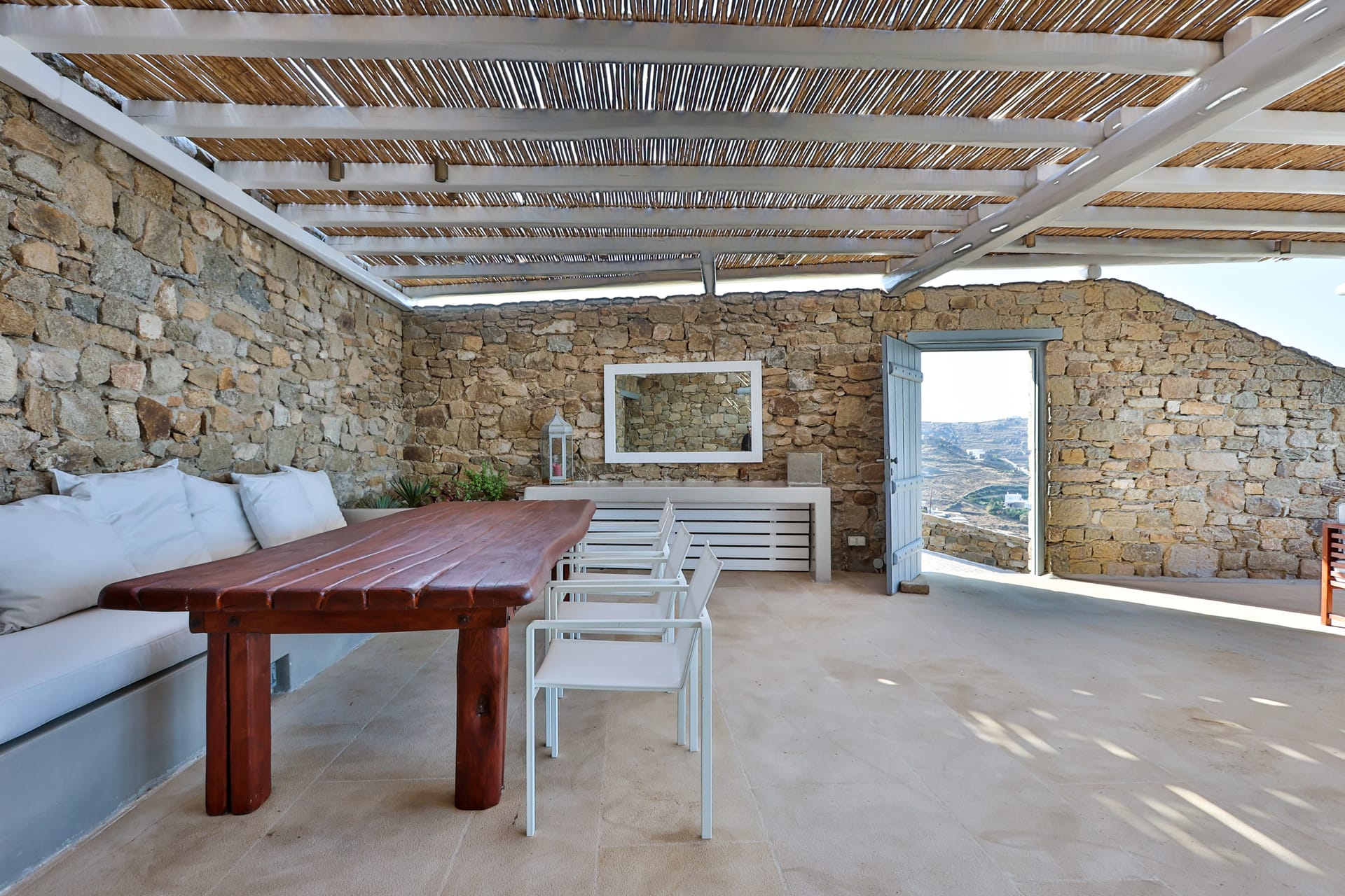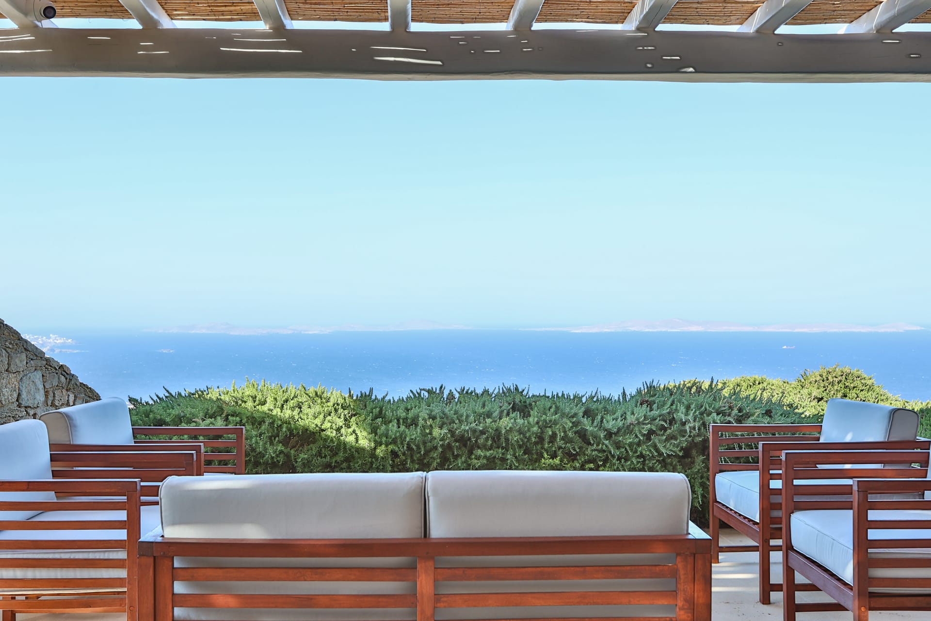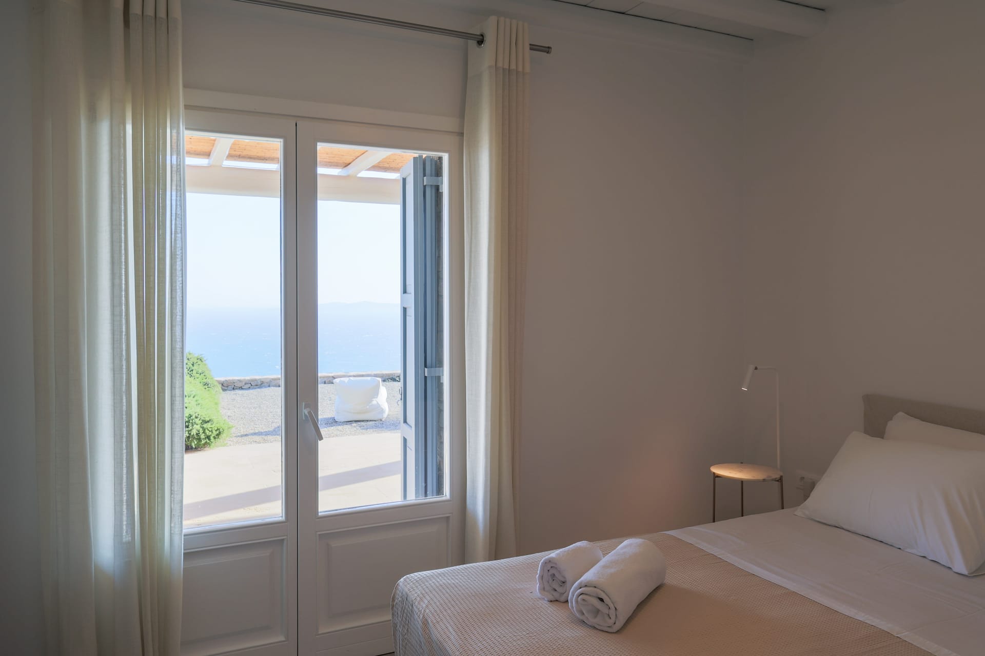 Outside, the crystal-clear heated pool invites you to bask in the Mykonian sun by day or unwind with a sunset swim by night. It’s the perfect centerpiece for lounging, entertaining, or simply soaking in the island’s beauty year-round.