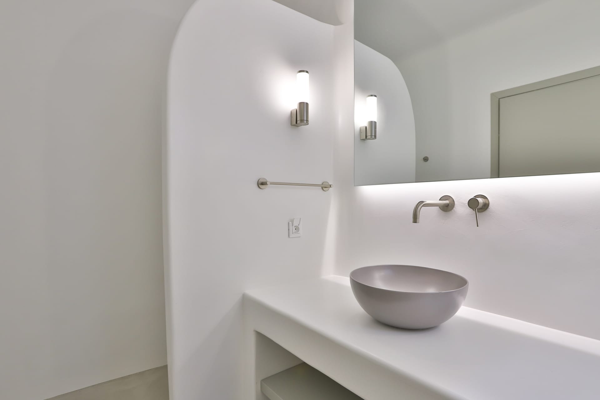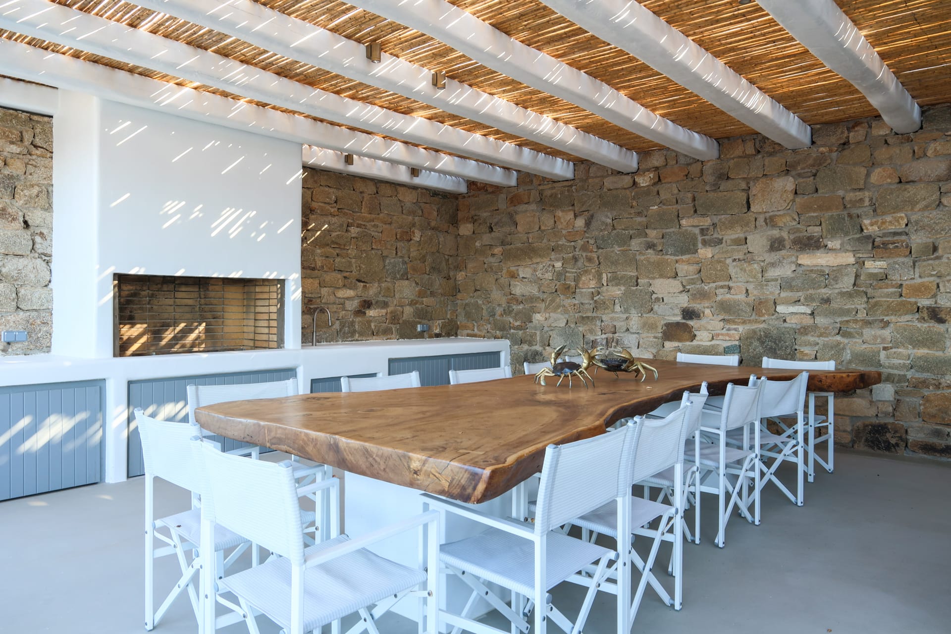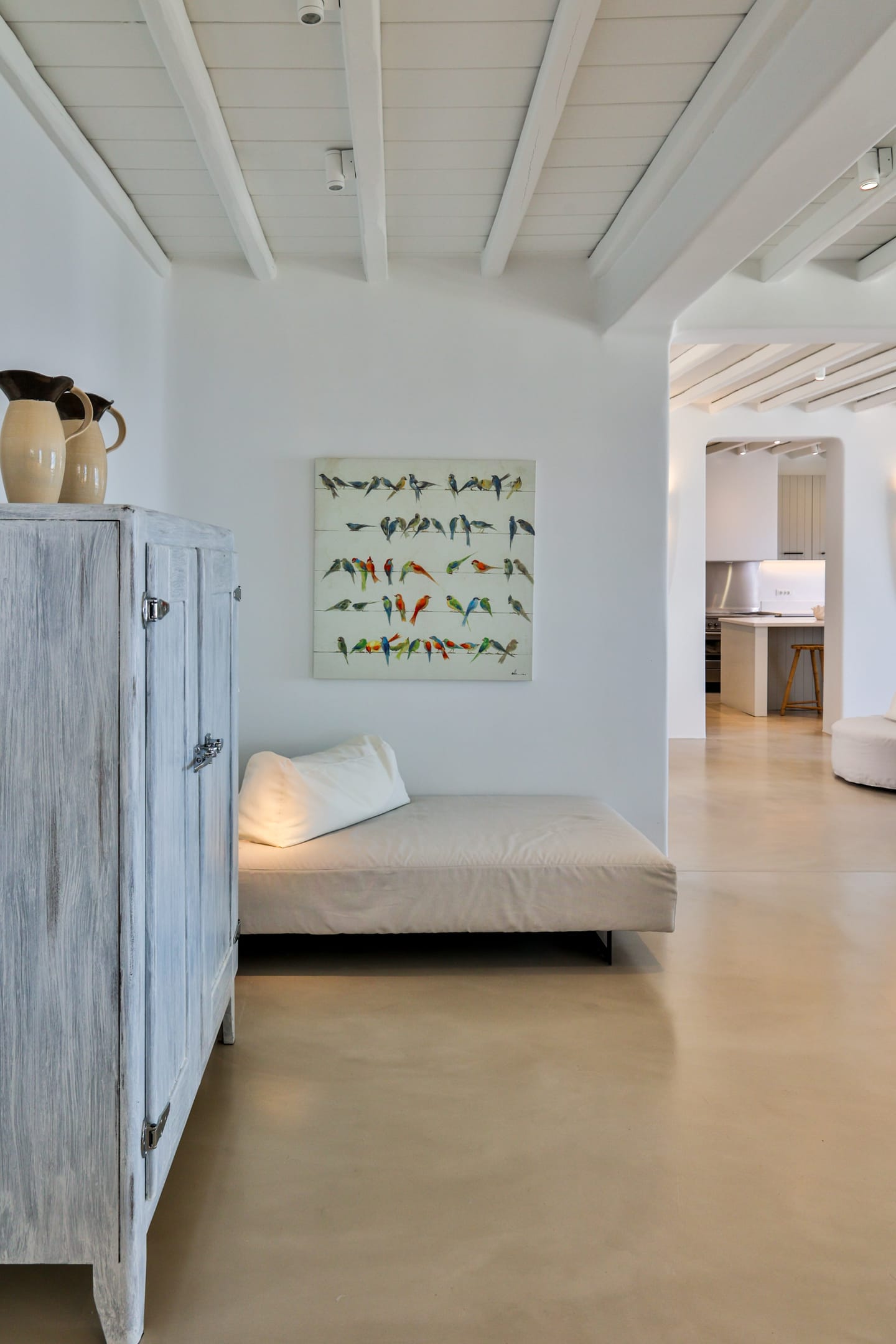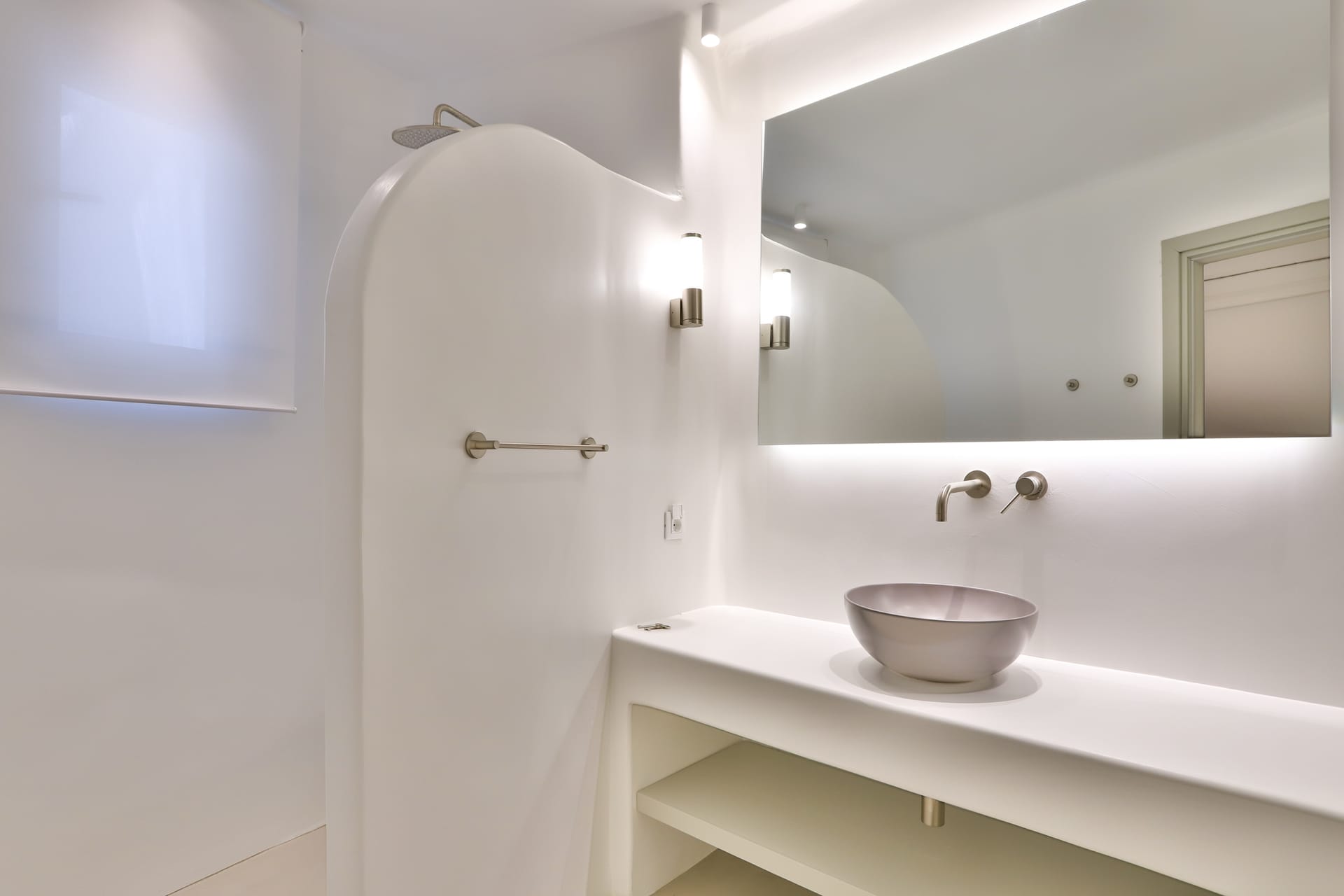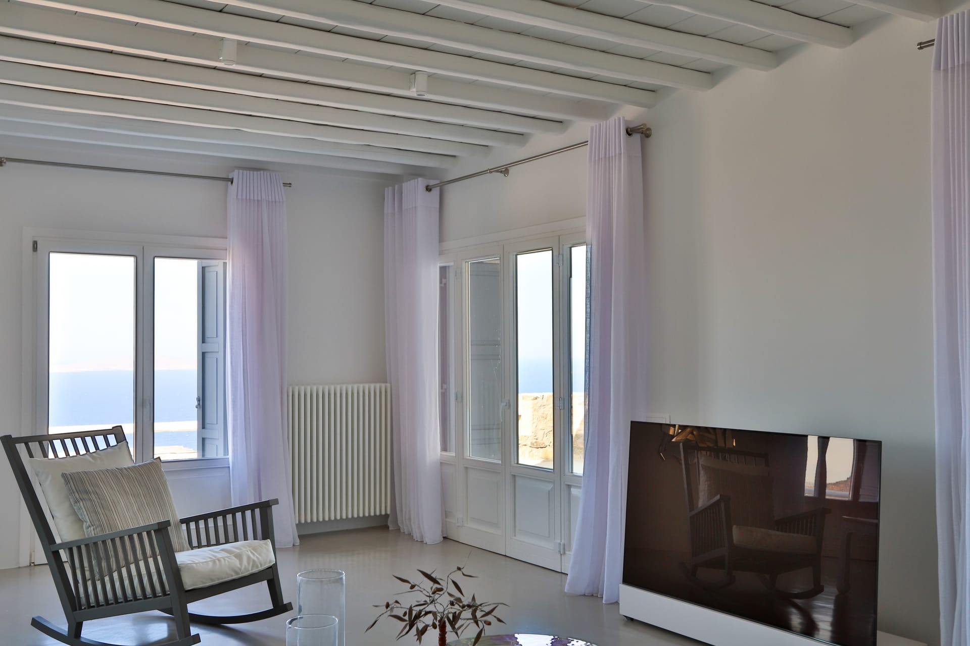 Outside, the crystal-clear heated pool invites you to bask in the Mykonian sun by day or unwind with a sunset swim by night. It’s the perfect centerpiece for lounging, entertaining, or simply soaking in the island’s beauty year-round.