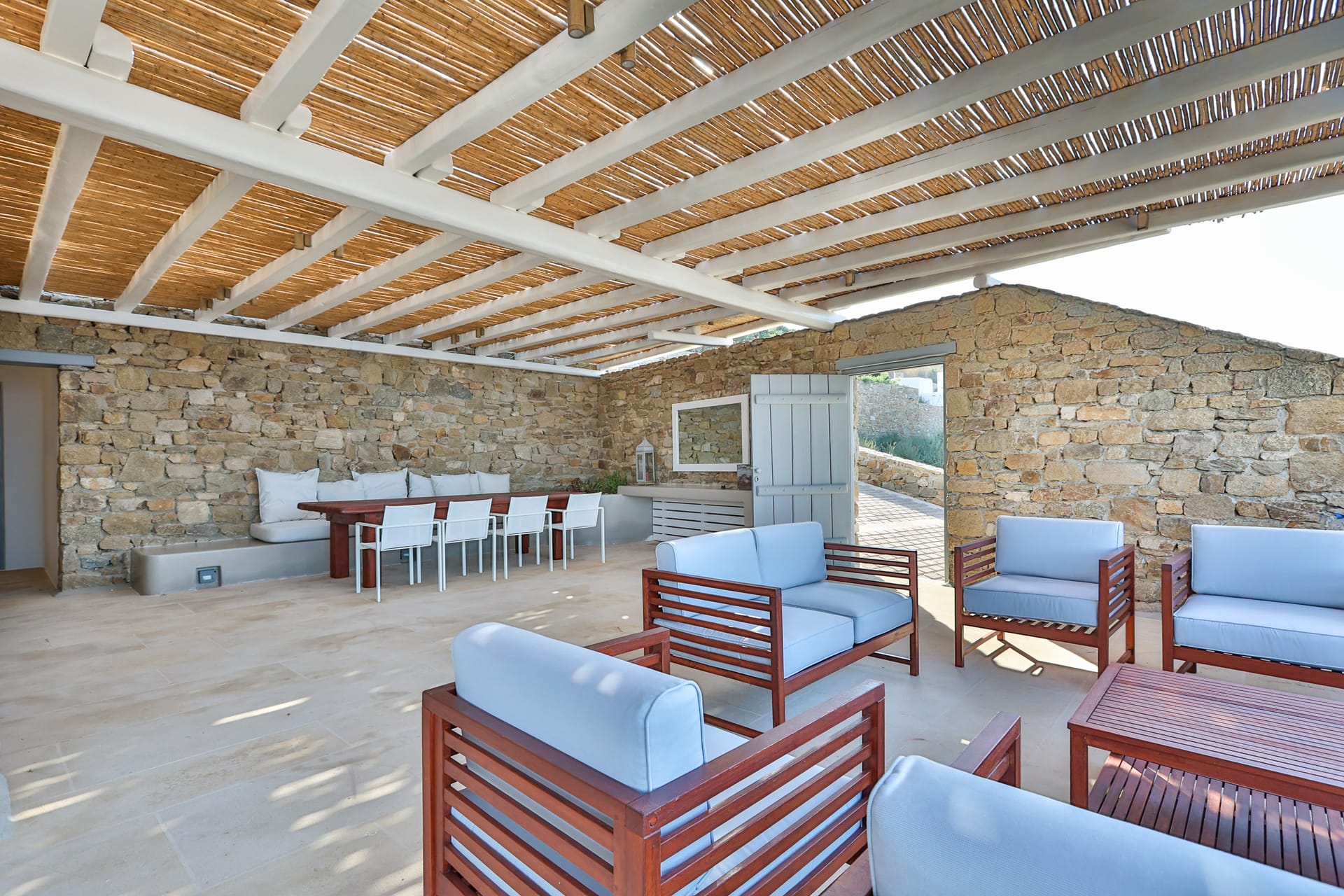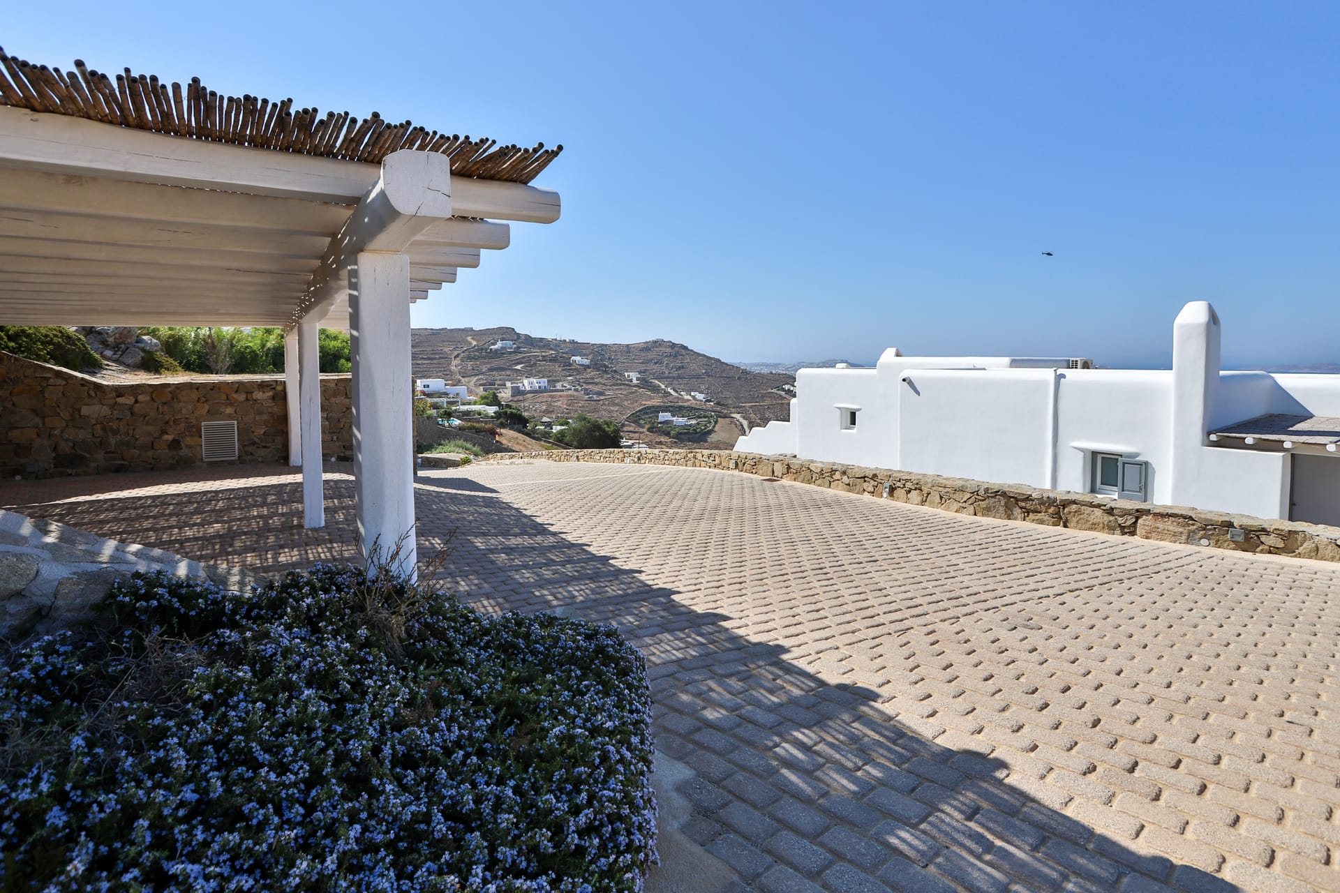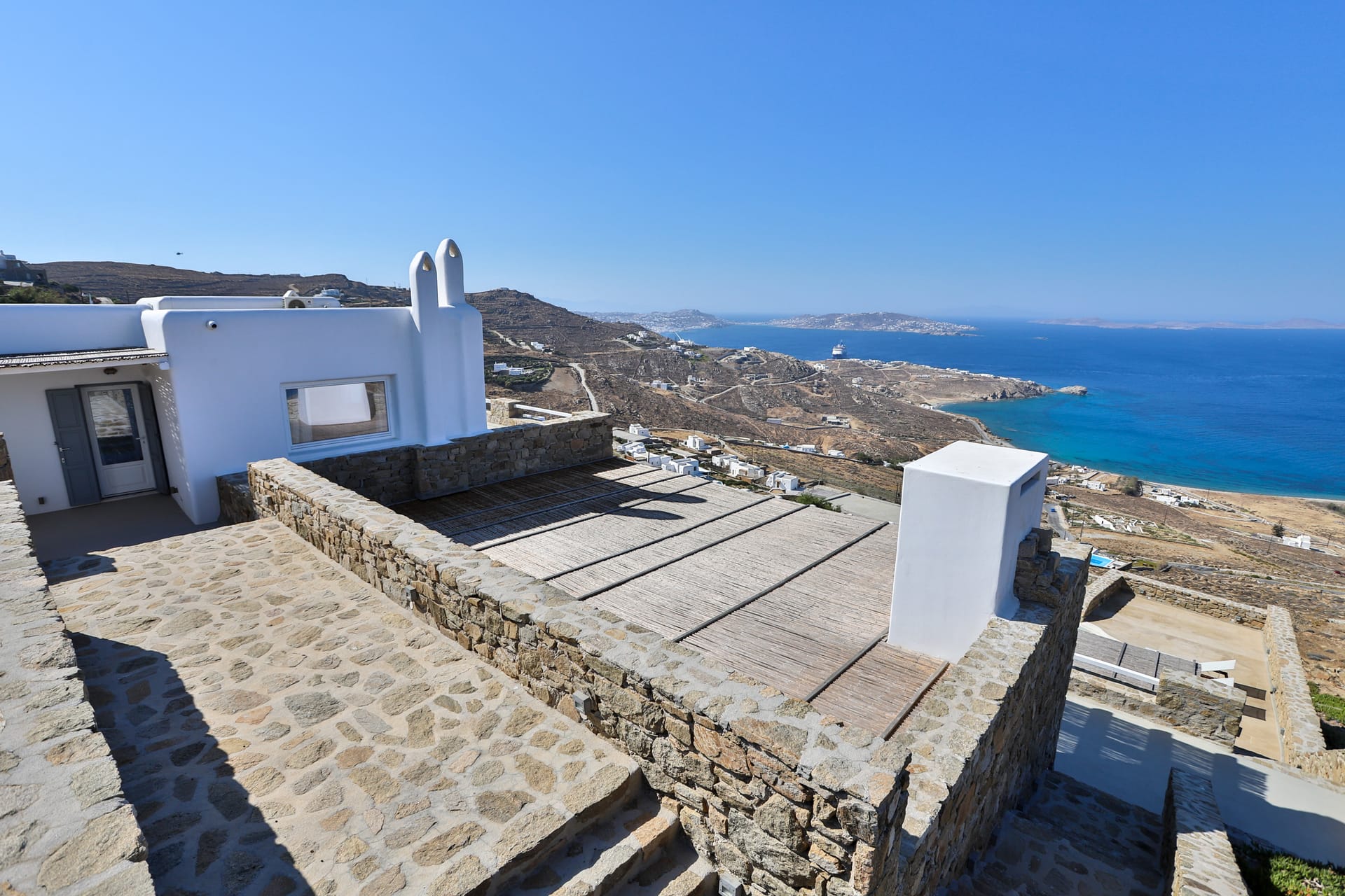 For those arriving with vehicles, the villa includes four private parking spaces — a rare and convenient feature on the island. Combined with the villa’s proximity to Mykonos’ famous beach clubs and vibrant town center, this makes your stay both luxurious and effortlessly accessible.