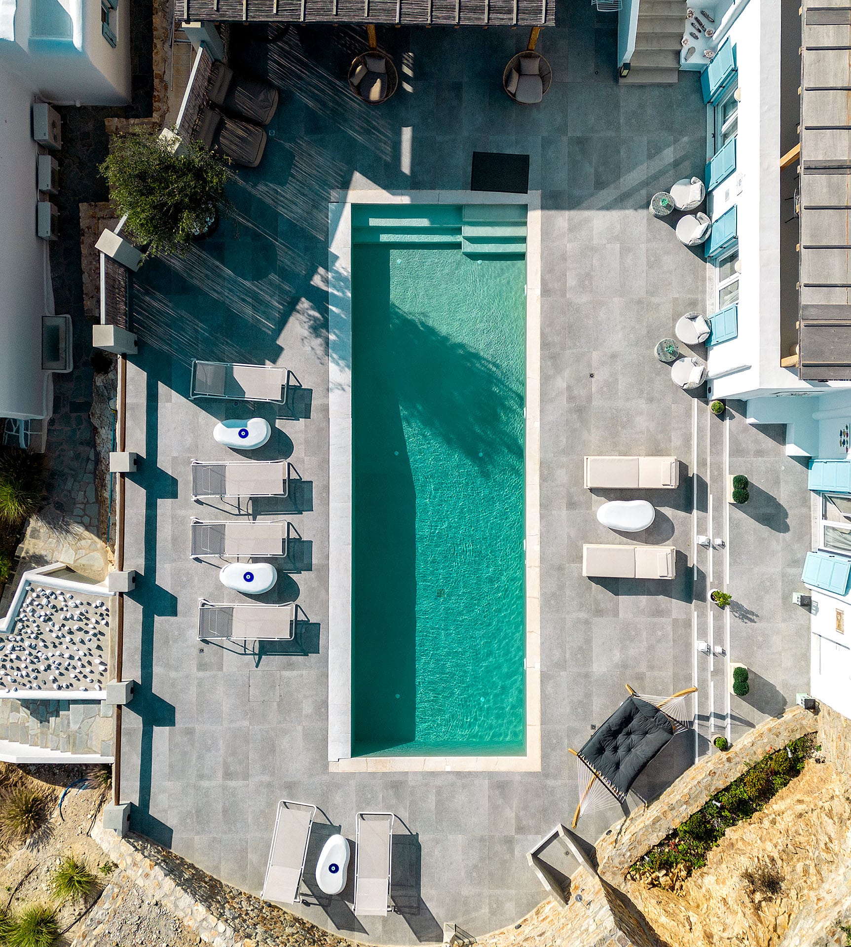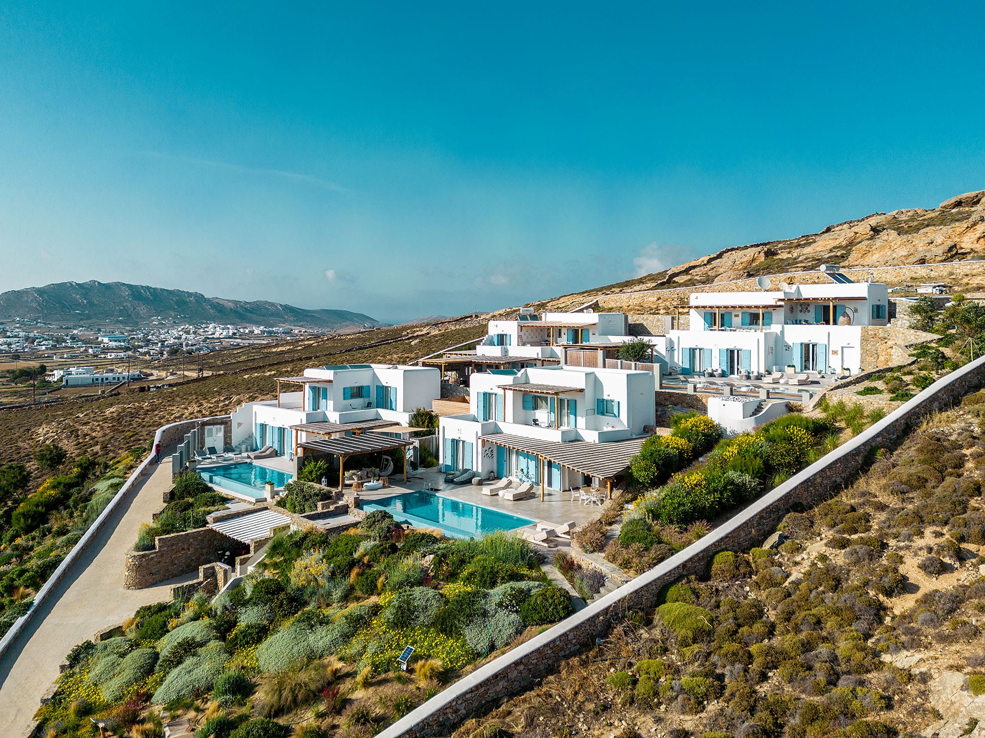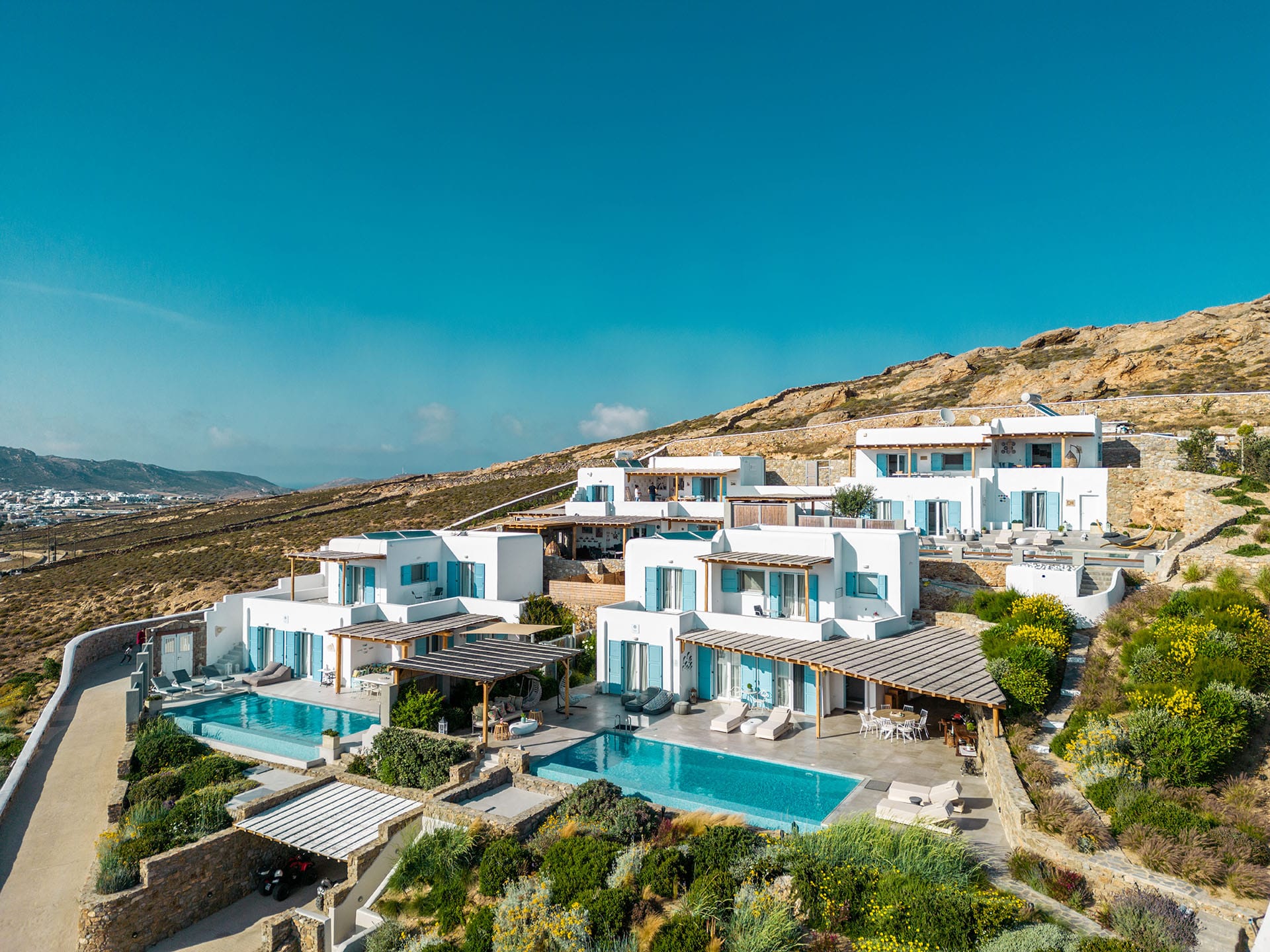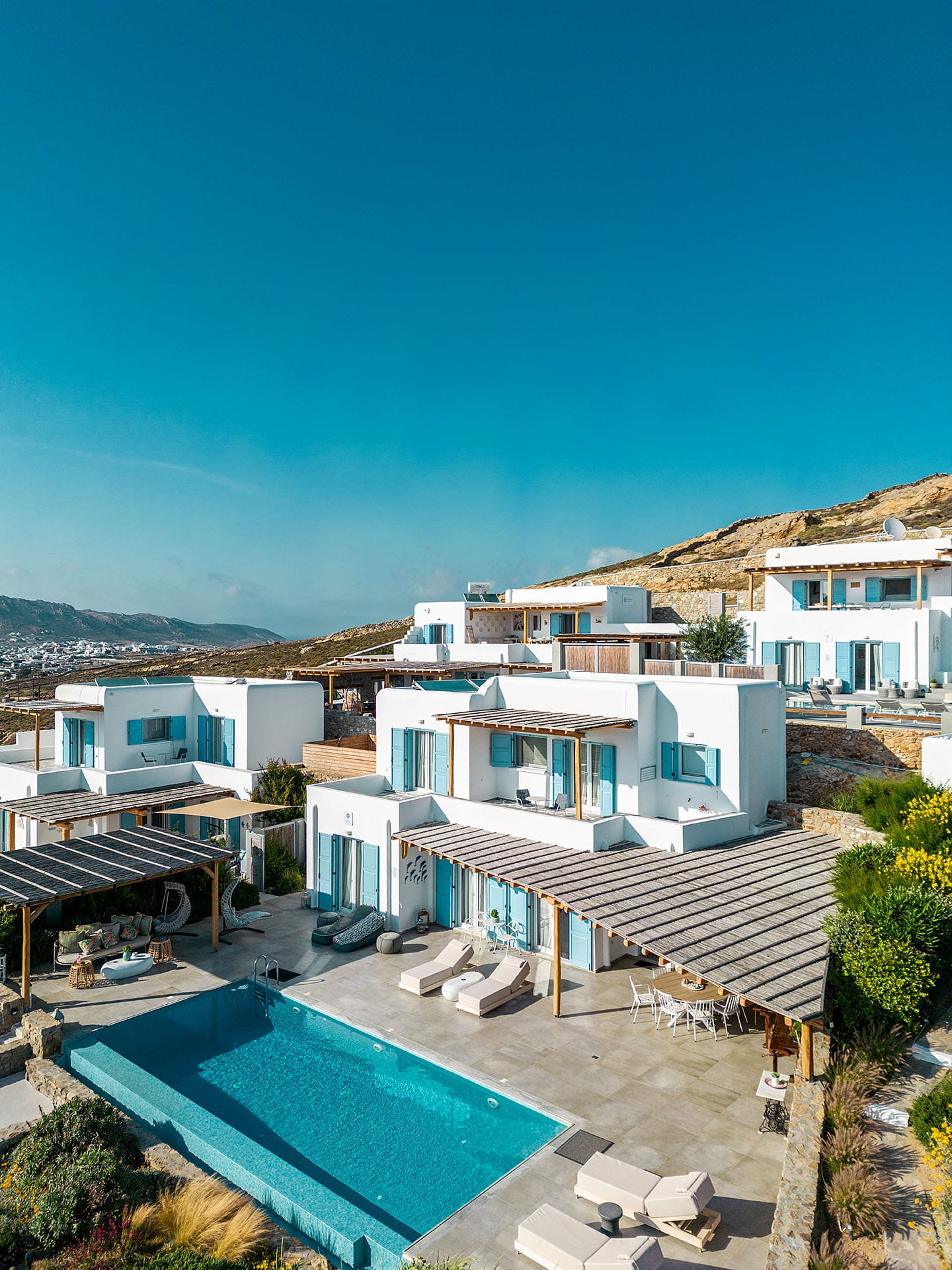 At the same time, it is worth highlighting the fact that the flower corresponds to the first name of the hostess, Chrysanthi Avgeropoulou! Chrysanthi, who, assisted by her team, built this delicate beauty, a complex of villas, in order to offer her guests genuinely rejuvenating holidays.
