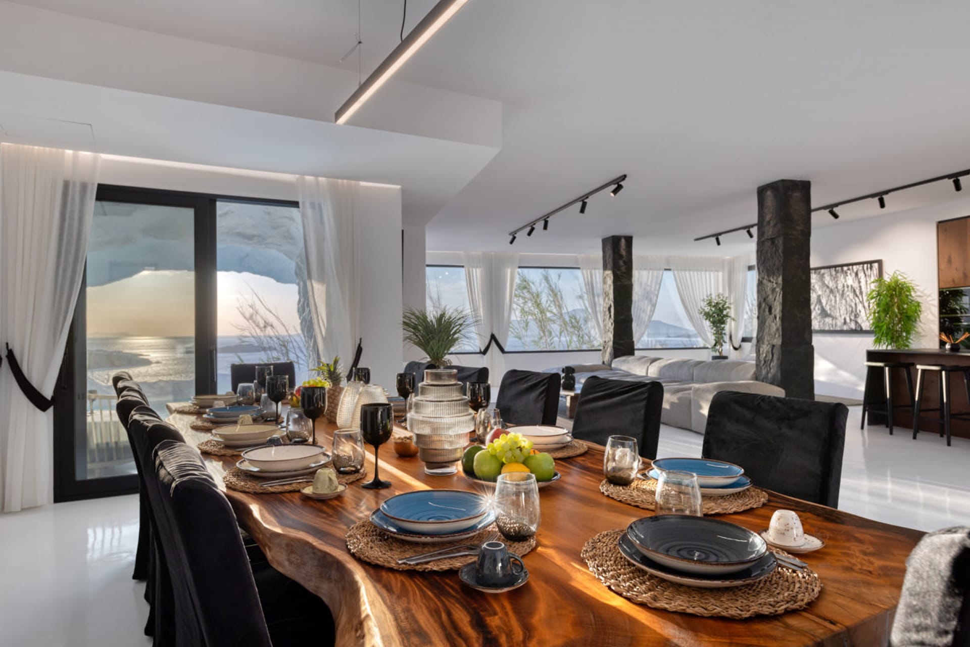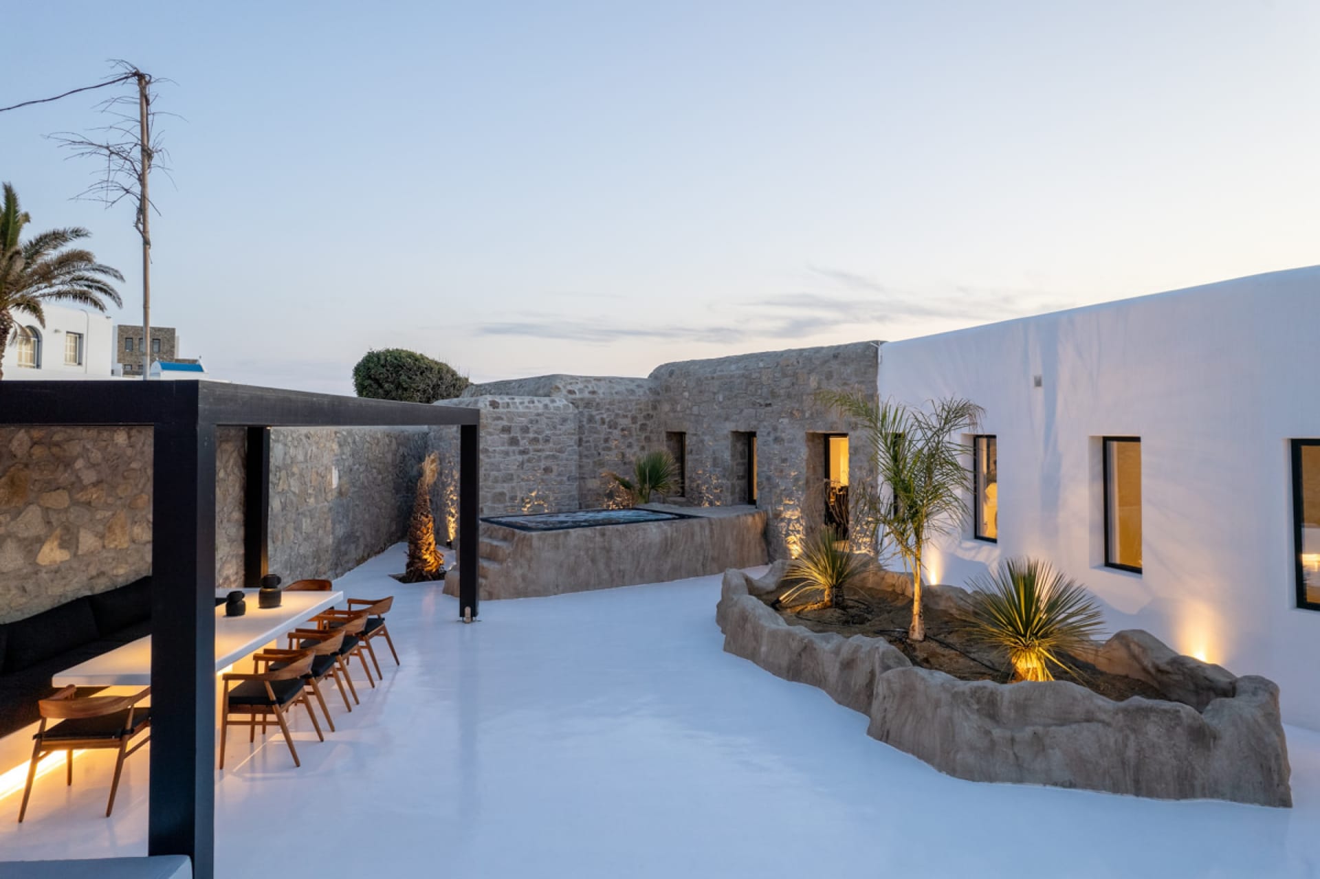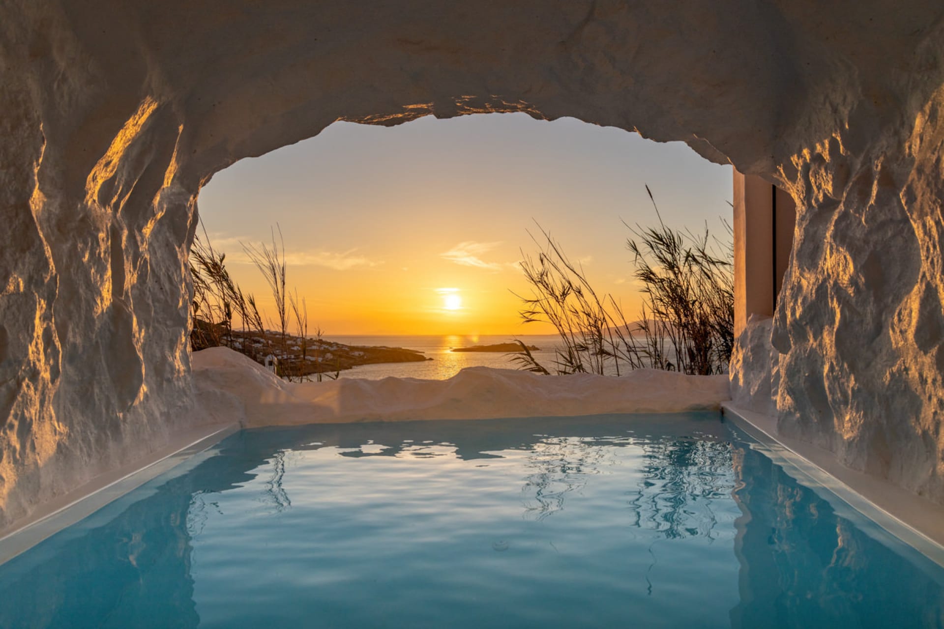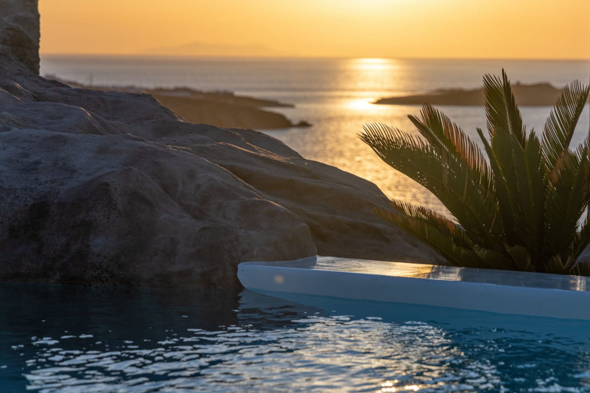 A luxury six-bedroom villa with en suite bathrooms, featuring an infinity pool, outdoor Jacuzzi, and heated cave pool. Designed for tranquility and style, it offers stunning sea views, elegant alfresco dining, and lounge areas.