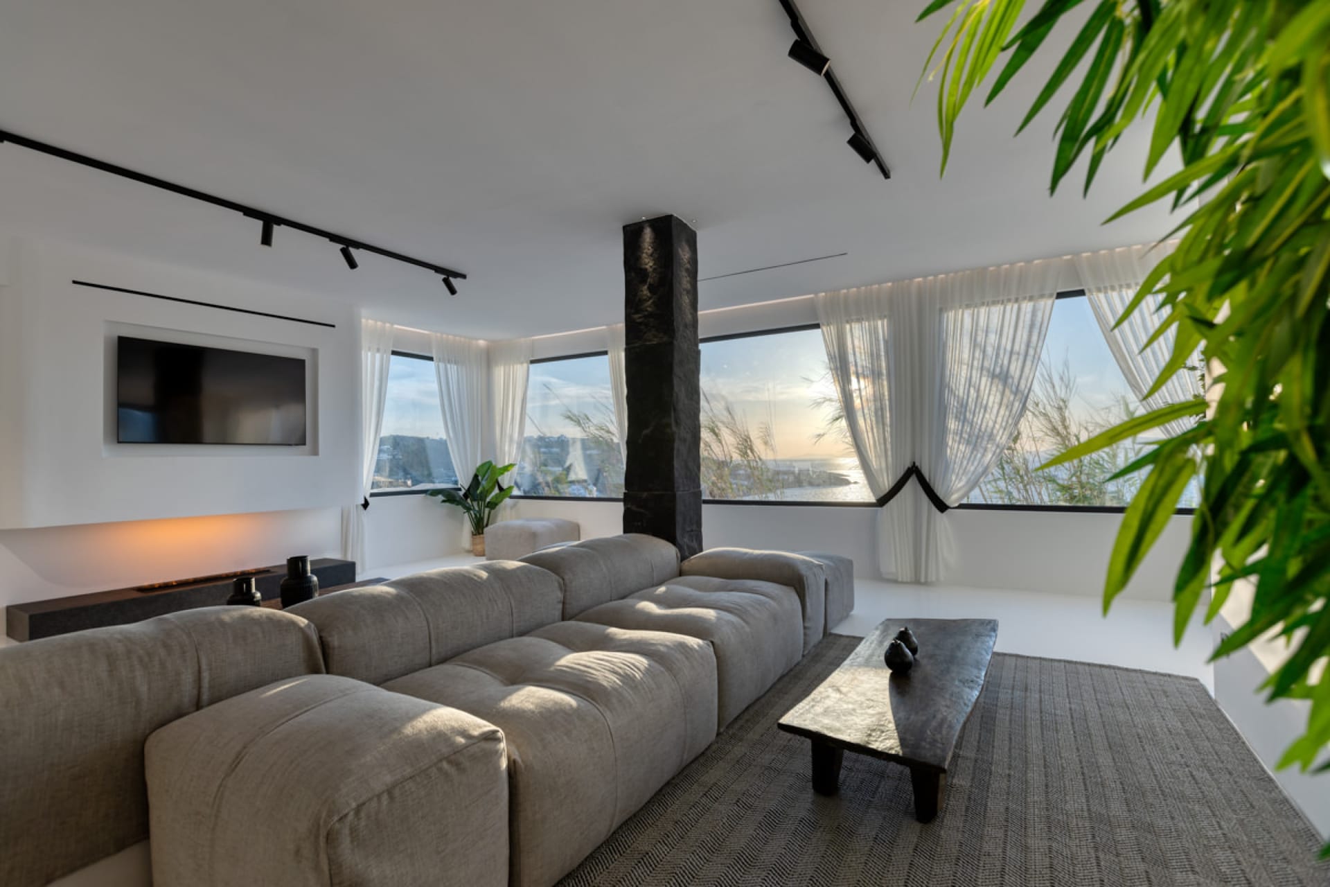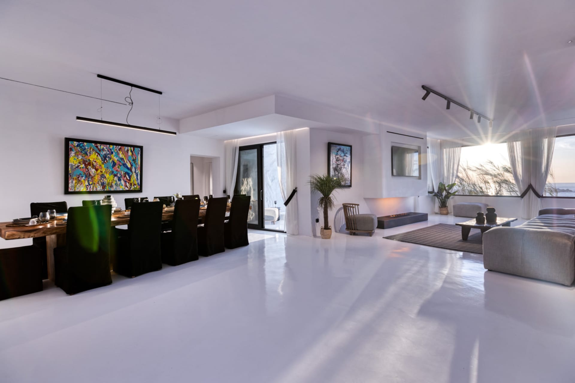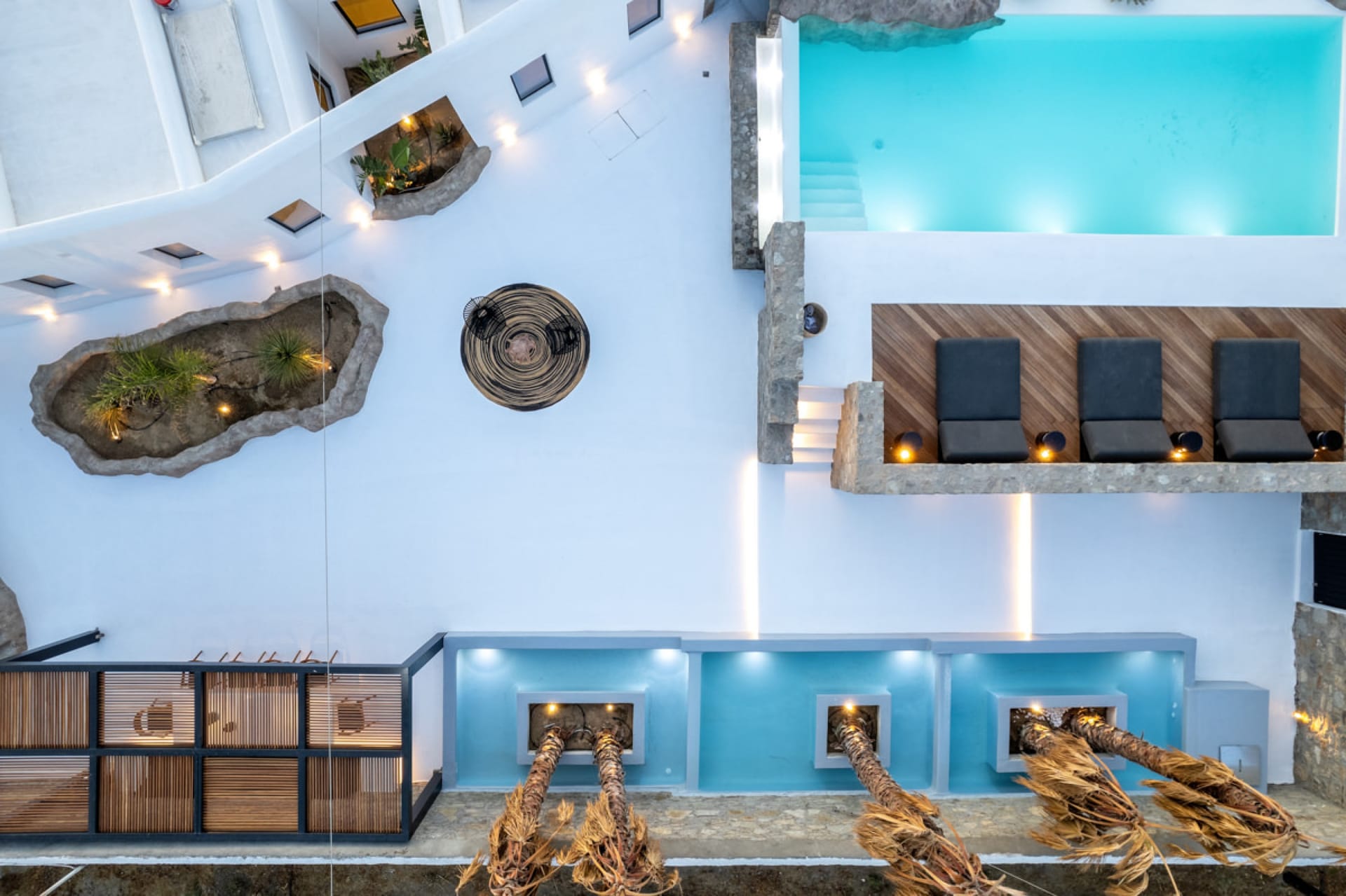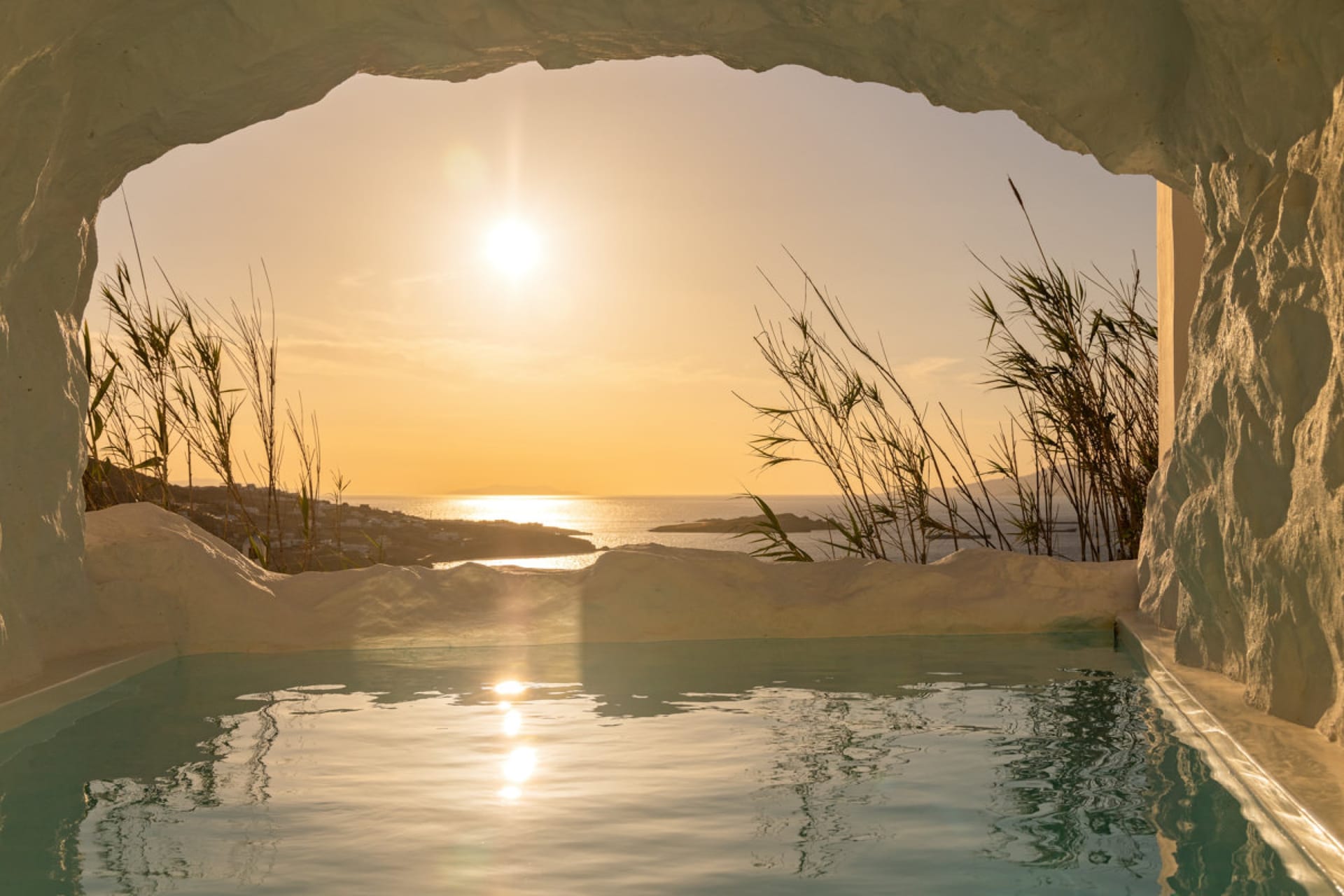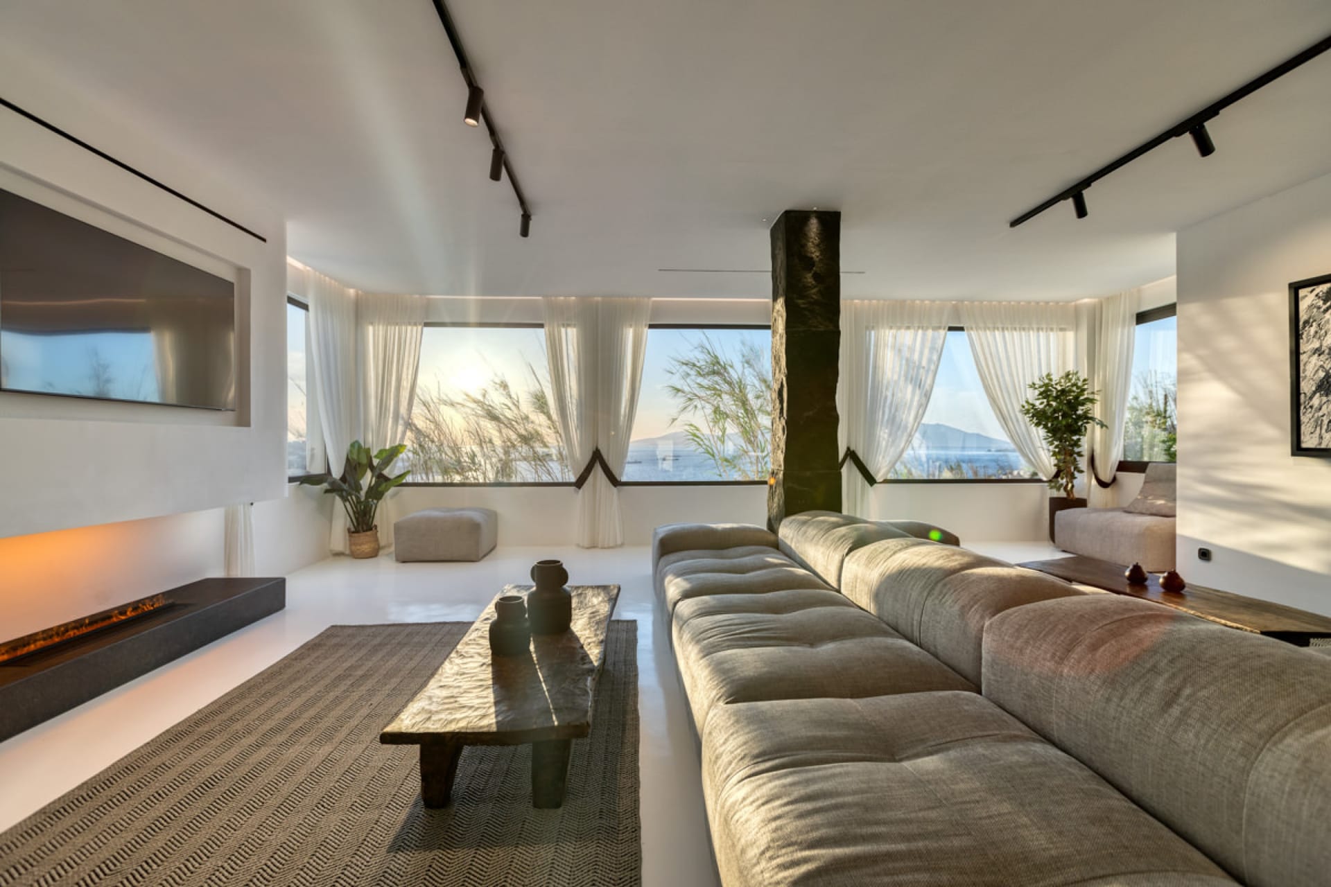 A luxury six-bedroom villa with en suite bathrooms, featuring an infinity pool, outdoor Jacuzzi, and heated cave pool. Designed for tranquility and style, it offers stunning sea views, elegant alfresco dining, and lounge areas.