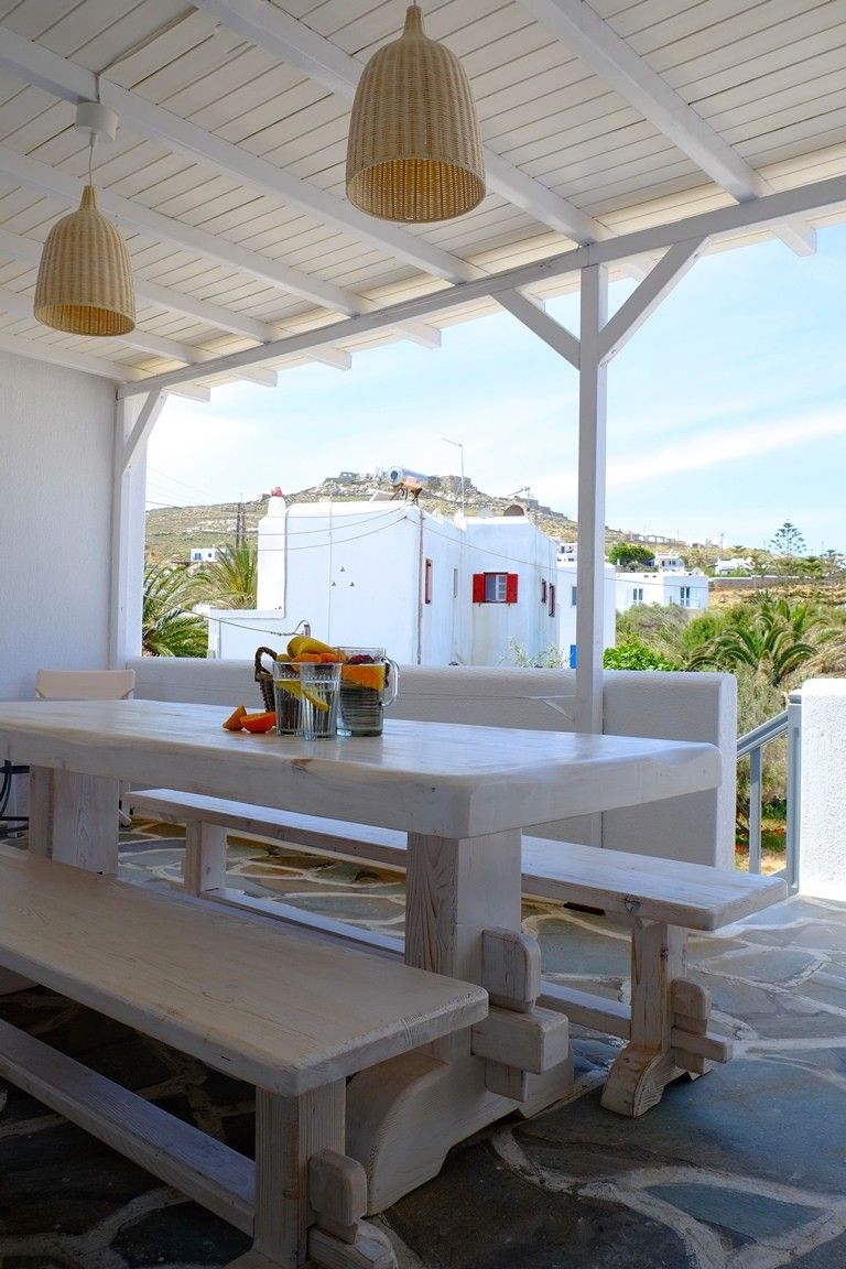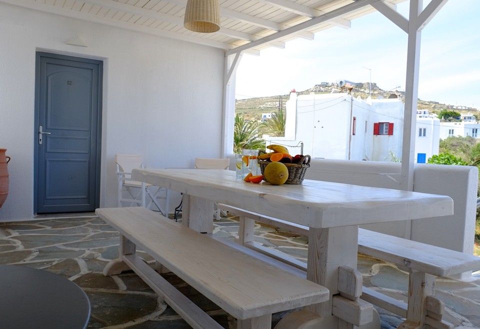 A' class studio apartments placed only 150 meters from Ornos beach and only 2,5 km far from the town of Mykonos. Every studio is fully furnished with cycladic style and is equipped with a kitchen, refregerator, air condition, TV and safe box.