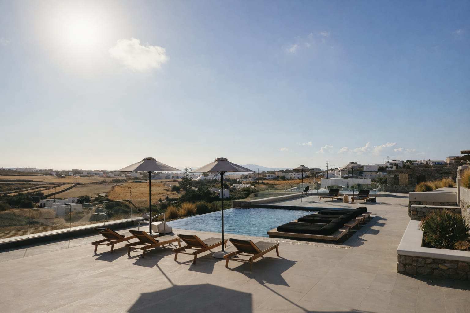 Located in a key position on the road to the renowned Paradise Beach, almost in the center of the island, Villa Evi offers direct access to the airport (0.2 mi.), the new harbor of Mykonos (1.86 mi.), the picturesque Chora (0.9 mi.) and the famous beaches, making it an ideal choice for those who want privacy and fast short trips.