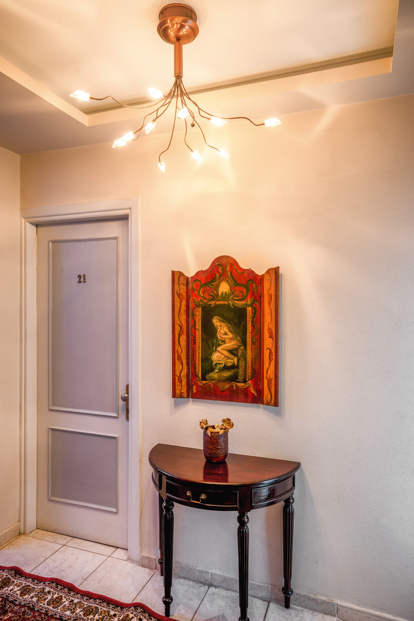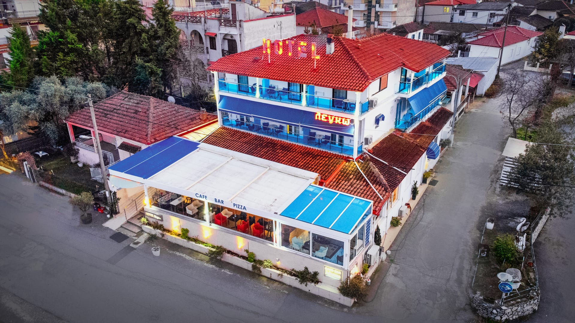 The hotel has 13 fully renovated rooms with a total number of 22 beds. Each room has a bathroom, telephone, air conditioning - ken. All rooms have a view to the Thermaikos Gulf and Mount Olympus.