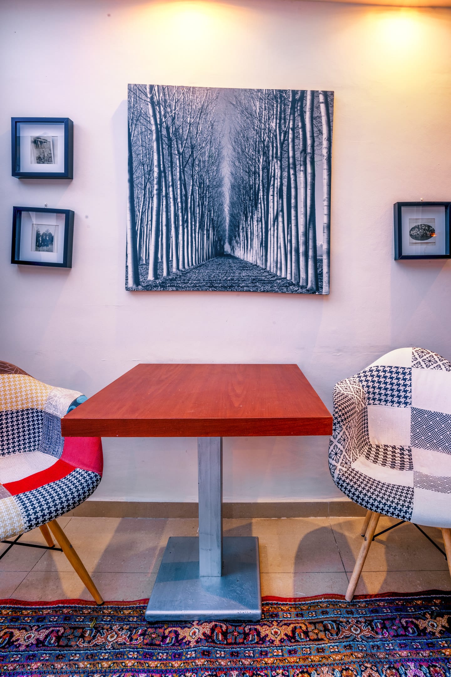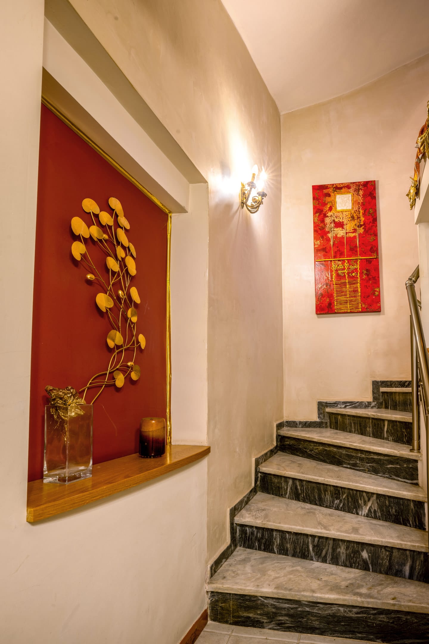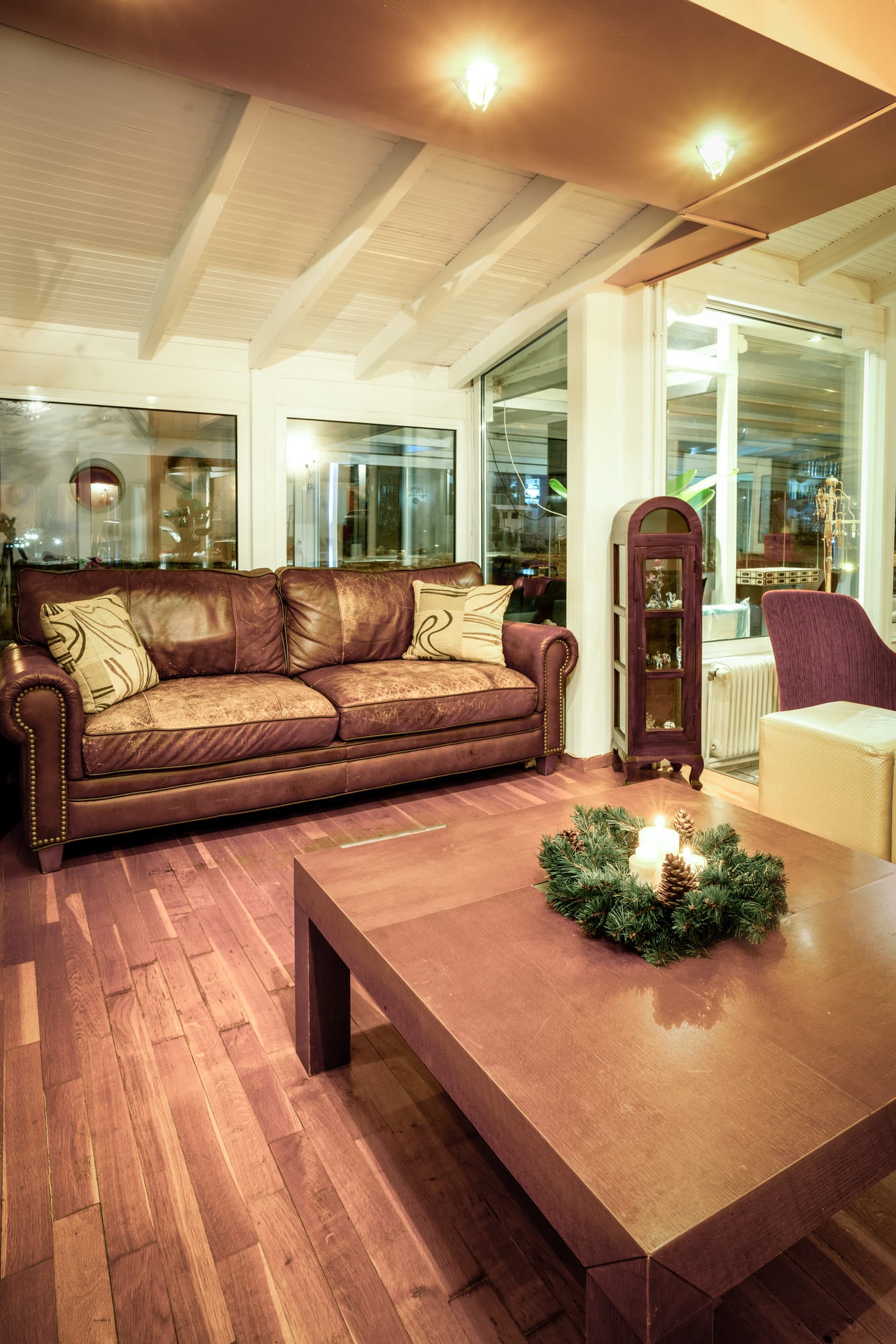 During the winter months you can sit comfortably next to the large fireplace, enjoying your drink while in the summer you will spend beautiful nights relaxing in the comfortable armchairs-swinging chairs of the lush garden.