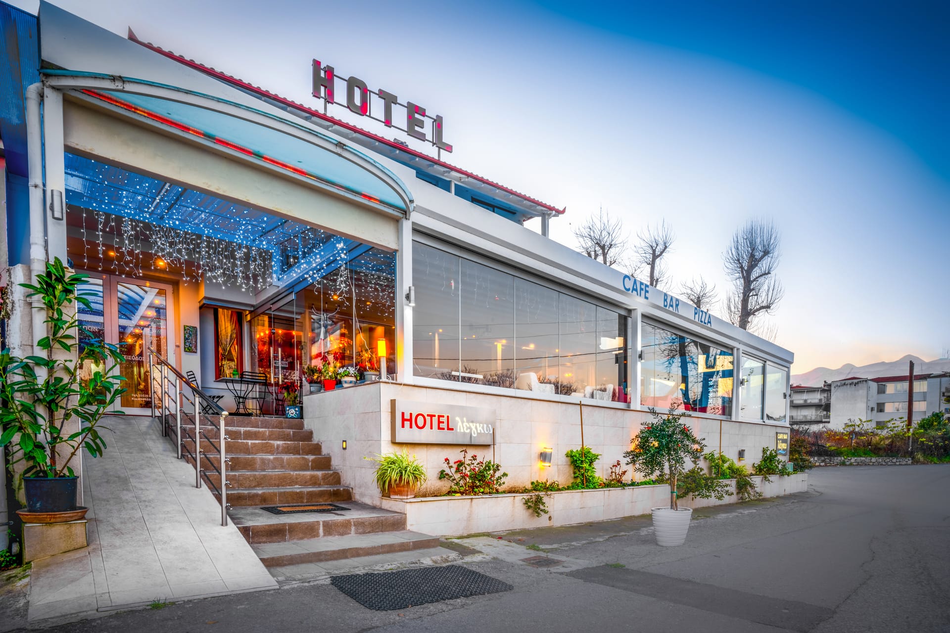 The hotel is located in the center of Platamonas , 50 m. from the sea .The distance from Thessaloniki is 105 km. and from Larissa 42 km.
