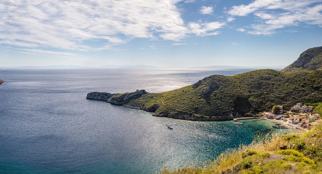 natural port surrounded by a long outstretching range of hills and open