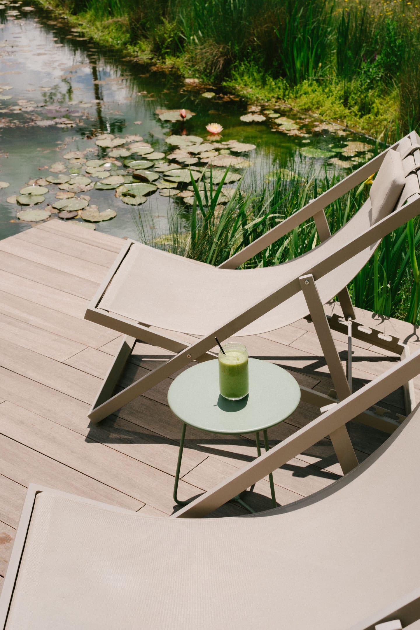 Retreating to the lower level, guests can relax and rejuvenate in the MANNA Wellness Hub, replete with two treatment rooms, a sauna and hammam, a gym, and a pool designed to look like a cave, with skylights letting in rays of sunlight that dance on the water’s surface. Outside, gardens created by landscape architect Elli Pangalou offer an additional oasis ideal for resting and renewal: atop a small hill overlooking the lily pond, a small lounge area with a fireplace creates a space for mingling or meditating, while a wooden deck next to the pond is equipped with sun and star-gazing loungers. Here, guests become one with their surroundings by day and night, whether relaxing under the sun with a cooling mountain breeze or observing the breathtakingly clear starry night sky.