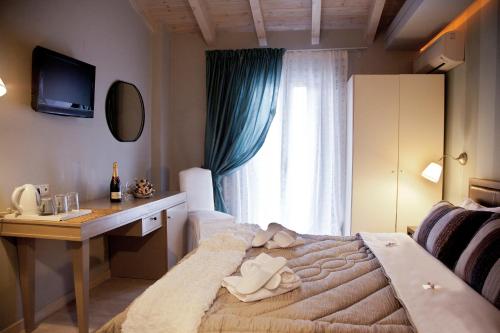 Location: This B & B warmly welcomes guests in Nauplia. Facilities: English-speaking staff are happy to assist and advise. The hotel provides a baggage storage service, a safe, room service, a fax machine and a smoking area. Wireless internet access is provided in public areas. Guests arriving by car can park their vehicles in the car park for no extra charge. Rooms: Air conditioning and central heating ensure that rooms maintain comfortable temperatures. Guests are sure to get a good night's sleep in the double bed. A safe, a minibar and a desk are also available. Guests will also find a refrigerator included among the standard features. An ironing set is provided for guests' convenience. Other features include a TV and WiFi (no extra charge). Slippers are included. Bathrooms are equipped with a shower and include a hairdryer. As a special feature, bathrooms are also stocked with cosmetic products and a selection of towels. The hotel has non-smoking rooms. Sports/Entertainment: Fine weather can be enjoyed on the terrace. Activity coordinators organise an entertainment programme for adults and children. Copyright GIATA 2004 - 2025. Multilingual, powered by www.giata.com for client no. 125352 Meals: Various dining options are available, including a restaurant, a café and a bar. Breakfast and lunch are served every day. Special meals, including diet meals, are also available. The hotel also offers special catering options.
