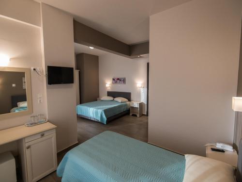 Location: This hotel is located in Amaliada, right on the beach. Facilities: The friendly staff at the reception desk are happy to answer any questions. The hotel provides a baggage storage service, a safe, a TV room, a 24-hour security service, medical assistance and room service. Wireless internet access allows guests to stay connected while on holiday. The hotel has a range of facilities for guests with disabilities. Everyday necessities can be purchased at the supermarket. A garden provides extra space for rest and relaxation in the open air. Guests arriving by car can park their vehicles in the car park for no extra charge. Rooms: Central heating ensures that rooms maintain comfortable temperatures. Features include a TV and WiFi (no extra charge). A hairdryer and a telephone are on hand in the bathrooms for everyday use. The hotel has non-smoking rooms. Sports/Entertainment: The sport and leisure options offer guests plenty of ways to be active. A terrace with sun loungers and parasols is available. There are many ways to relax or stay active at the hotel, including cycling/mountain biking, snorkelling, a solarium and hiking. Copyright GIATA 2004 - 2025. Multilingual, powered by www.giata.com for client no. 125352 Meals: The dining area includes a restaurant and a café. A delicious breakfast provides energy for the rest of the day. Special meals, including diet meals, are also available. The hotel also offers special catering options.