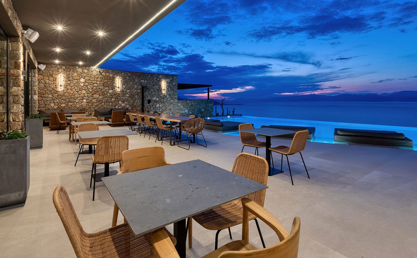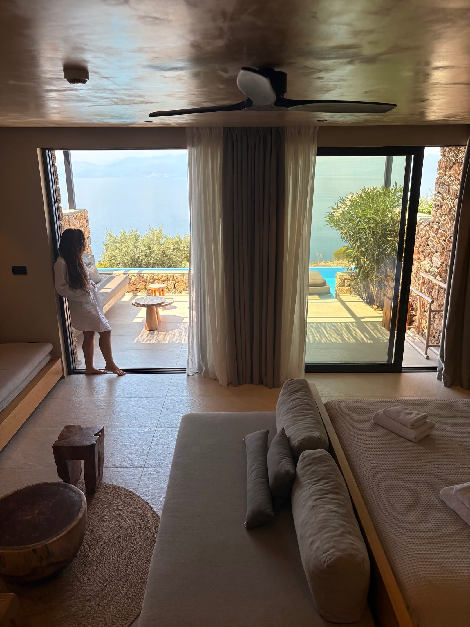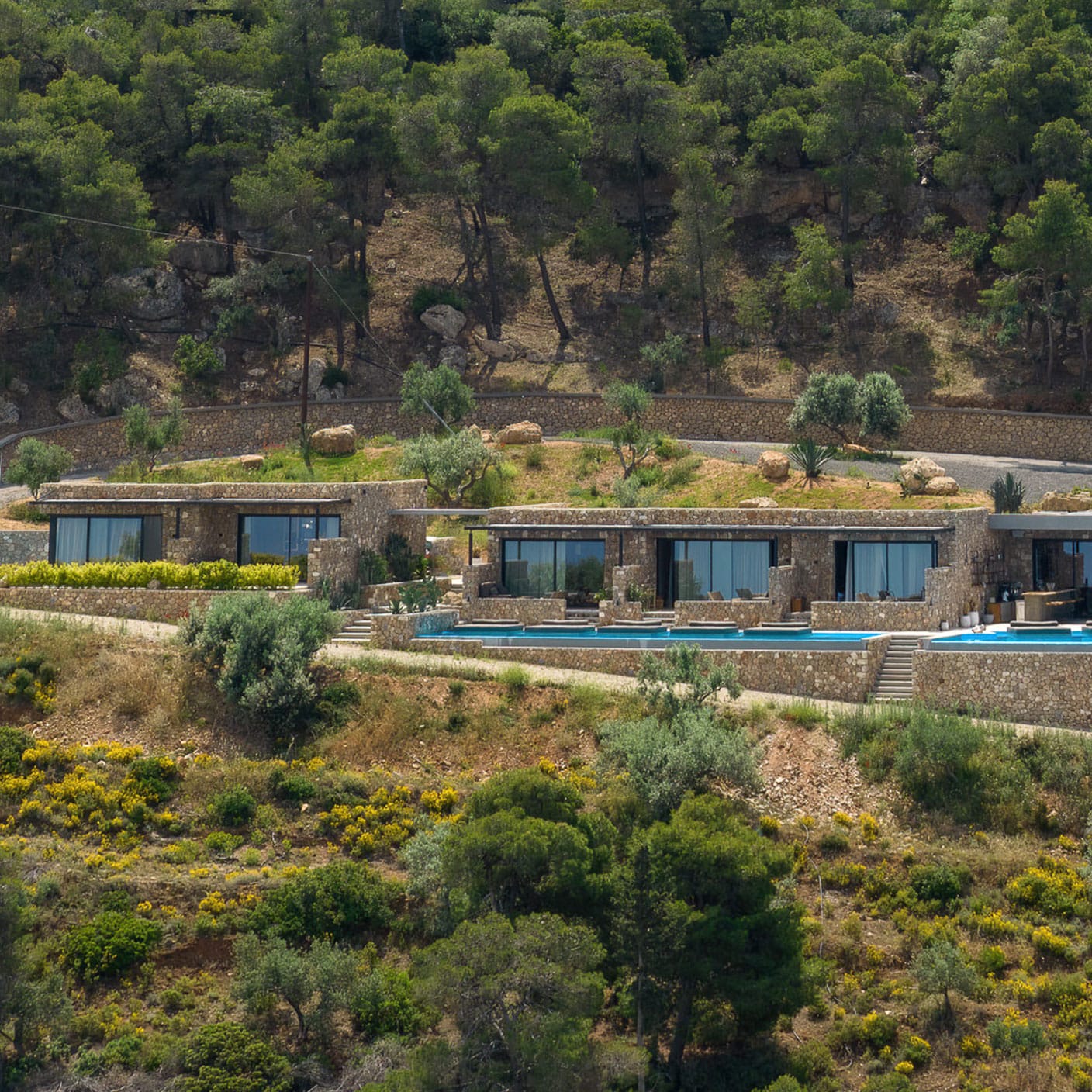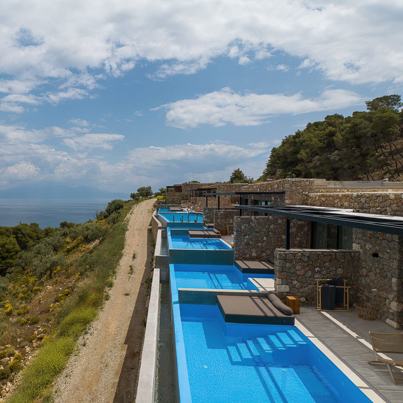 All nine suites are spacious combining earthy and natural materials with modern design and uncompromising comfort. All attractively appointed to create a distinctive and inspiring environment of authentic luxury and heartfelt hospitality in the Peloponnese, Greece, featuring private terraces, infinity pools and incredible vistas.