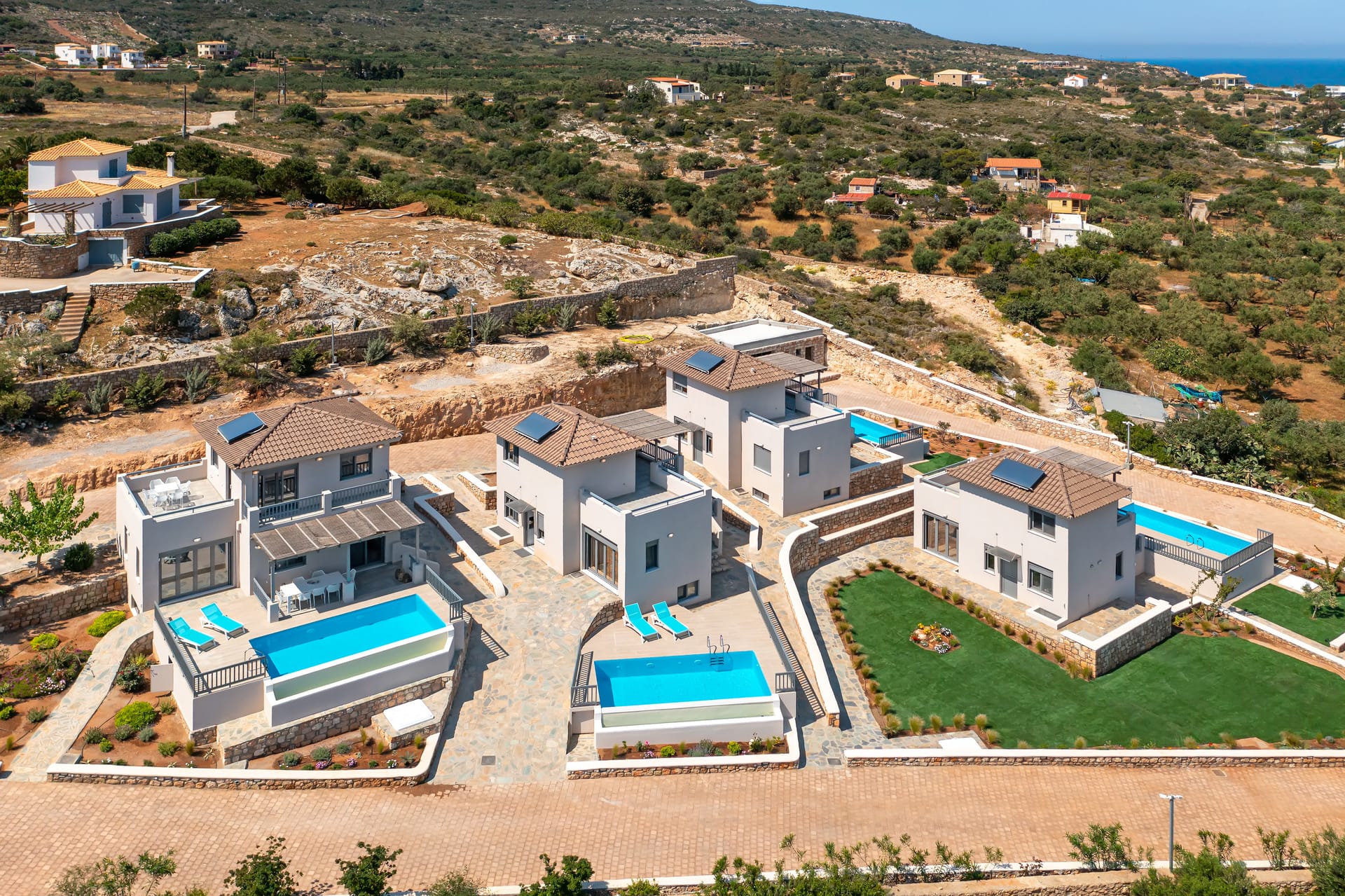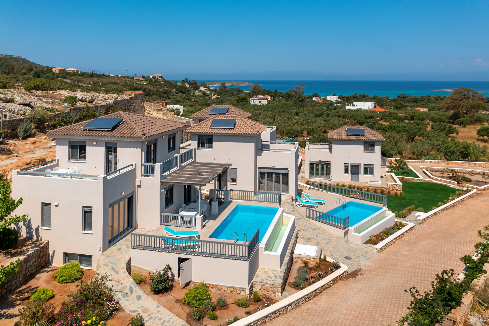 Aqua Villas, a modern villa complex consists of three separate villas Aqua Villa I, Aqua Villa II and Aqua Villa III of 115 m² each, Aqua Villa IV  of 125 m²  and a fully equipped Aqua Villa IV Studio of 35 m², with great sea views.