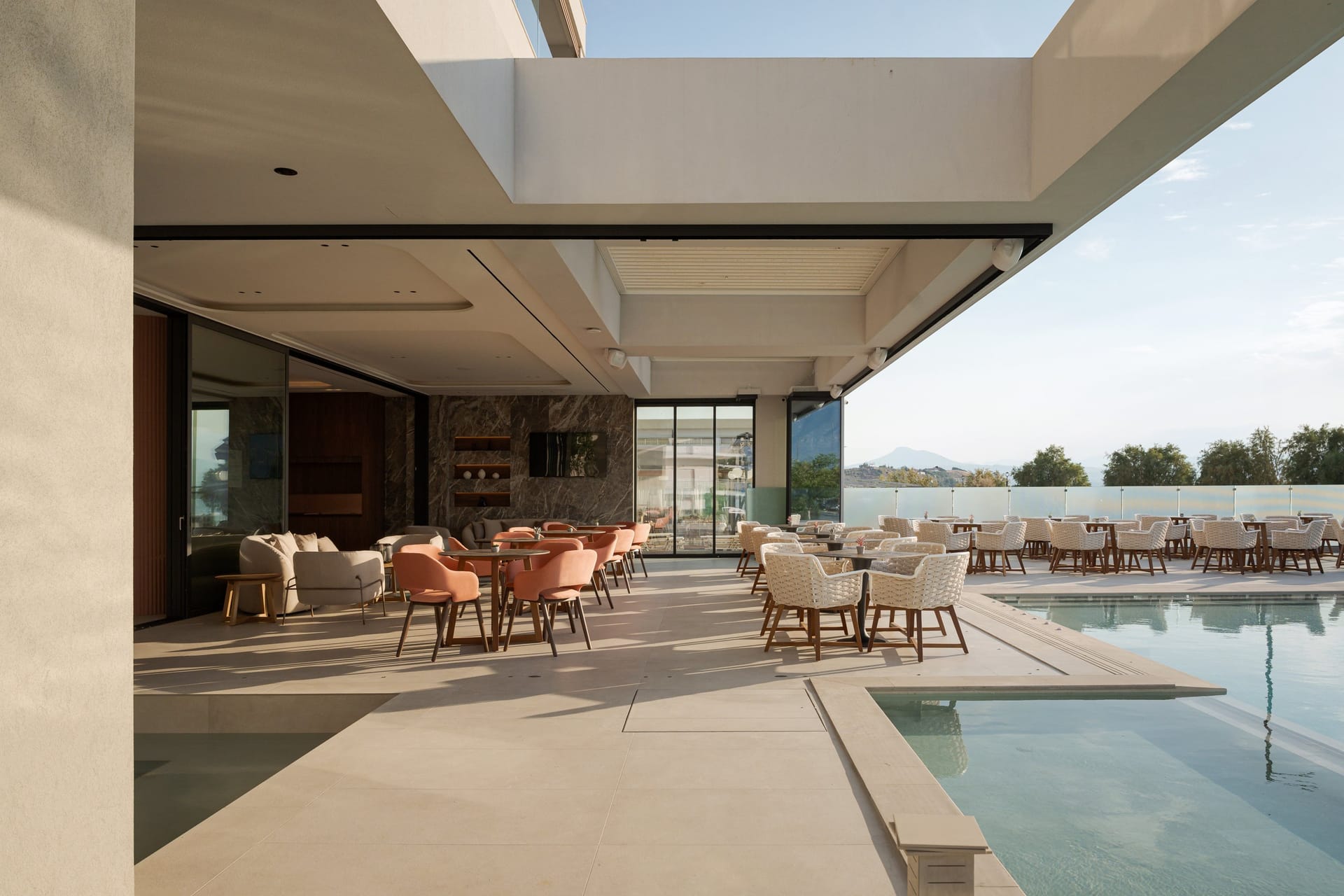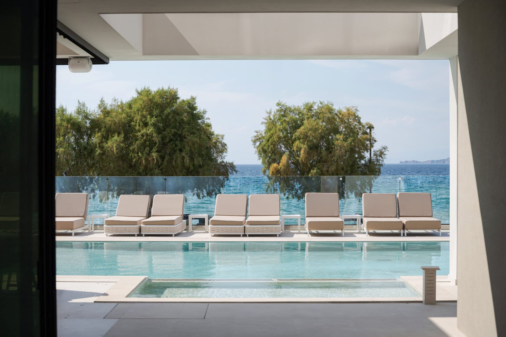 - The Junior Suite: 44 sq.m., featuring a private rooftop terrace with panoramic sea views and a private plunge pool (available seasonally in April–May and October–November).