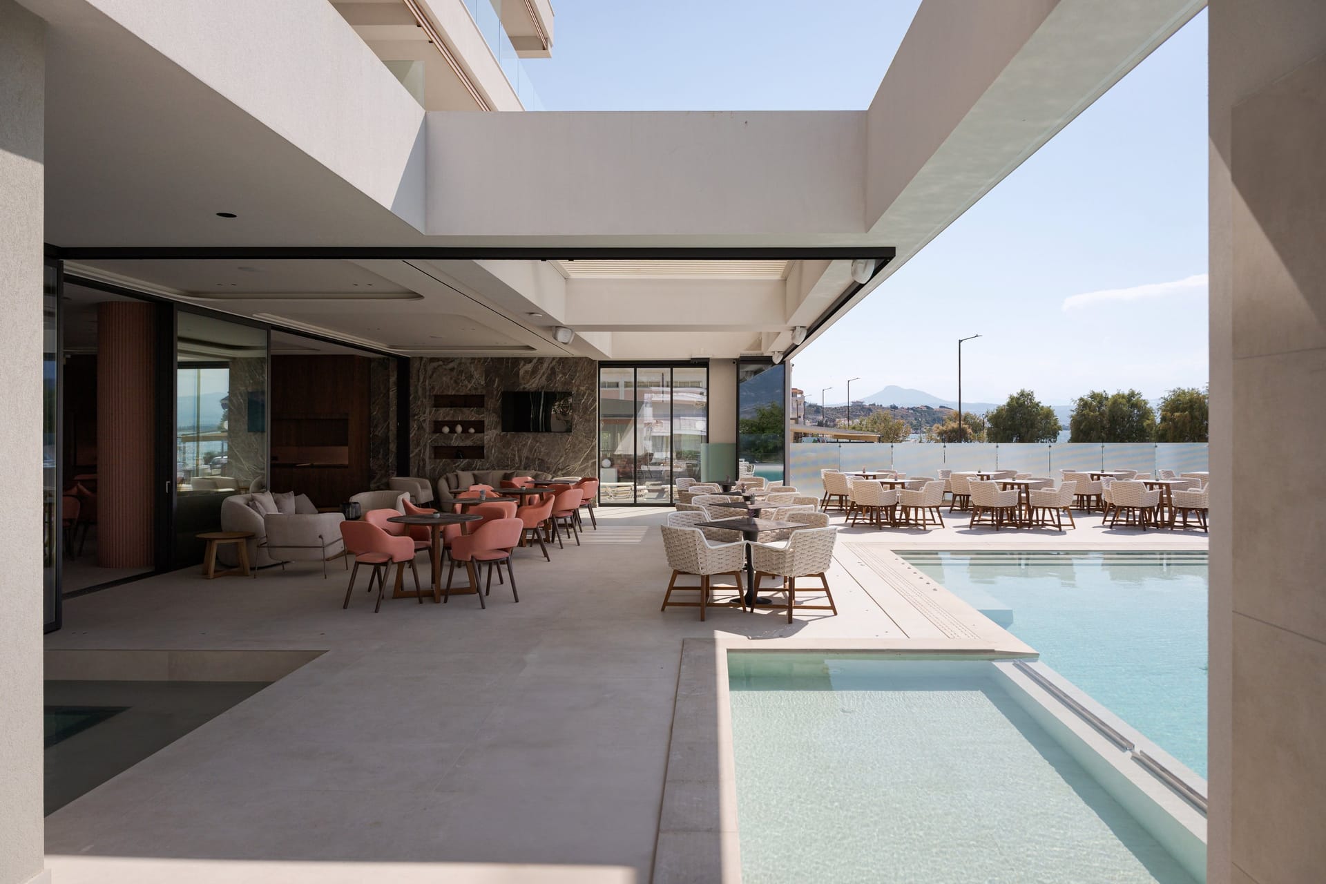 Welcome to Avant Blue Boutique Hotel, a modern beachfront retreat located in the heart of Corinth, directly across from the crystal-clear waters of Kalamia Beach. Designed for guests seeking elegance, comfort, and convenience, the hotel combines a prime beachfront location with exceptional service and facilities. Guests enjoy 24-hour reception, daily housekeeping, and a rich breakfast served every morning, all included in the stay. The hotel’s exclusive à la carte restaurant offers delicious dishes, while the stylish bar serves signature cocktails and premium drinks. For those seeking relaxation, the private outdoor pool terrace with sunbeds offers uninterrupted sea views, accessible only to guests.
