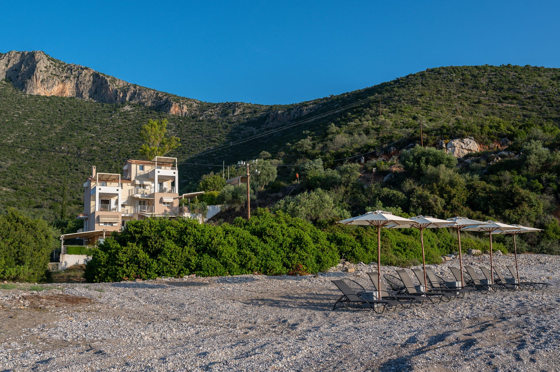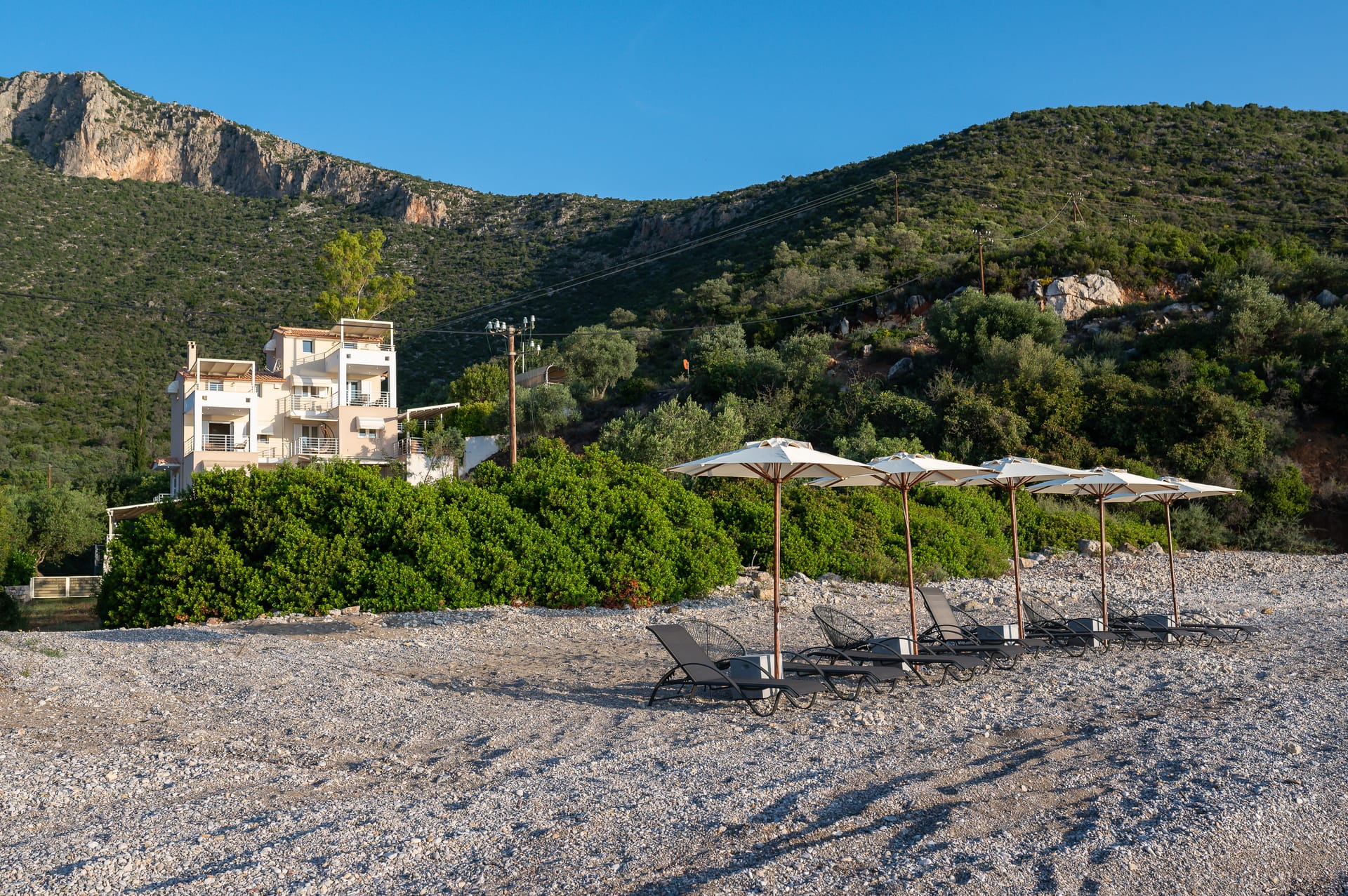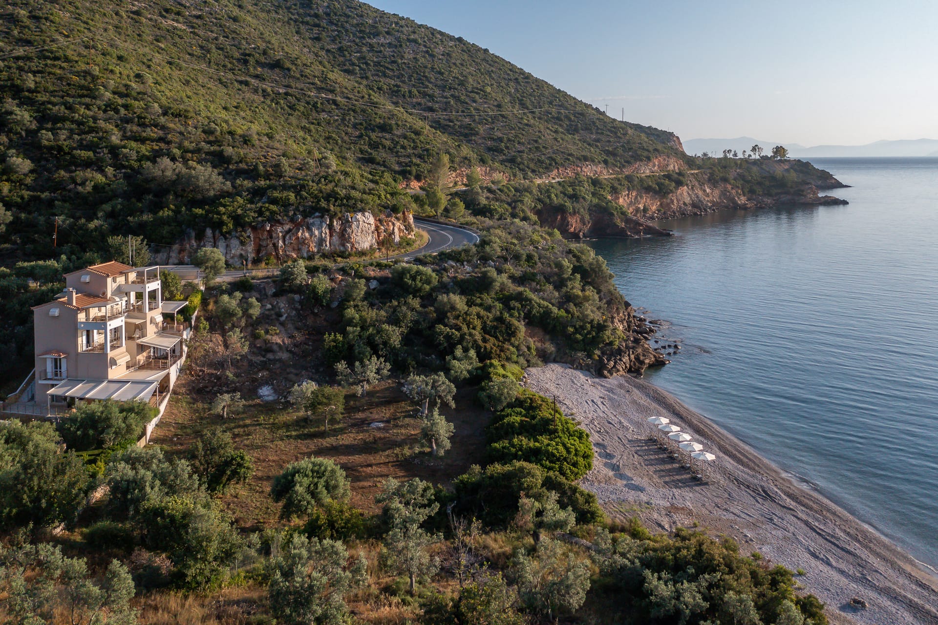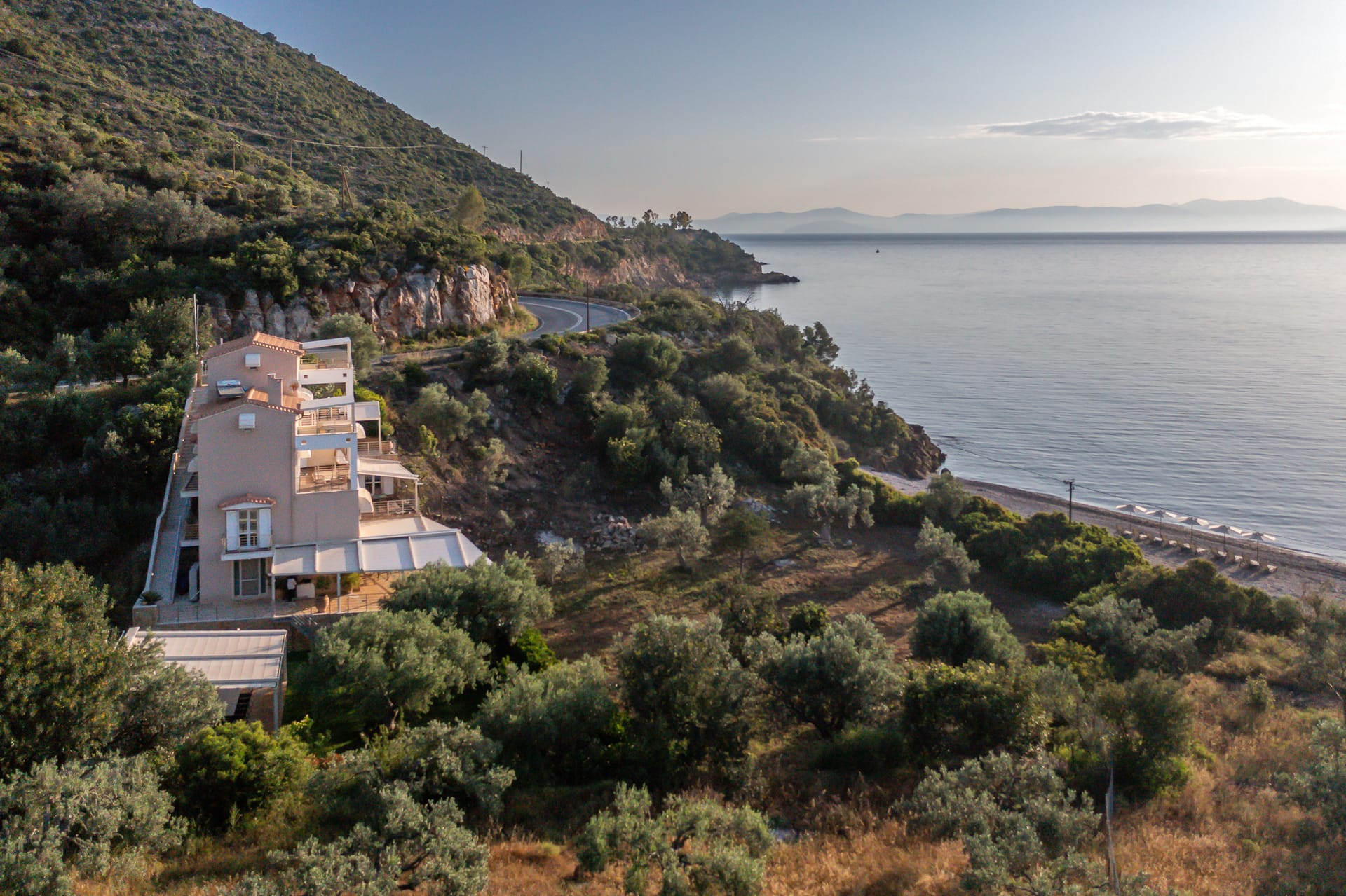 Nikole's villas is a seaside villa consisting of two maisonettes 1st and 2nd floor 180sqm (Nikole's villas Luxury 180m2) and 3rd and 4th floor 80sqm (Nikole's villas Cozy 80m2). With an almost own pebble beach at a distance of 30m (umbrellas, sunbeds, chairs, tables).