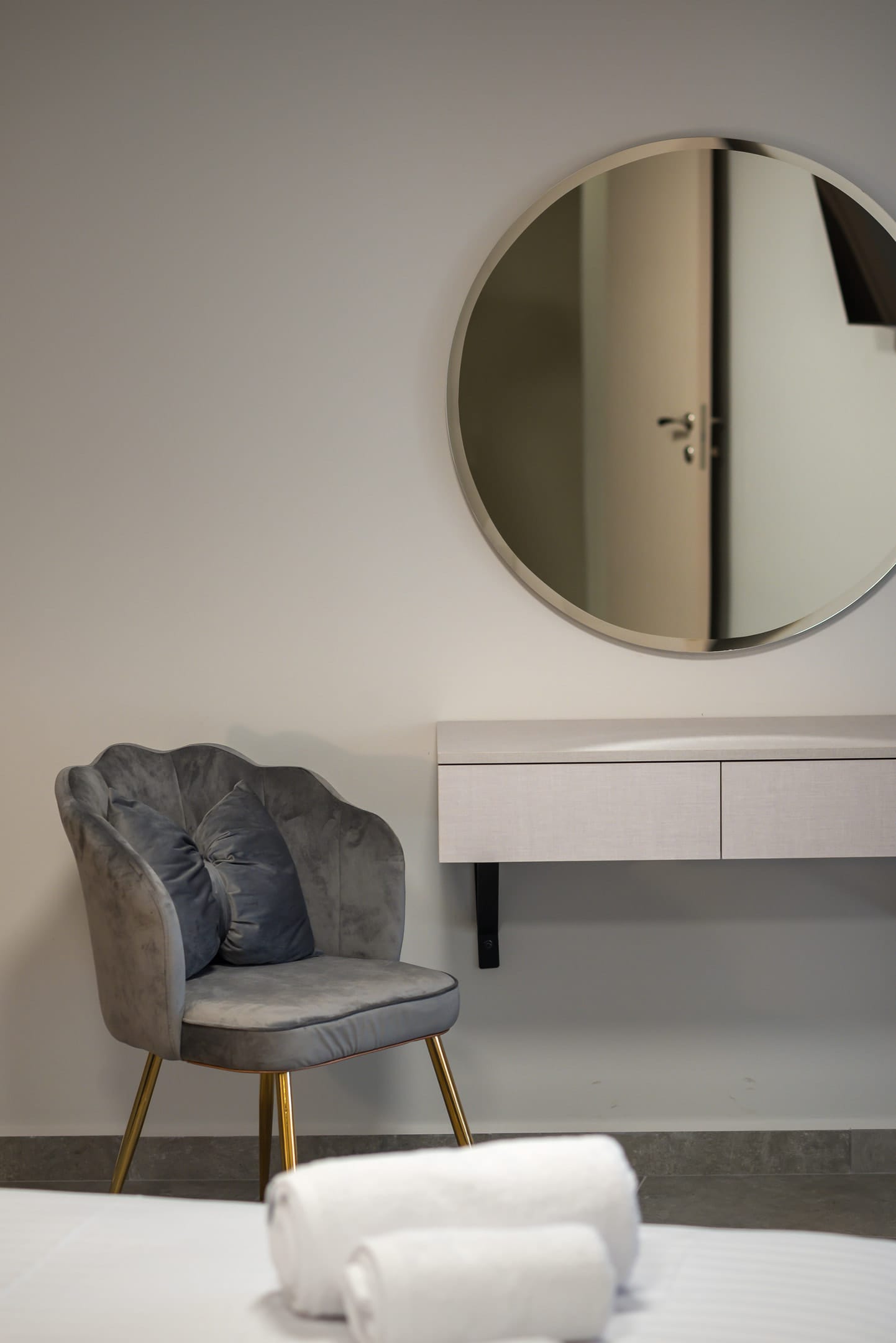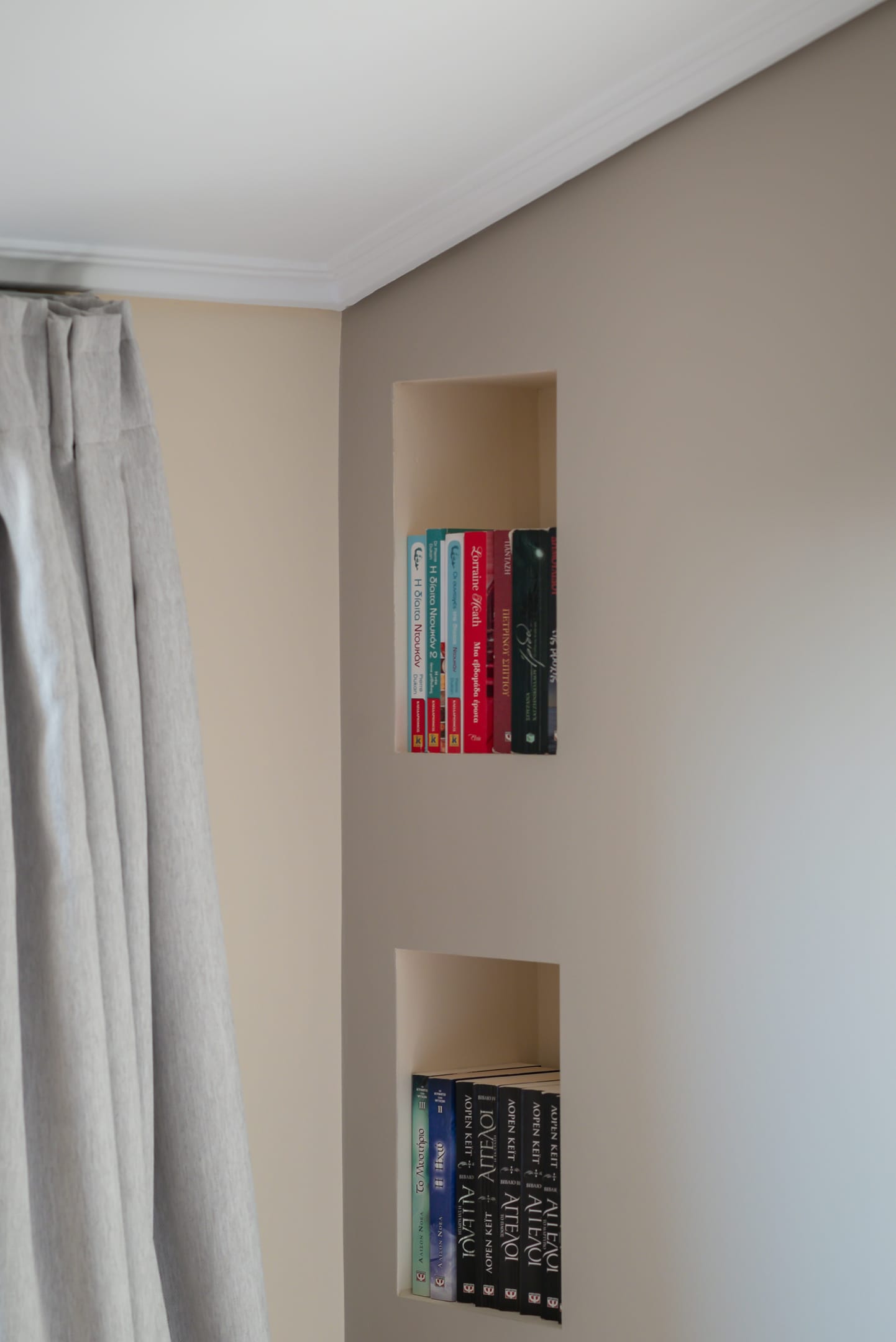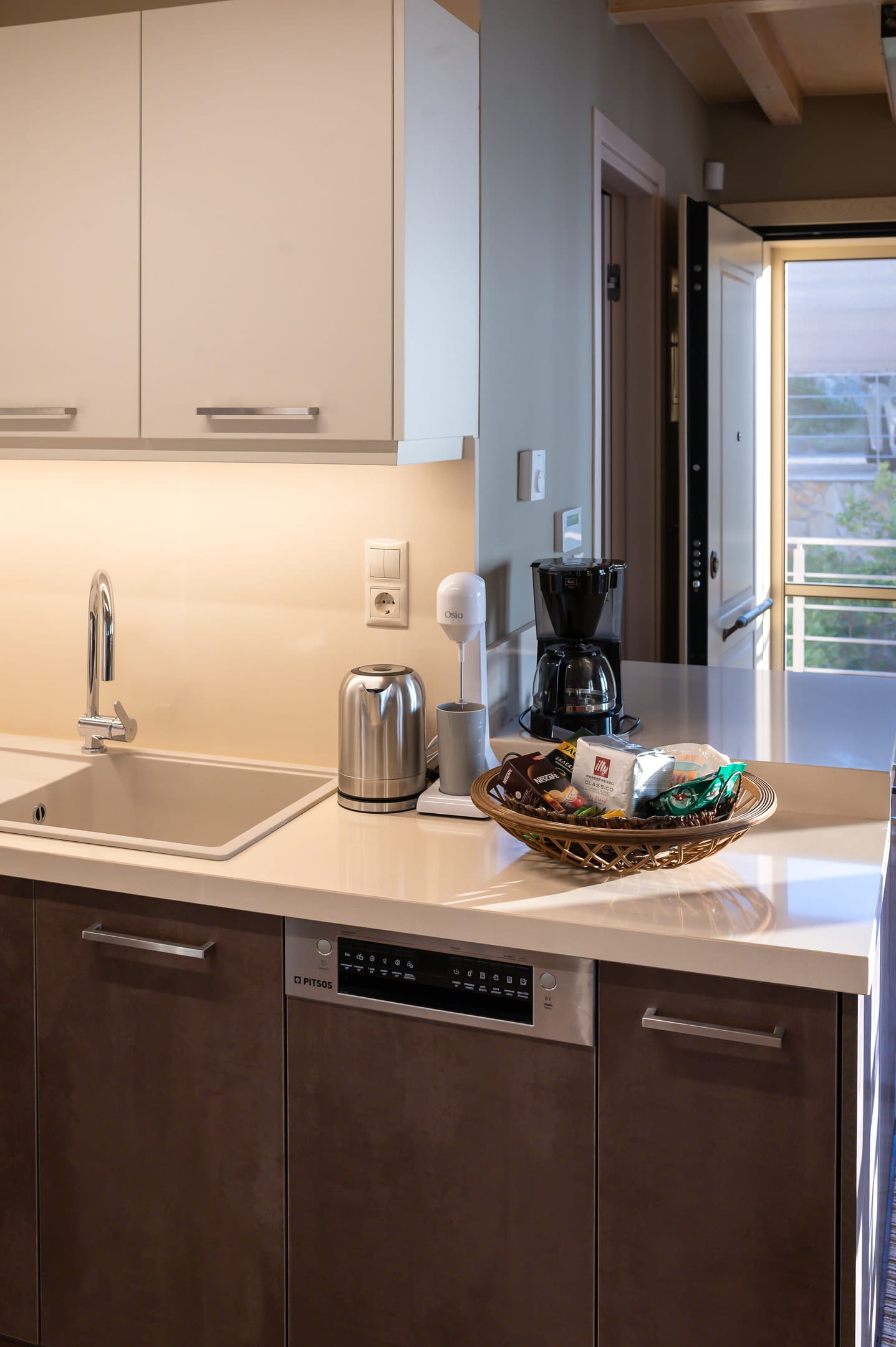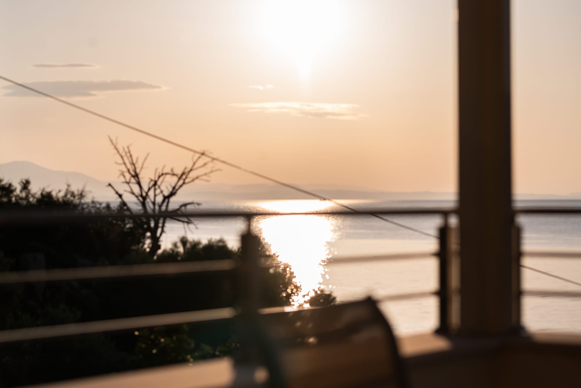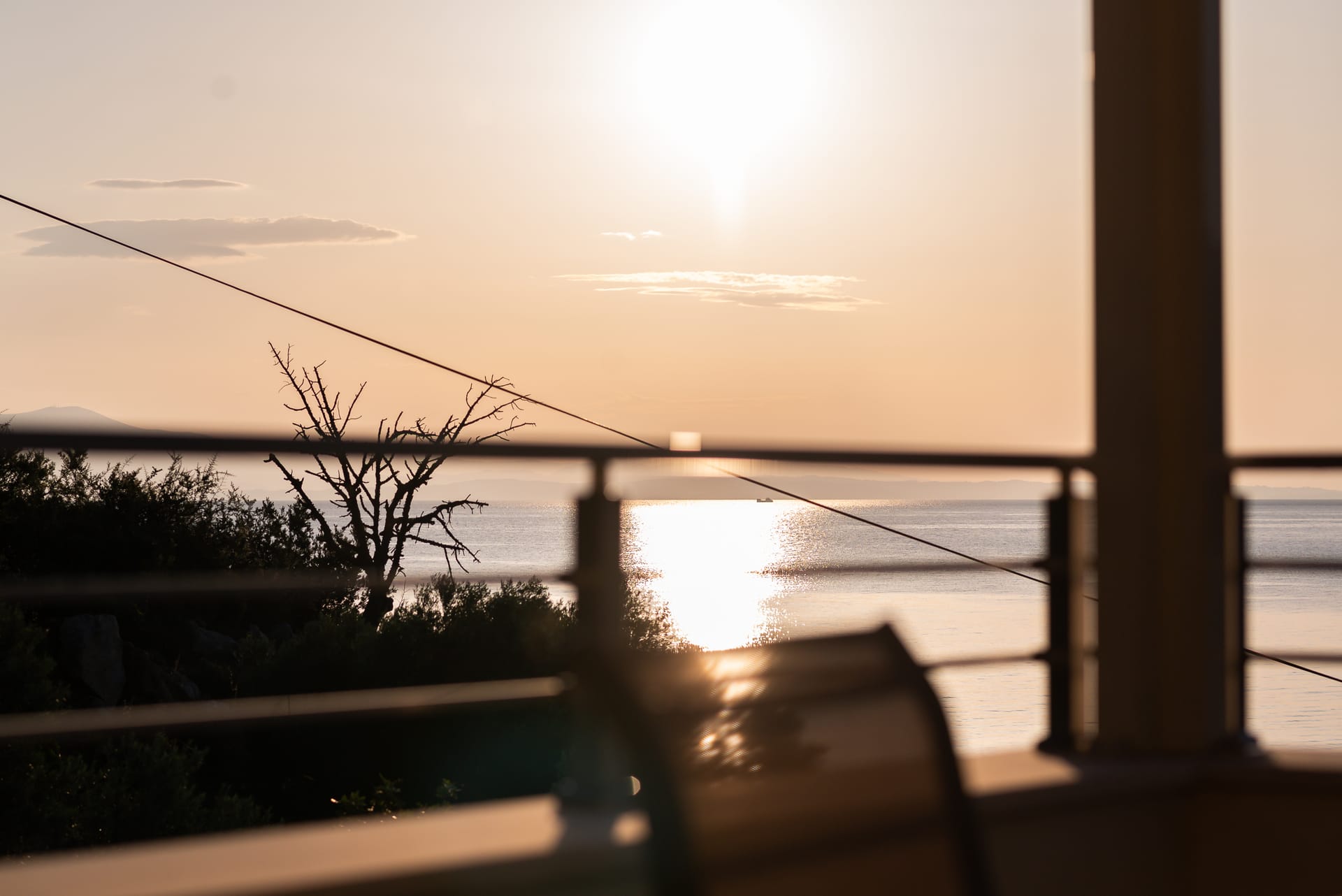 This one of 80sqm on the 3rd floor has 1 room with 1 double bed (wardrobe, painting toilet with mirror and stool) in an open space 1 living room (TV) and 1 fully equipped kitchen (dishwasher, refrigerator, oven, hob, washing machine, coffee maker for French coffee, coffee maker for esresso, frappe maker, kettle etc), 1 small storage room (electric vacuum, ironing board, swiffer mop with vetex, broom with dustpan, clothes rack) and 1 bathroom (shower).Going up to the 4th floor by a wooden staircase is 1 room with 3 single beds and 1 two-seat desk (wardrobe, TV).The floor on both floors is made of wood except for the bathroom which is tiled. All areas open onto large verandas with sea and mountain views where you can enjoy the enchanting dawn.