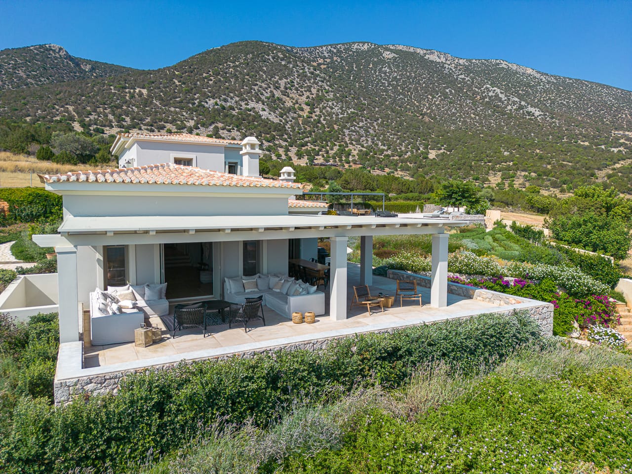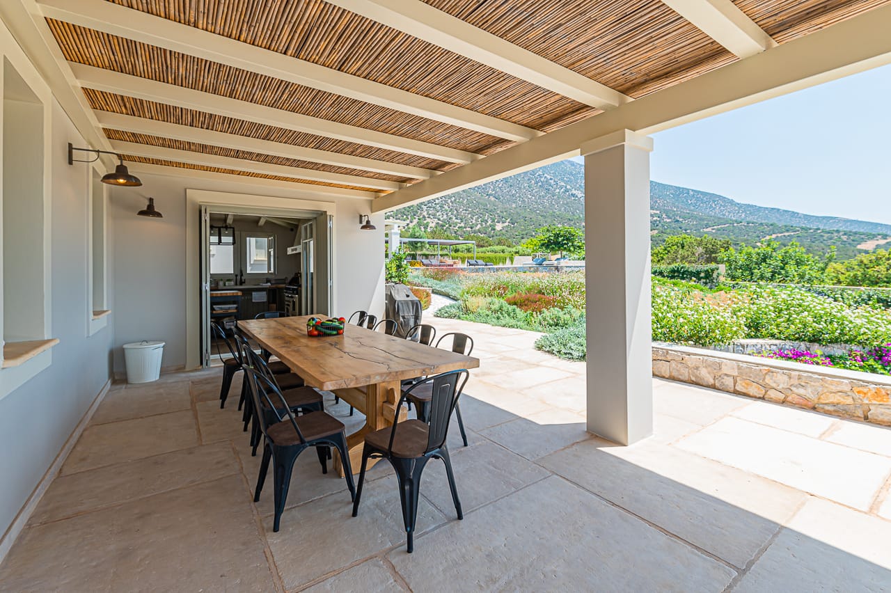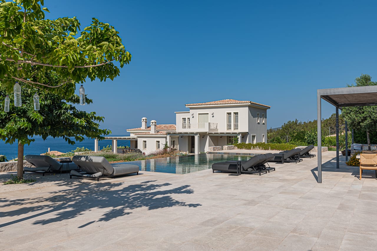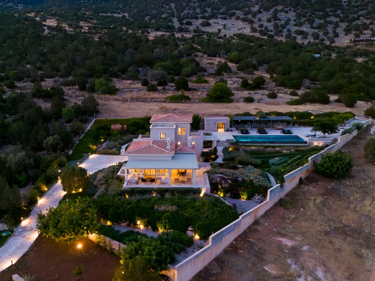 Perched on the hillcrest of Salanti Bay, Salanti Hillcrest offers a luxurious escape with breathtaking views, surrounded by vibrant Mediterranean gardens, an organic orchard, and a vegetable garden. This expansive villa features 7 double bedrooms with ensuite bathrooms, a large swimming pool, outdoor dining and lounging areas, and modern amenities like air conditioning, WIFI, and a projector for outdoor movies. Enjoy easy access to the main Salanti beach and nearby fjords, making it the perfect destination for relaxation and natural beauty.
