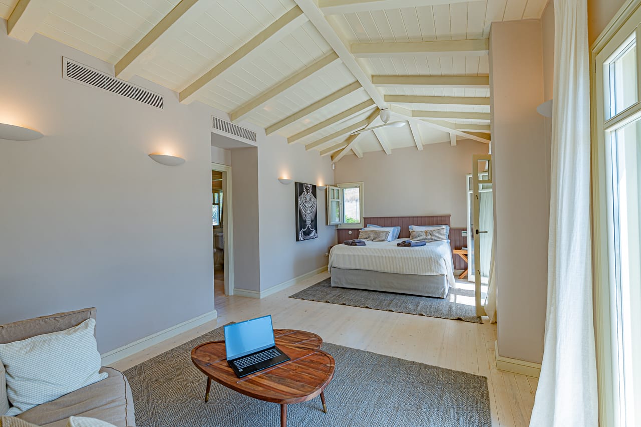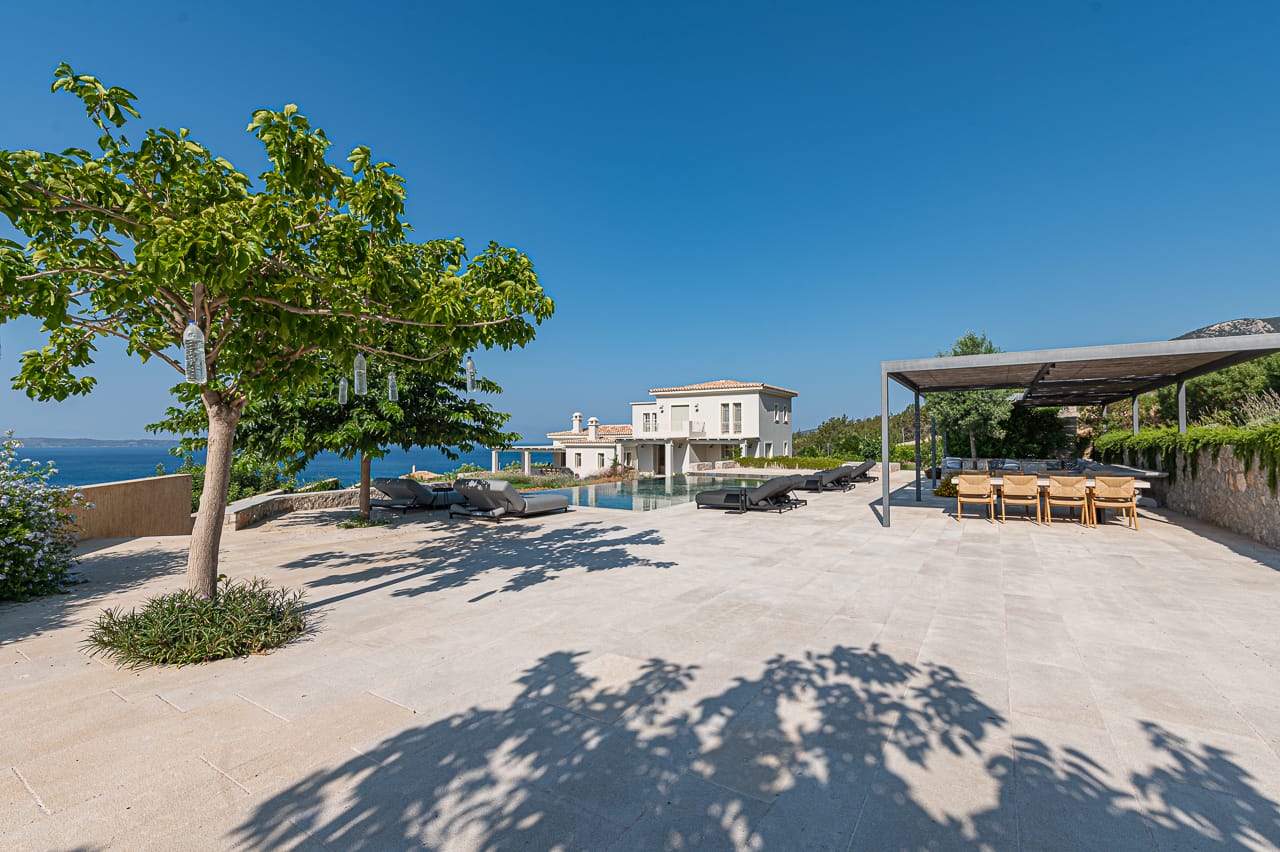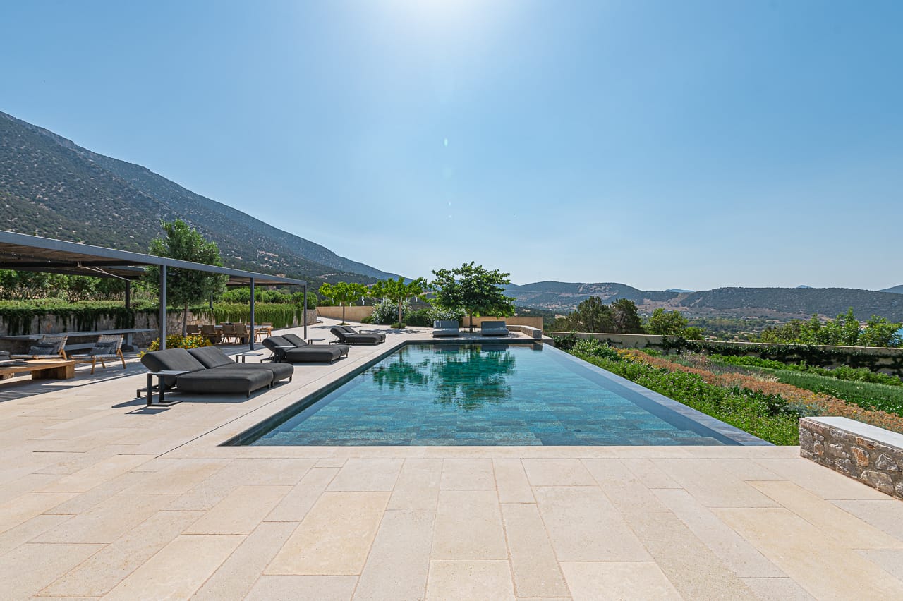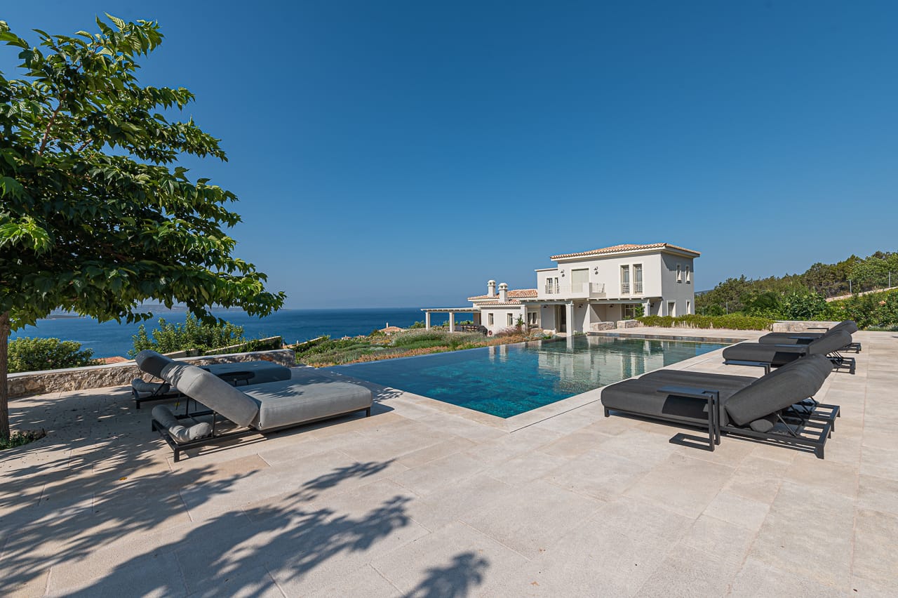 Perched on the hillcrest of Salanti Bay, Salanti Hillcrest offers a luxurious escape with breathtaking views, surrounded by vibrant Mediterranean gardens, an organic orchard, and a vegetable garden. This expansive villa features 7 double bedrooms with ensuite bathrooms, a large swimming pool, outdoor dining and lounging areas, and modern amenities like air conditioning, WIFI, and a projector for outdoor movies. Enjoy easy access to the main Salanti beach and nearby fjords, making it the perfect destination for relaxation and natural beauty.
