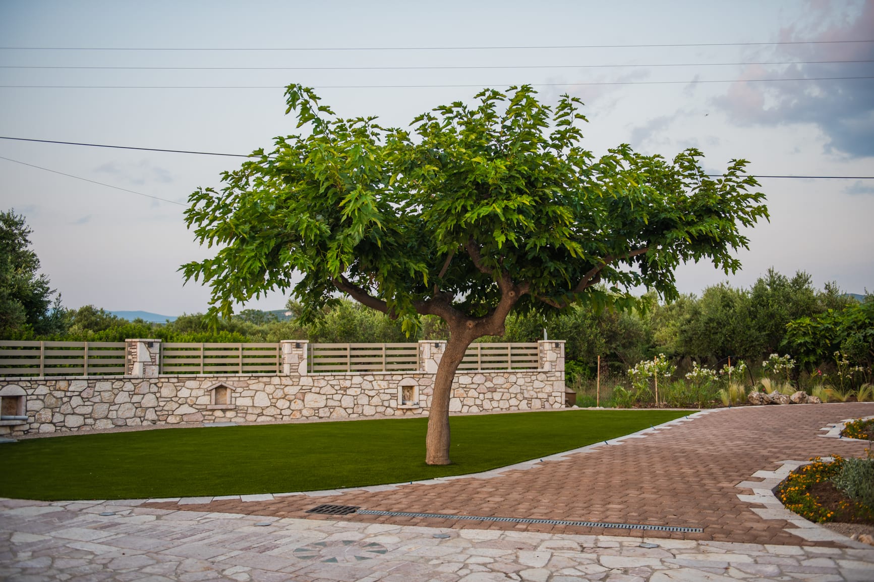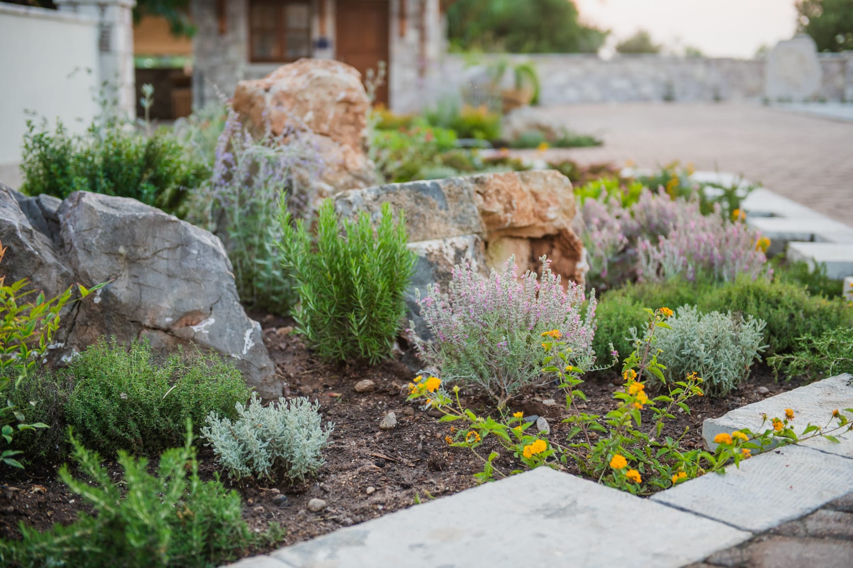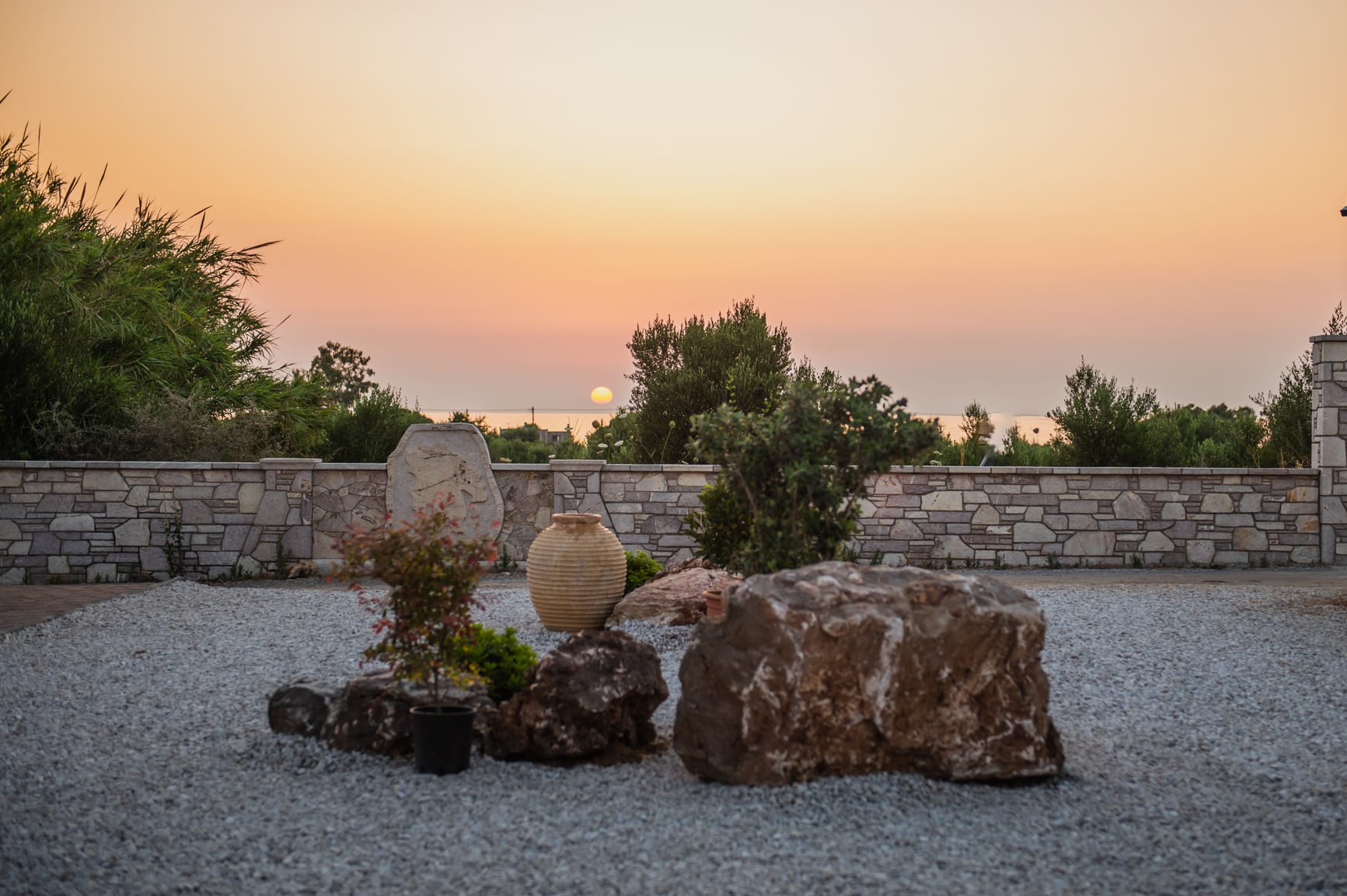 The complex can accommodate up to 33 guests and offers a serene natural environment with a courtyard, garden, vineyard, and organic vegetable garden. Free-roaming animals, such as sheep and goats, enhance the sense of an authentic rural lifestyle in perfect harmony with nature. Several outdoor sitting areas with sea views create ideal spaces for relaxation, reading, meditation, or small private wellness sessions.