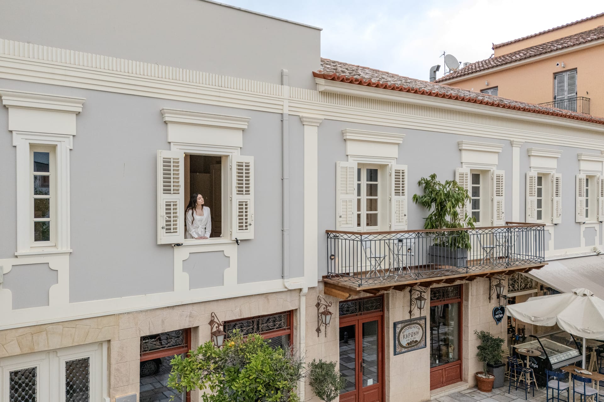 In the heart of the old town of Nafplio, next to the central Syntagma Square, lies Amalie Suites. Housed in an elegant Neoclassical building with discreet luxury and beautiful architectural aesthetics, Amalie with five elegant rooms-suites, offers a sense of privacy and authentic hospitality. Its name is inspired by Queen Amalia, a historical figure who was inextricably linked to the city of Nafplio, but also by Vasileos Othonos and Amalias Avenue, a landmark street on which the accommodation is built. Amalie Suites is the ideal choice for couples, families or friends who desire comfort, style and a romantic atmosphere in the center of the old town.