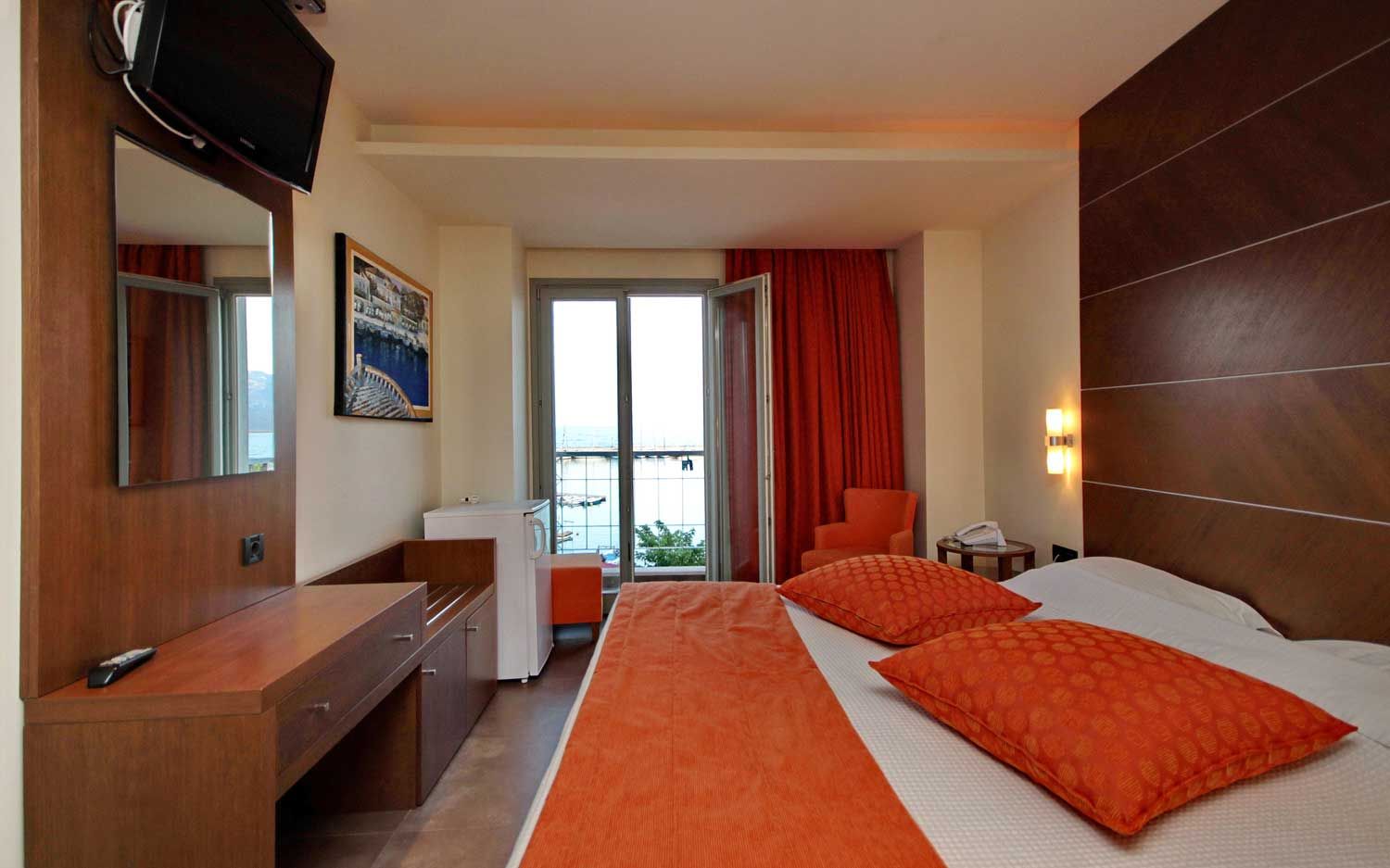 Two-storey hotel in the center of Paralio Astros, by the square and 150m from Kallisto beach. We provide café-restaurant, lift, wheelchair access, free wi-fi, lounge TV room. The rooms have all got free wi-fi access, LCD TV, shower, hair-dryer, mini bar and balcony.
