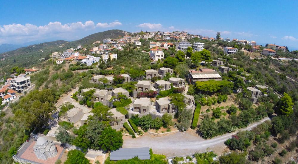 In an olive-grove of 14.000sq.m., with herbs and citrus tress, we built 25 bungalows, with influences from the local architecture. Taking advantage of the hill’s natural gradient, and the South orientation, the amphitheatrical layout offers each bungalow natural light and autonomy, as well as views to the Lakonic Gulf and the Mani peninsula.