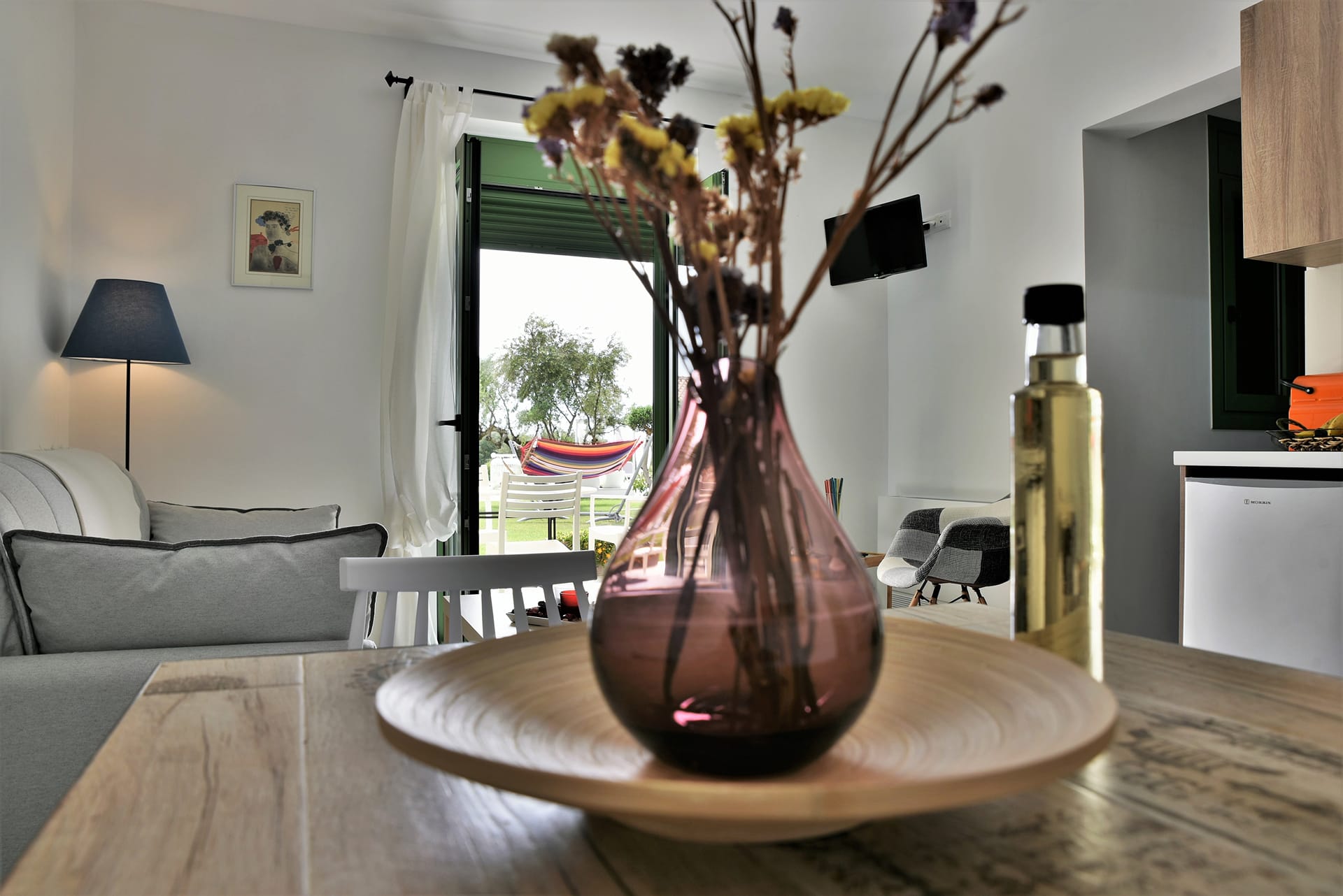 We are located in southern Greece the cradle of ancient Greek culture. In the enchanting beaches of south-western Peloponnese, three kilometers south of Marathopolis-Messinia in place "Mparla", with view the immense light blue colour of the Ionian and islet "Proti".
