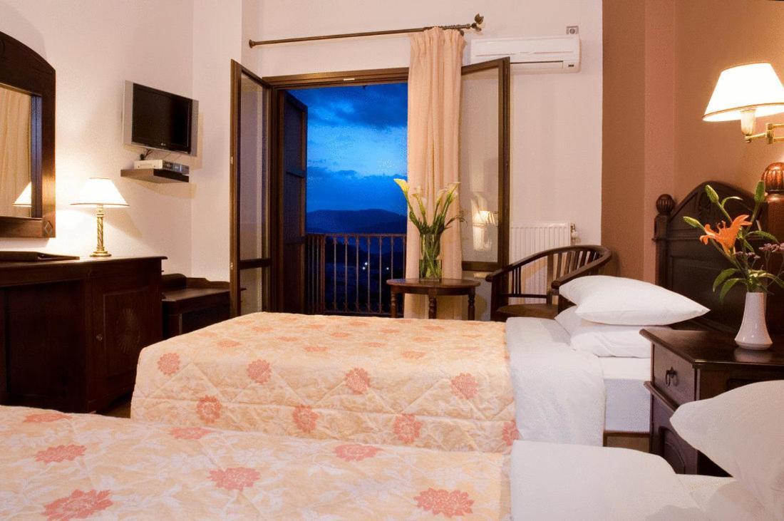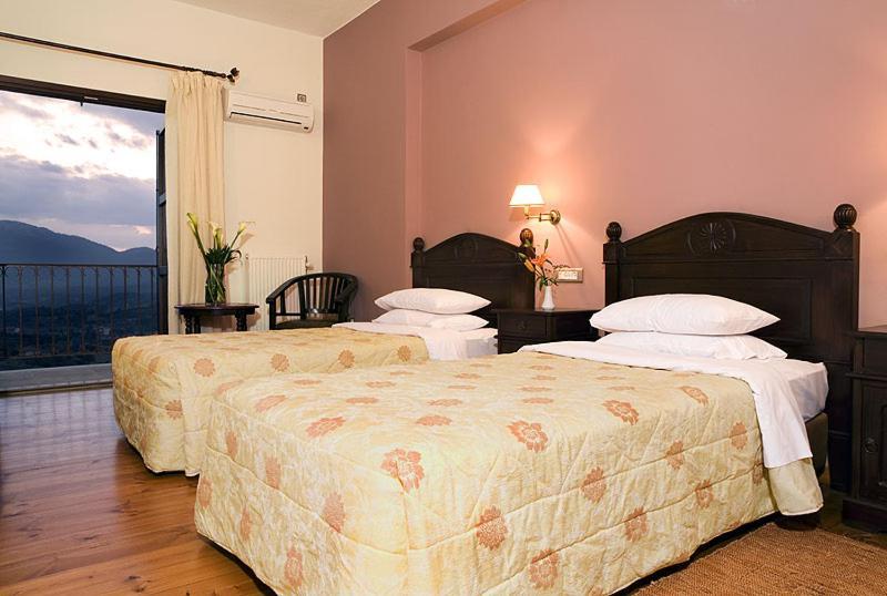 The hotel is situated in the delightful Vytina in Arcadia, close to the main road which connects Vytina town with the ski resort of Ostrakiana. It is built on the slopes of Mount Menalo and offers great views of the village and the fir tree-covered mountain. In Vytina guests will find restaurants and bars and there are many attractions nearby, such as the Holy Monastery of Kernitsa (8 km), the Philosophou Monastery (20 minutes’ drive) and the Dimitsanas Open-air Museum (20 minutes’ drive). It is some 35 km to Tripoli.