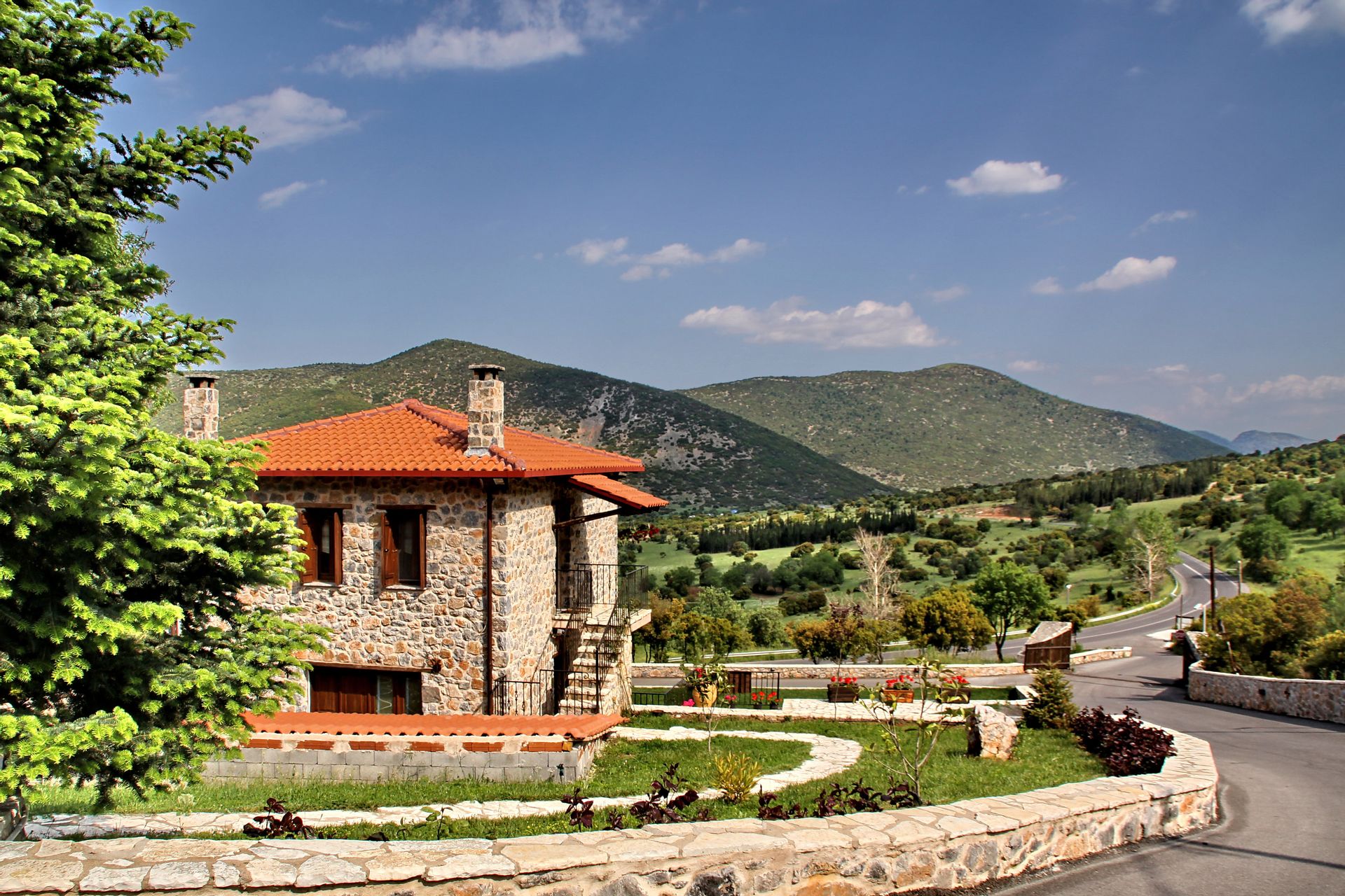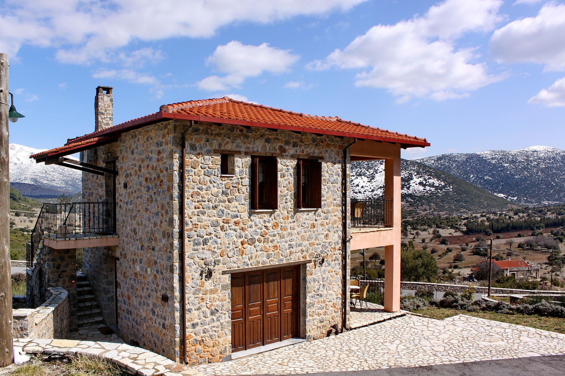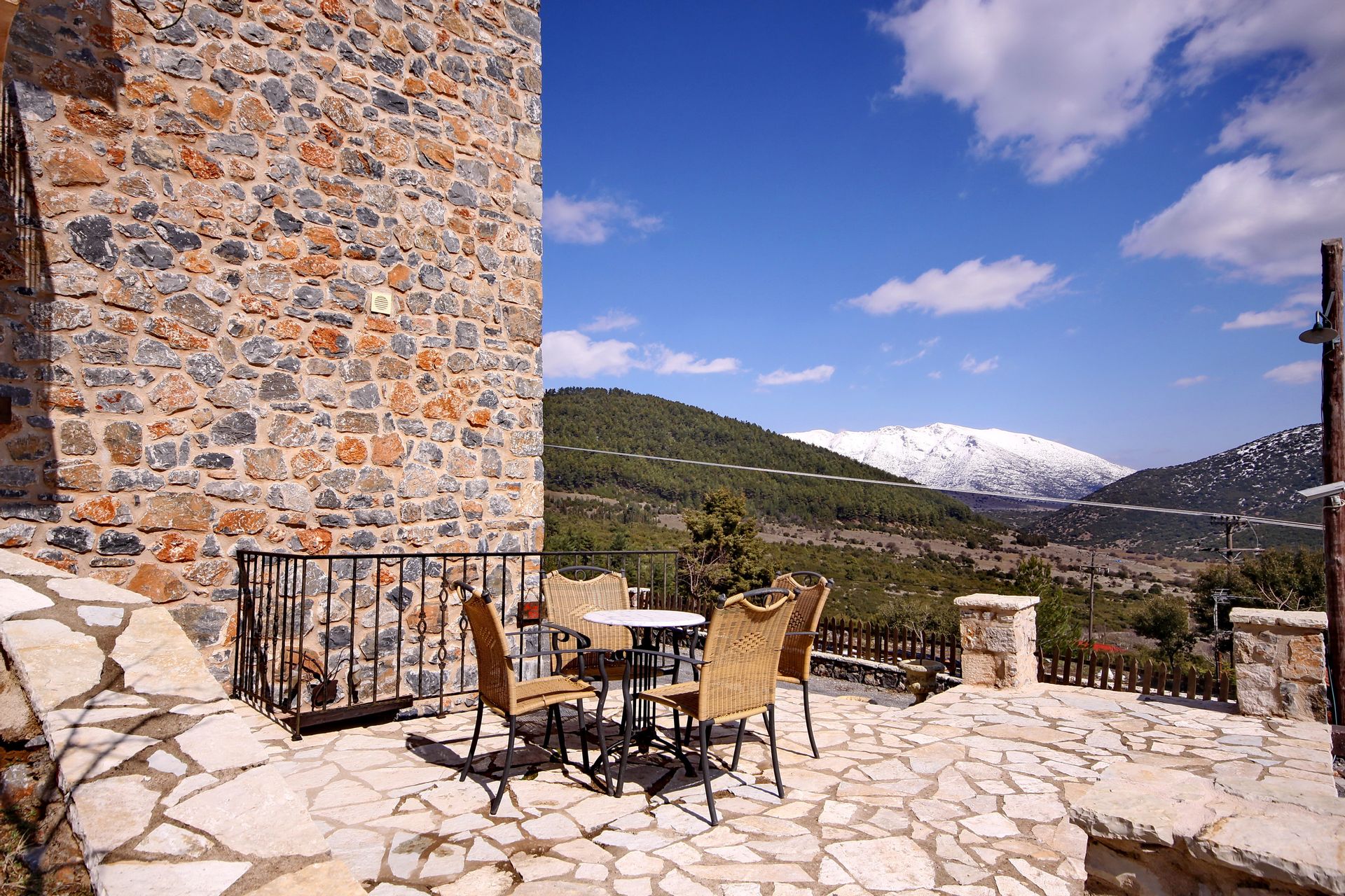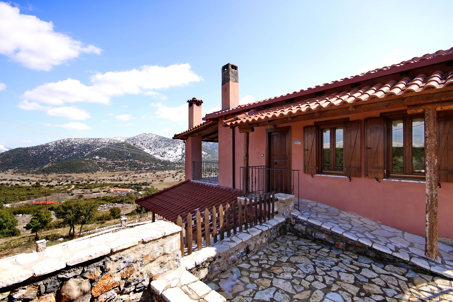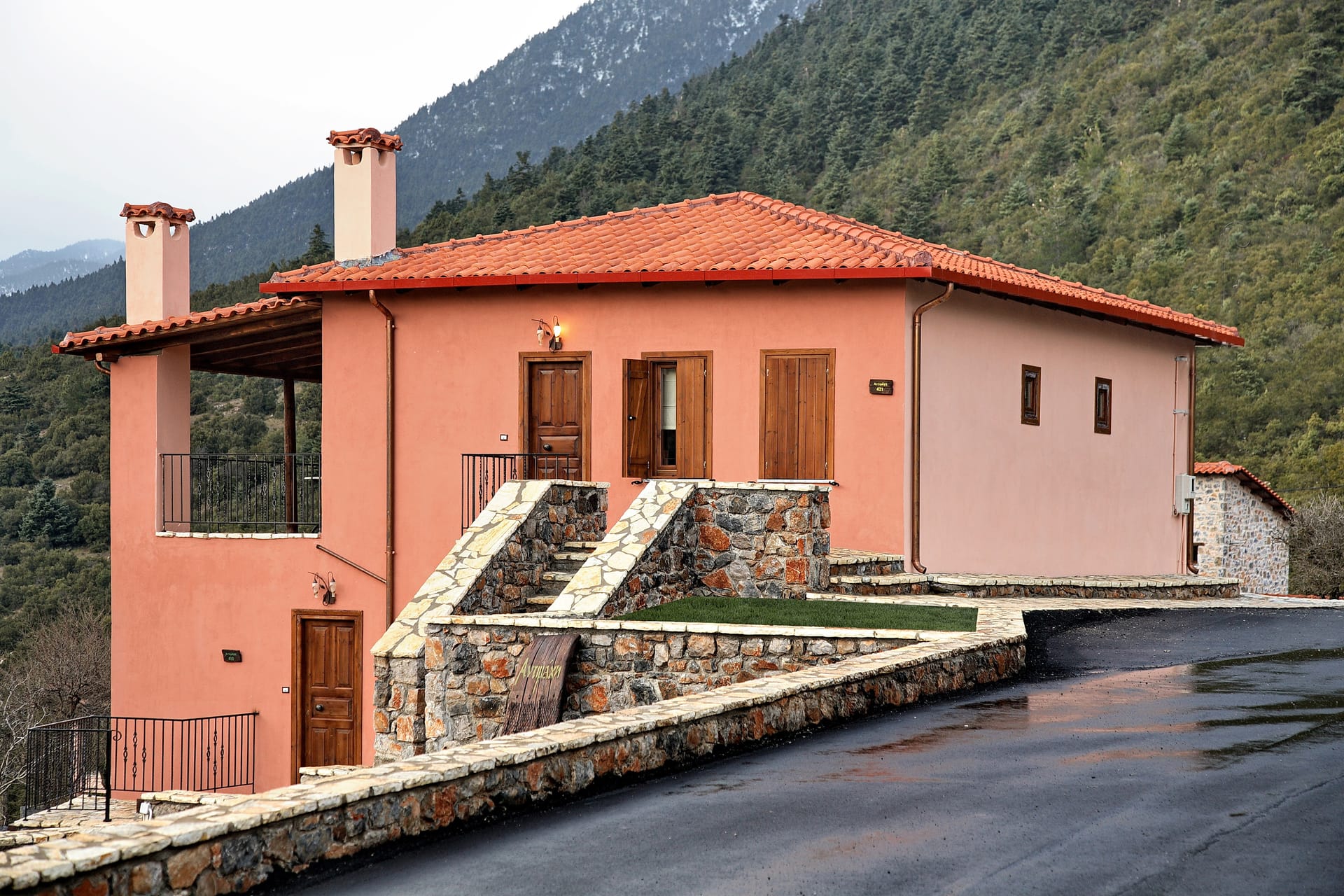 In a green area in the embrace of the forest of Mainalo, dominate the entrance of the picturesque Levidi the 6 stone-built "Nymphs" of Arcadia that host its visitors in 17 independent traditional guesthouses, perfectly harmonized with the natural beauty and architectural tradition of Arcadia. The solid charm of the stone, the soothing warmth of the local wood, combined with the discreet luxury in the decorative lines but also the modern facilities & comforts, compose a fairytale setting of relaxation and well-being within walking distance from the Athens.