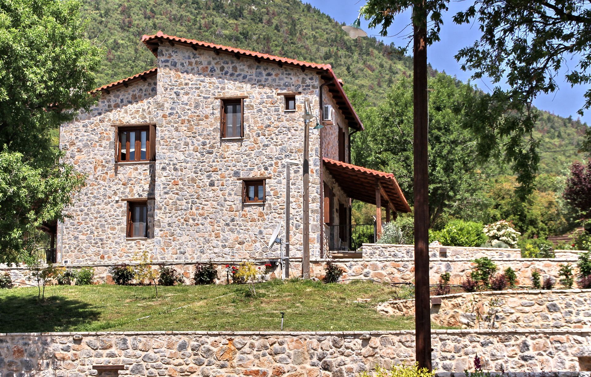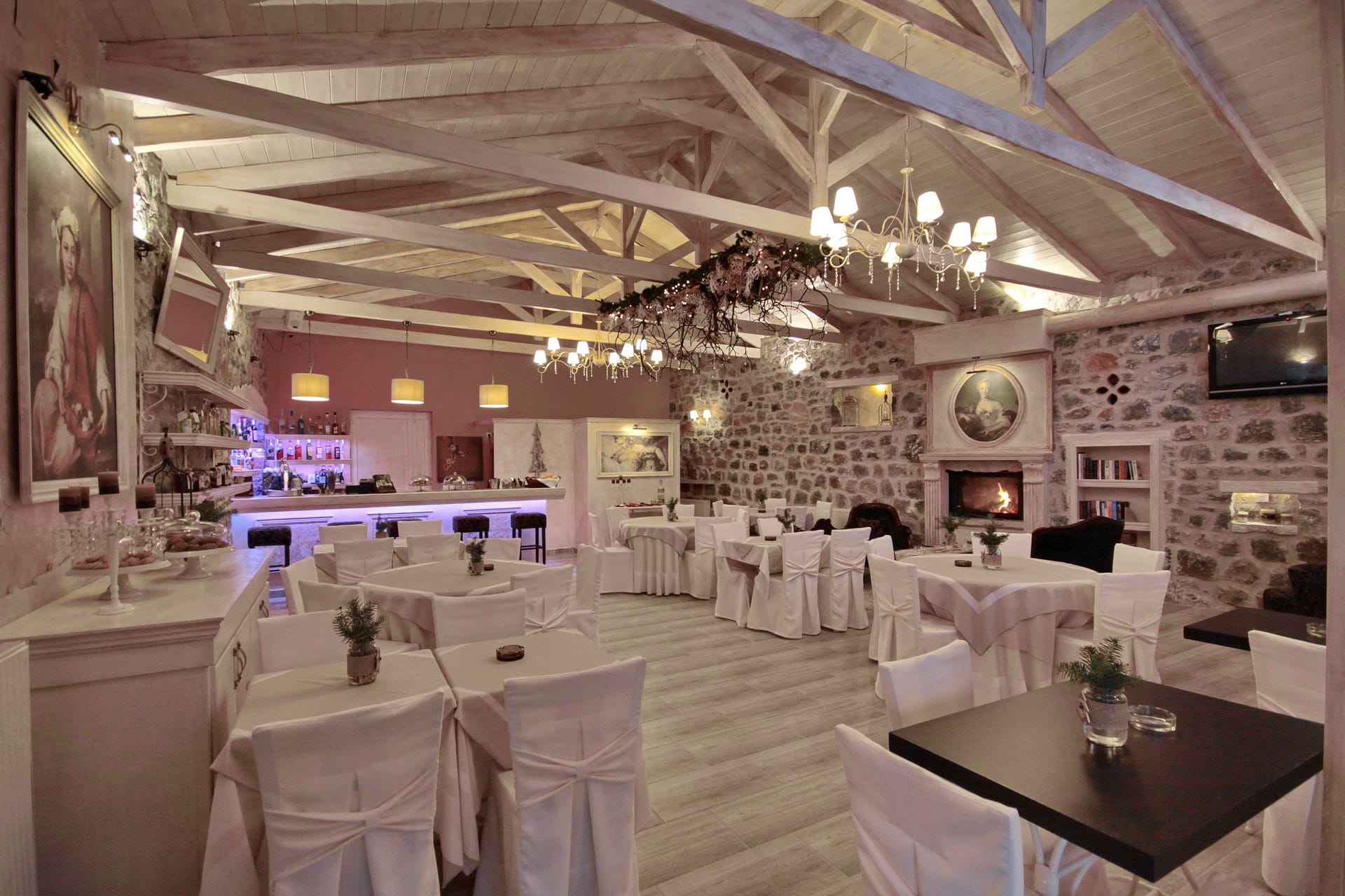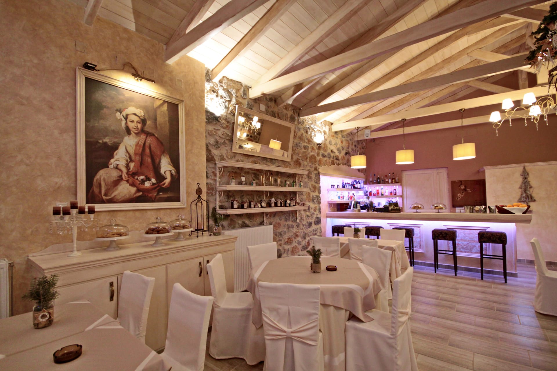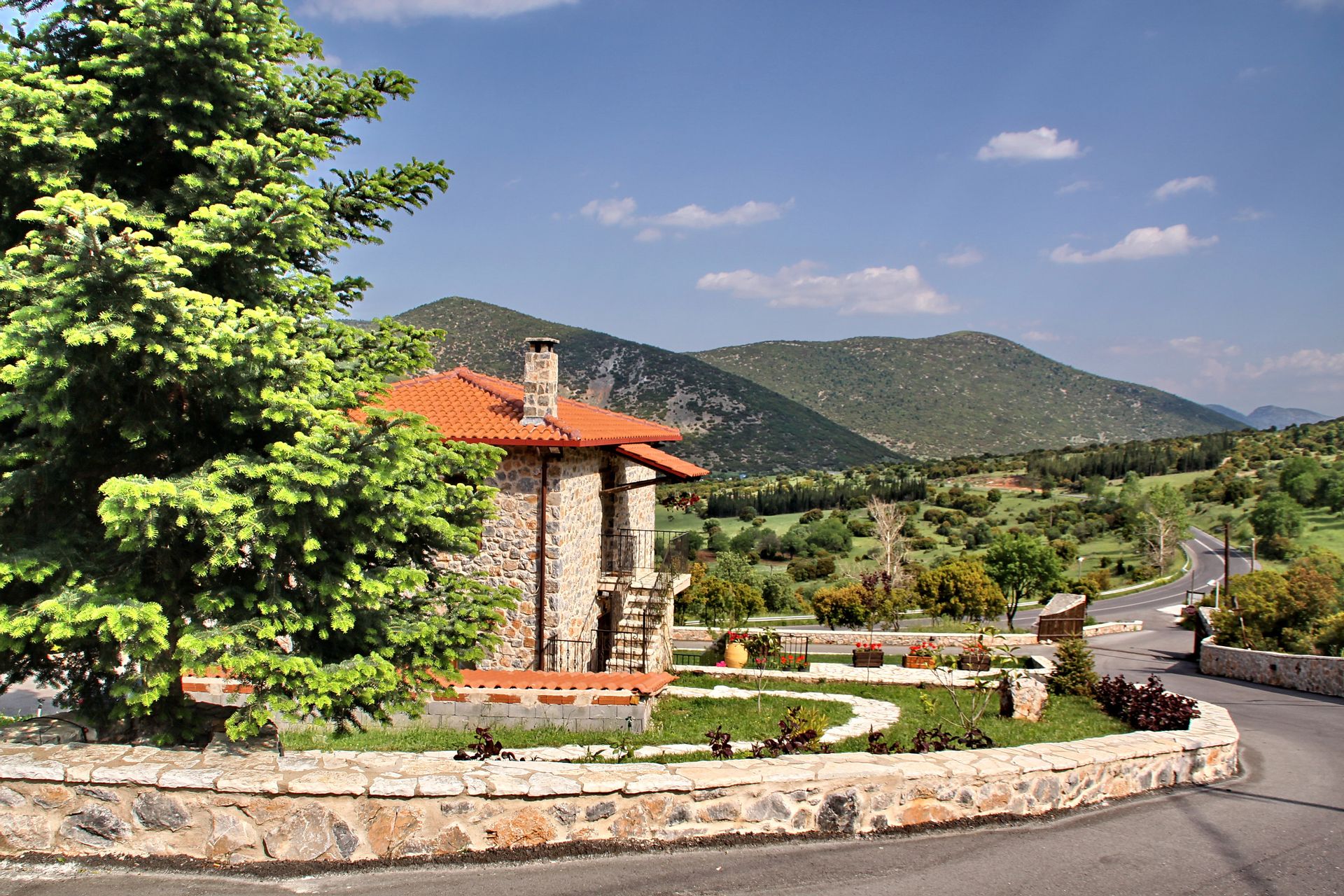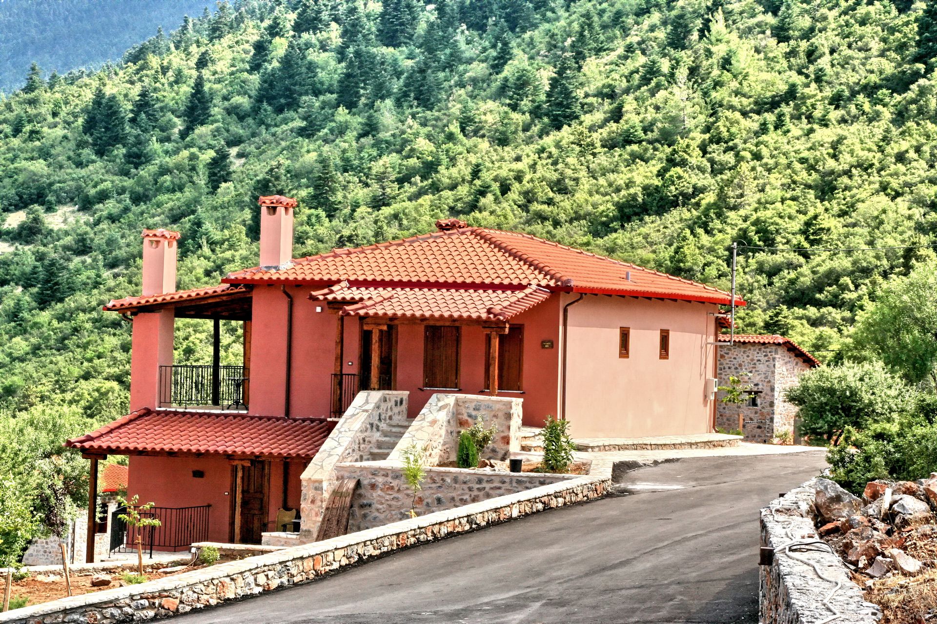 In a green area in the embrace of the forest of Mainalo, dominate the entrance of the picturesque Levidi the 6 stone-built "Nymphs" of Arcadia that host its visitors in 17 independent traditional guesthouses, perfectly harmonized with the natural beauty and architectural tradition of Arcadia. The solid charm of the stone, the soothing warmth of the local wood, combined with the discreet luxury in the decorative lines but also the modern facilities & comforts, compose a fairytale setting of relaxation and well-being within walking distance from the Athens.