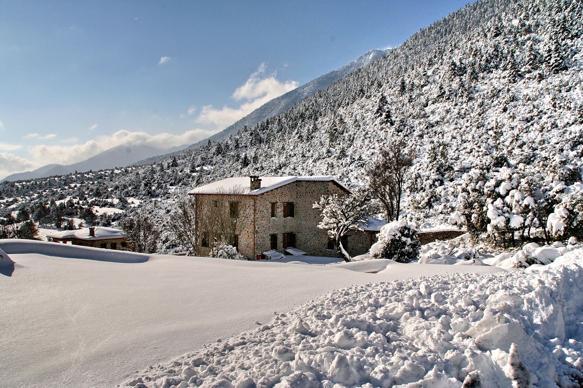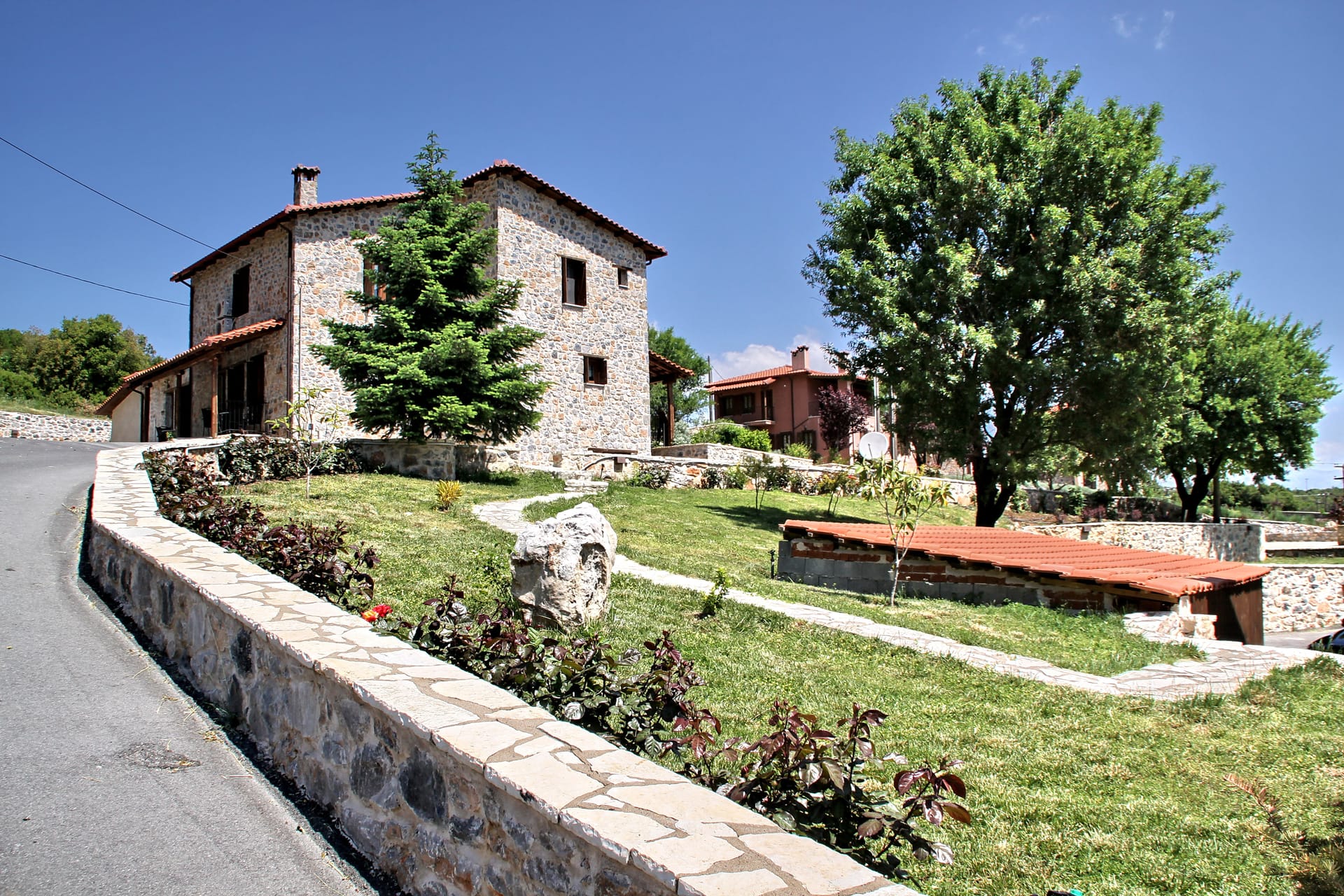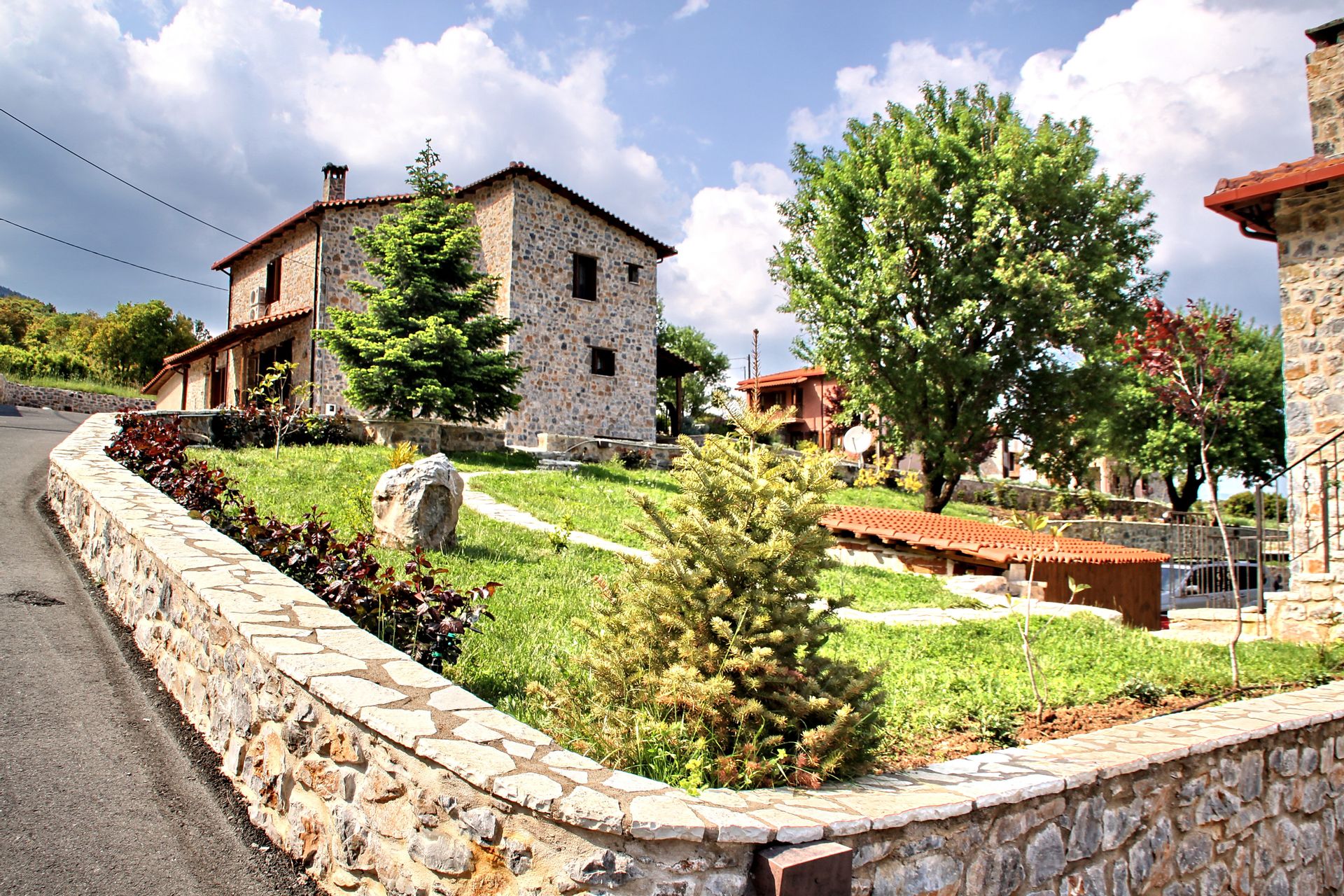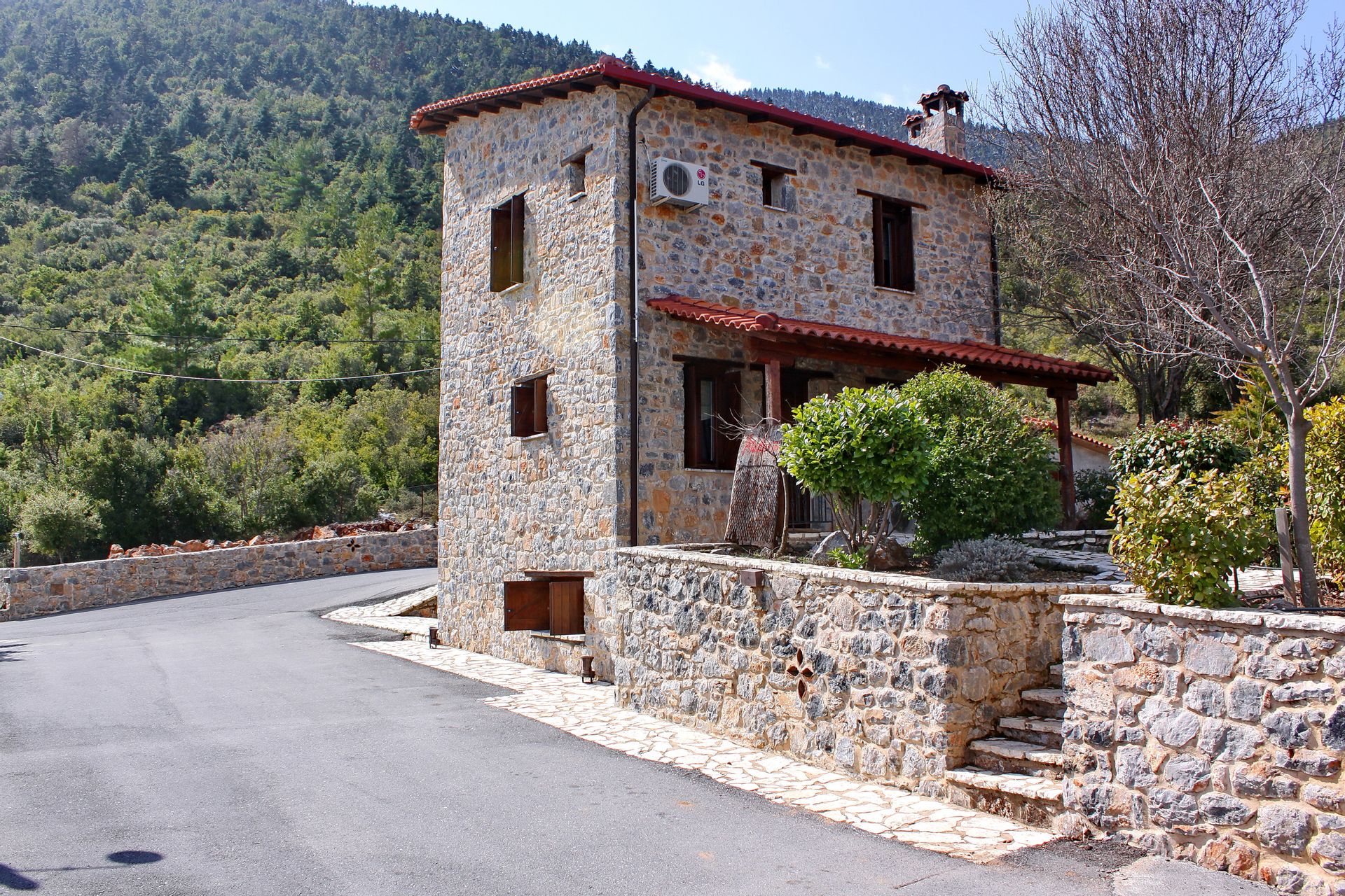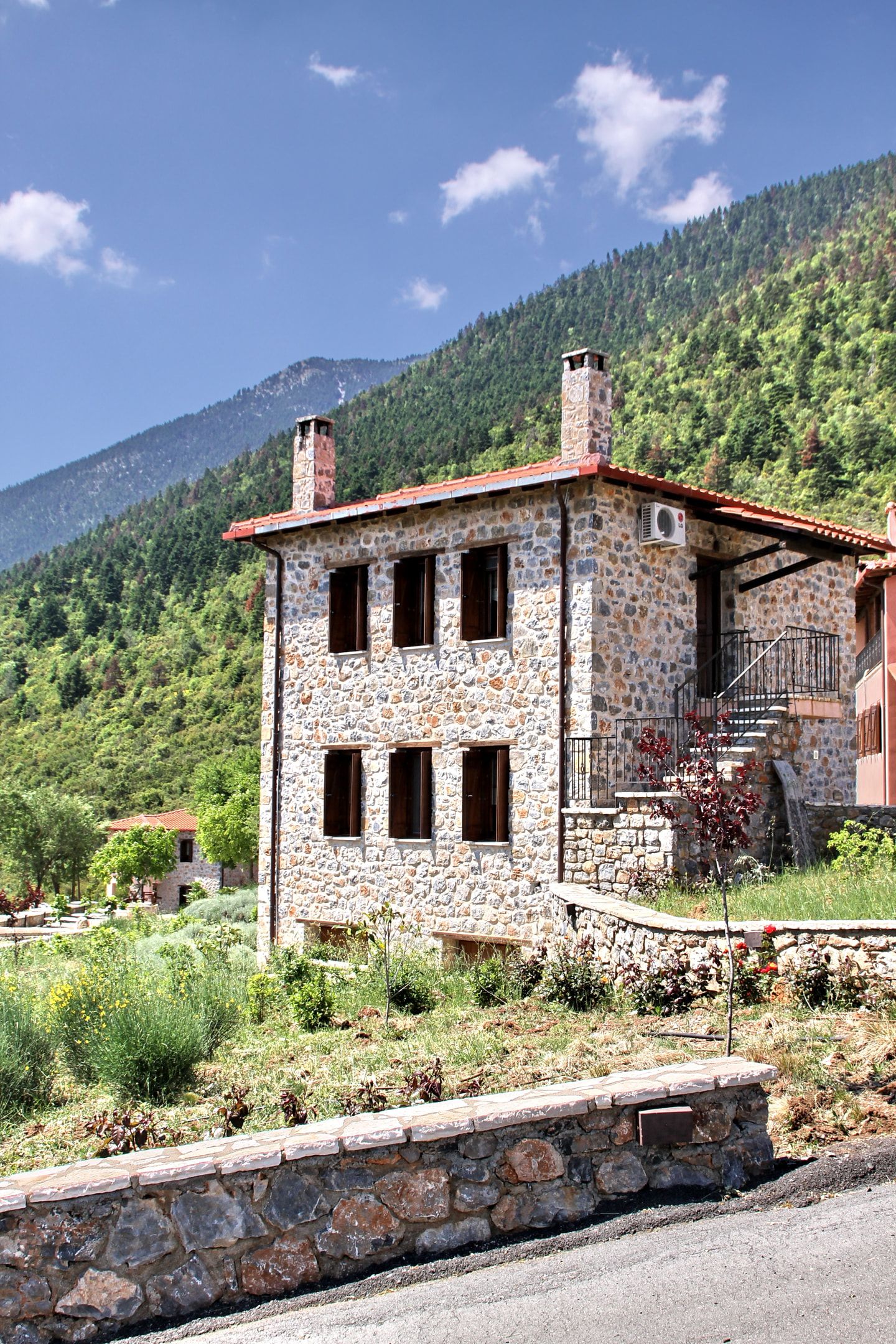 In a green area in the embrace of the forest of Mainalo, dominate the entrance of the picturesque Levidi the 6 stone-built "Nymphs" of Arcadia that host its visitors in 17 independent traditional guesthouses, perfectly harmonized with the natural beauty and architectural tradition of Arcadia. The solid charm of the stone, the soothing warmth of the local wood, combined with the discreet luxury in the decorative lines but also the modern facilities & comforts, compose a fairytale setting of relaxation and well-being within walking distance from the Athens.
