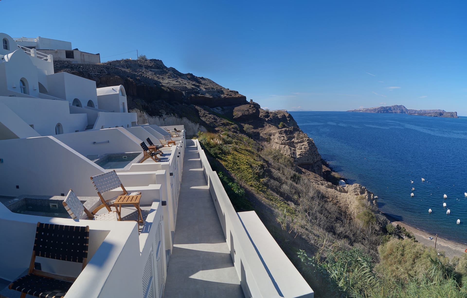Kokkinos Villas is just like a balcony over the Caldera and the clear waters of the deep blue Aegean Sea.