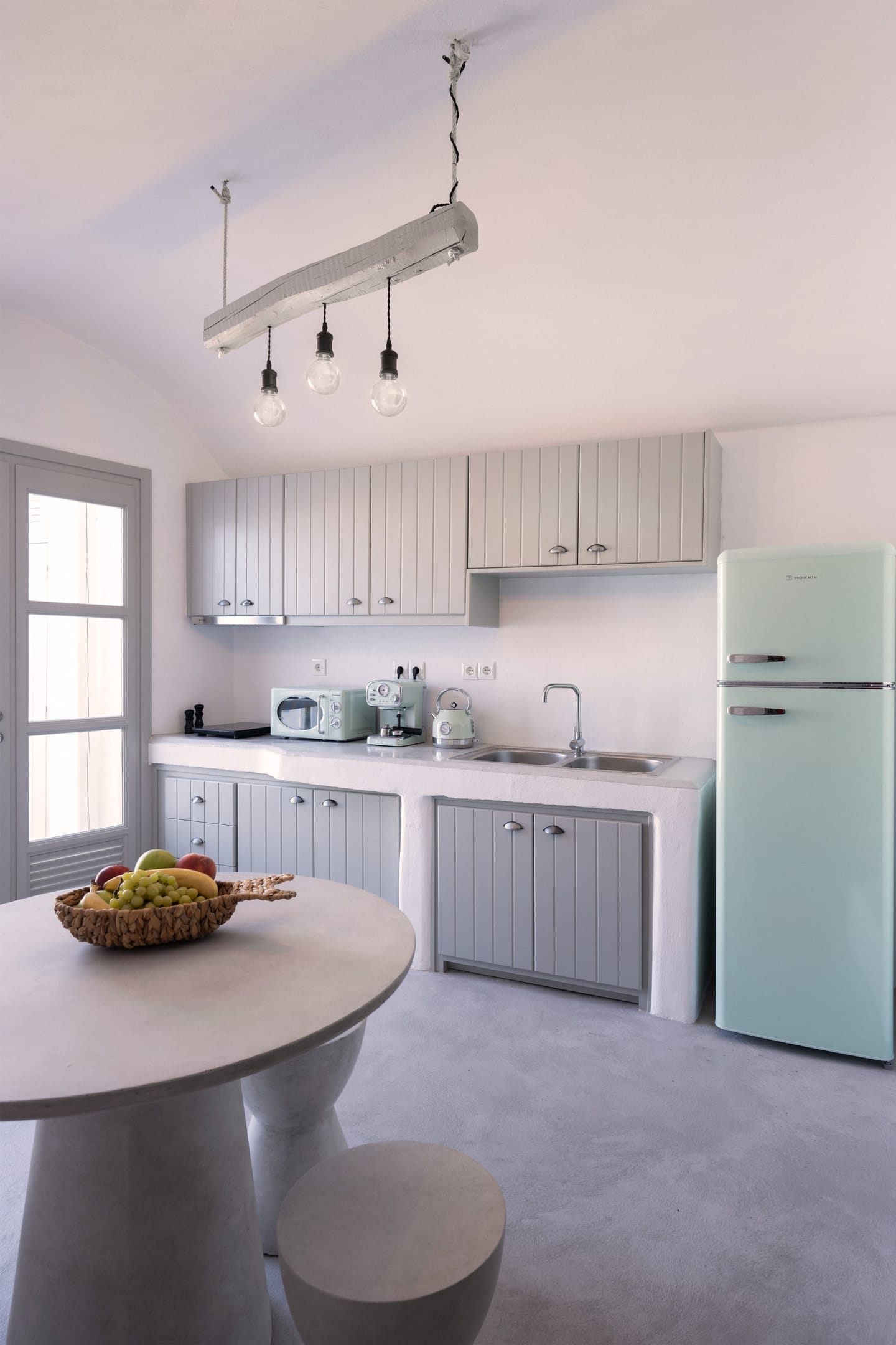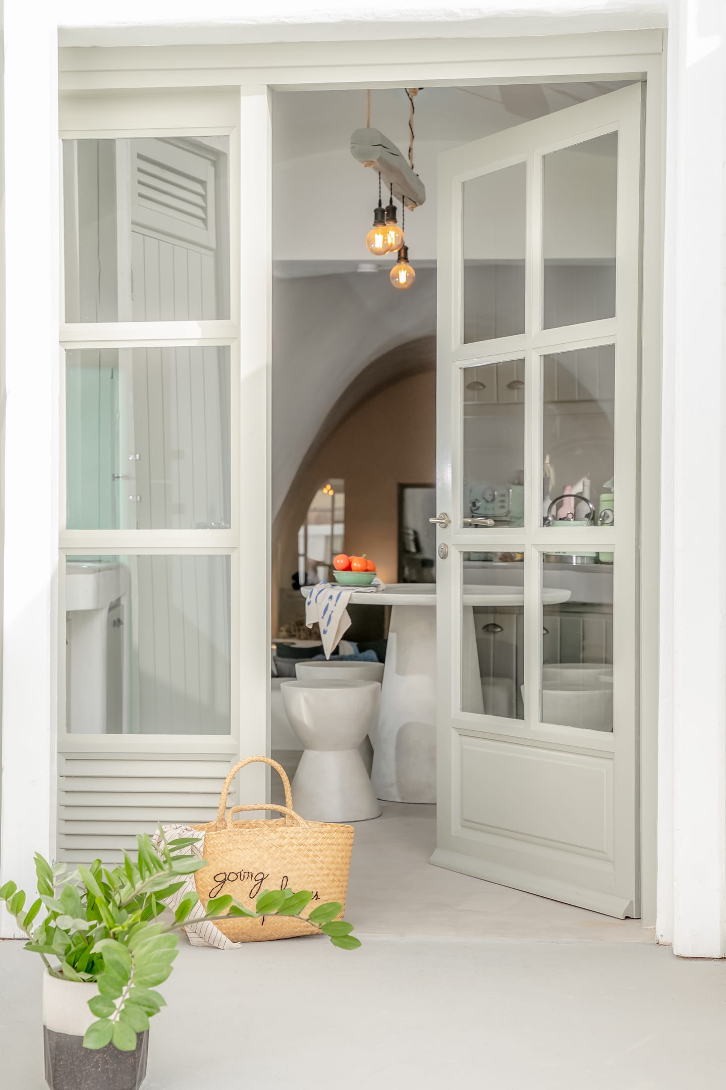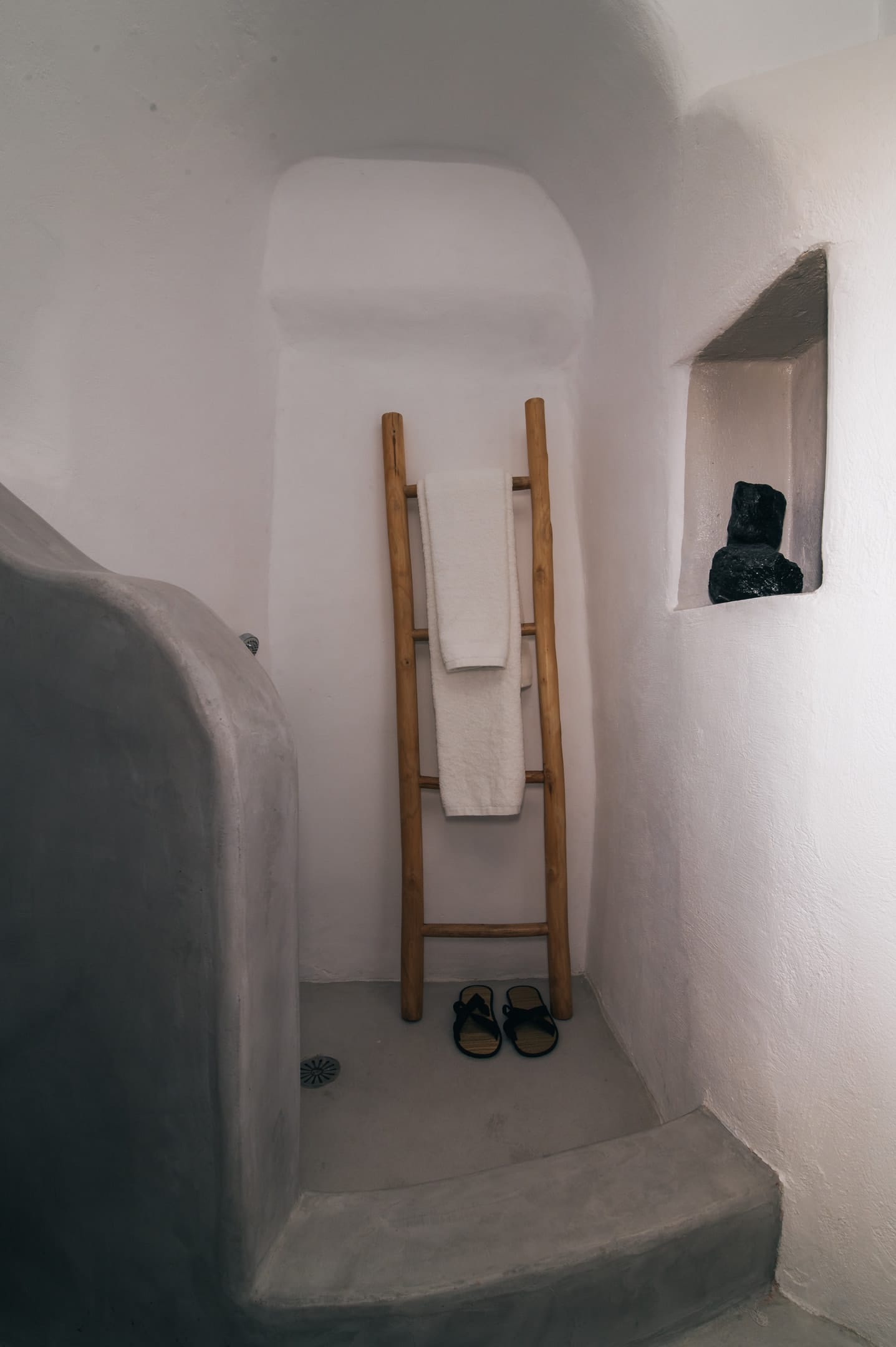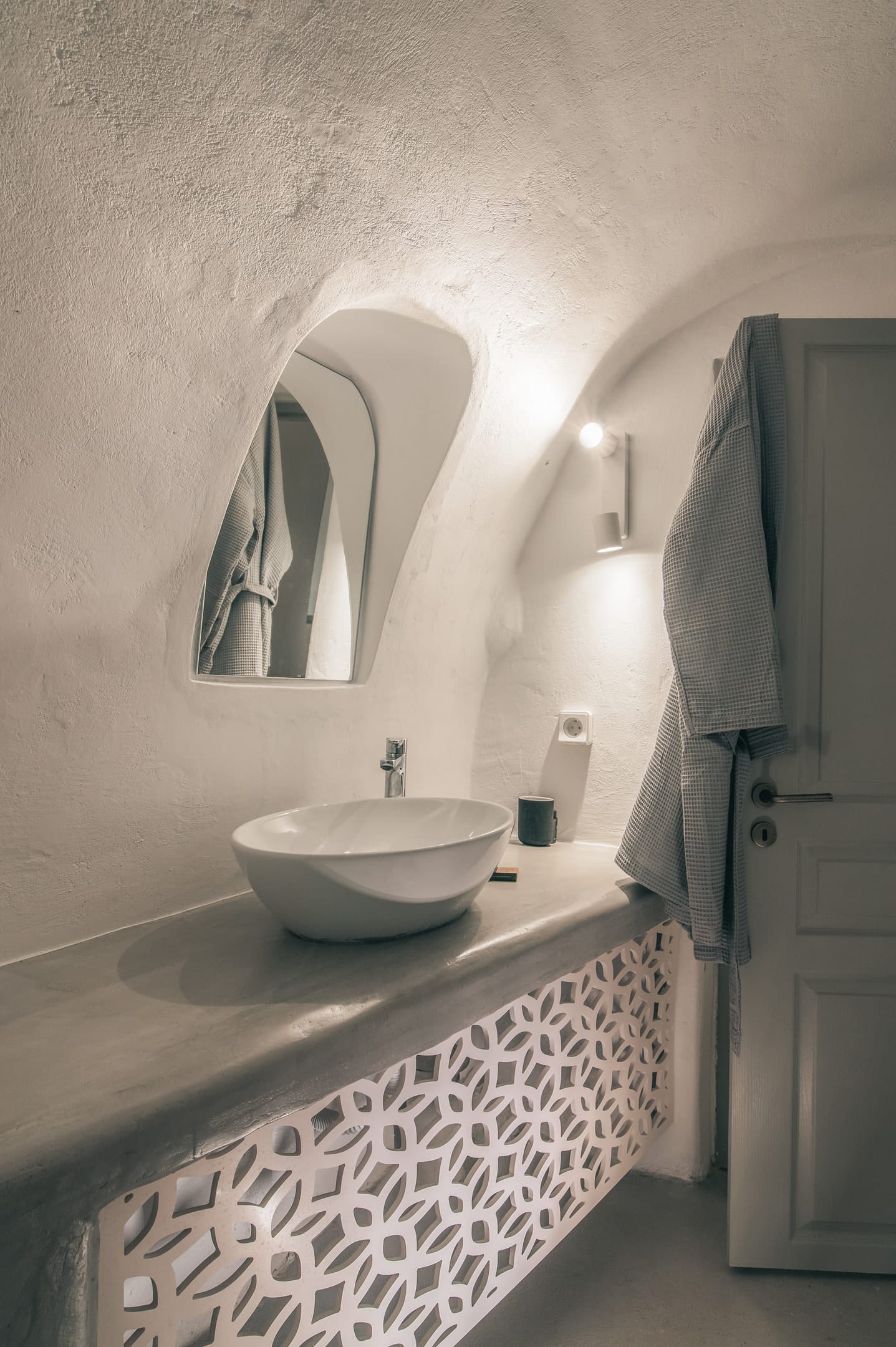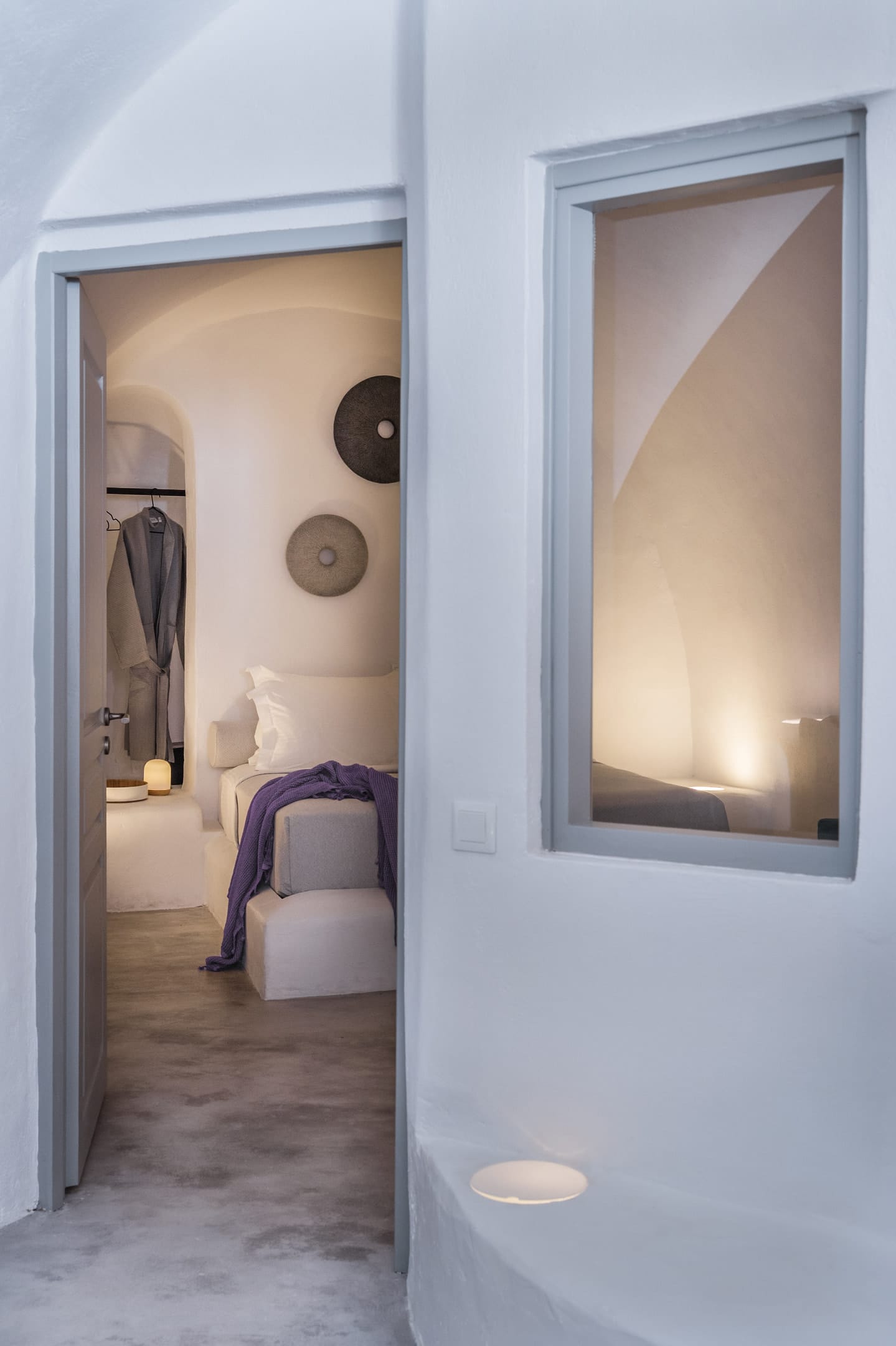 Cave House Villa – A minimal luxury villa nestled in the peaceful village of Megalochori, Santorini. Carved into the volcanic rock and inspired by traditional Cycladic architecture, the villa masterfully blends timeless elements with modern design. It features two king-size bedrooms with orthopedic mattresses, two full bathrooms, a heated jacuzzi, private hammam, mini gym, a fully equipped kitchen, and a cozy lounge area.