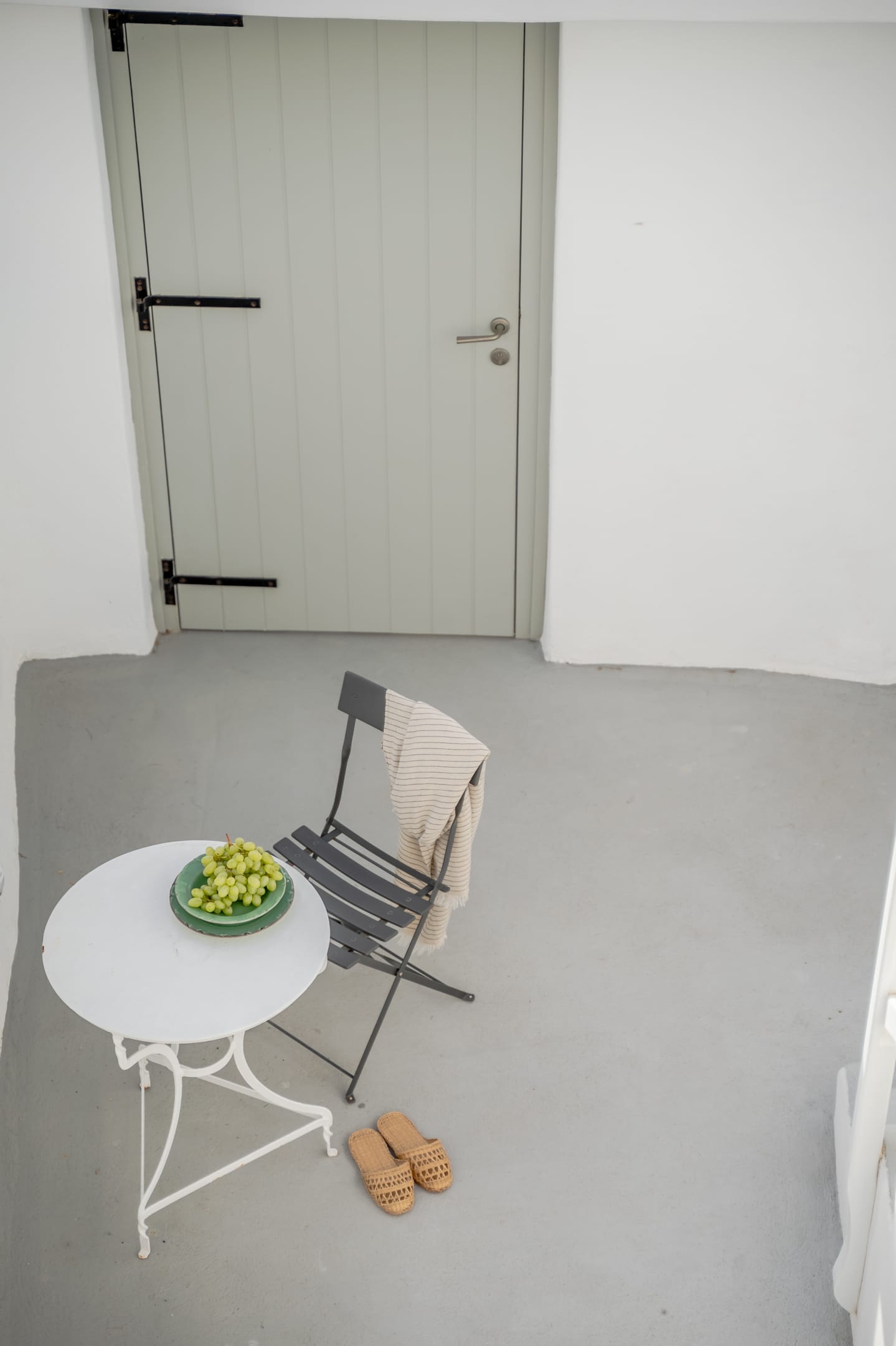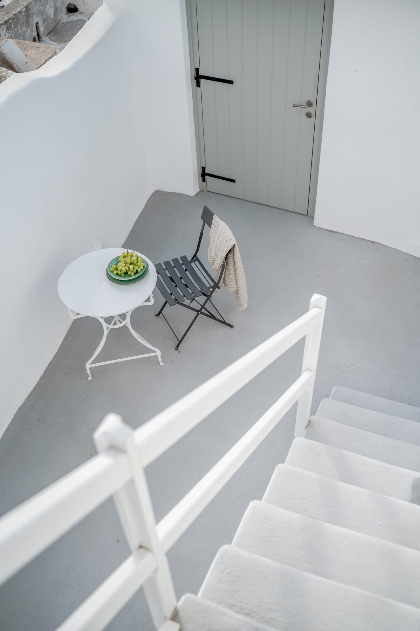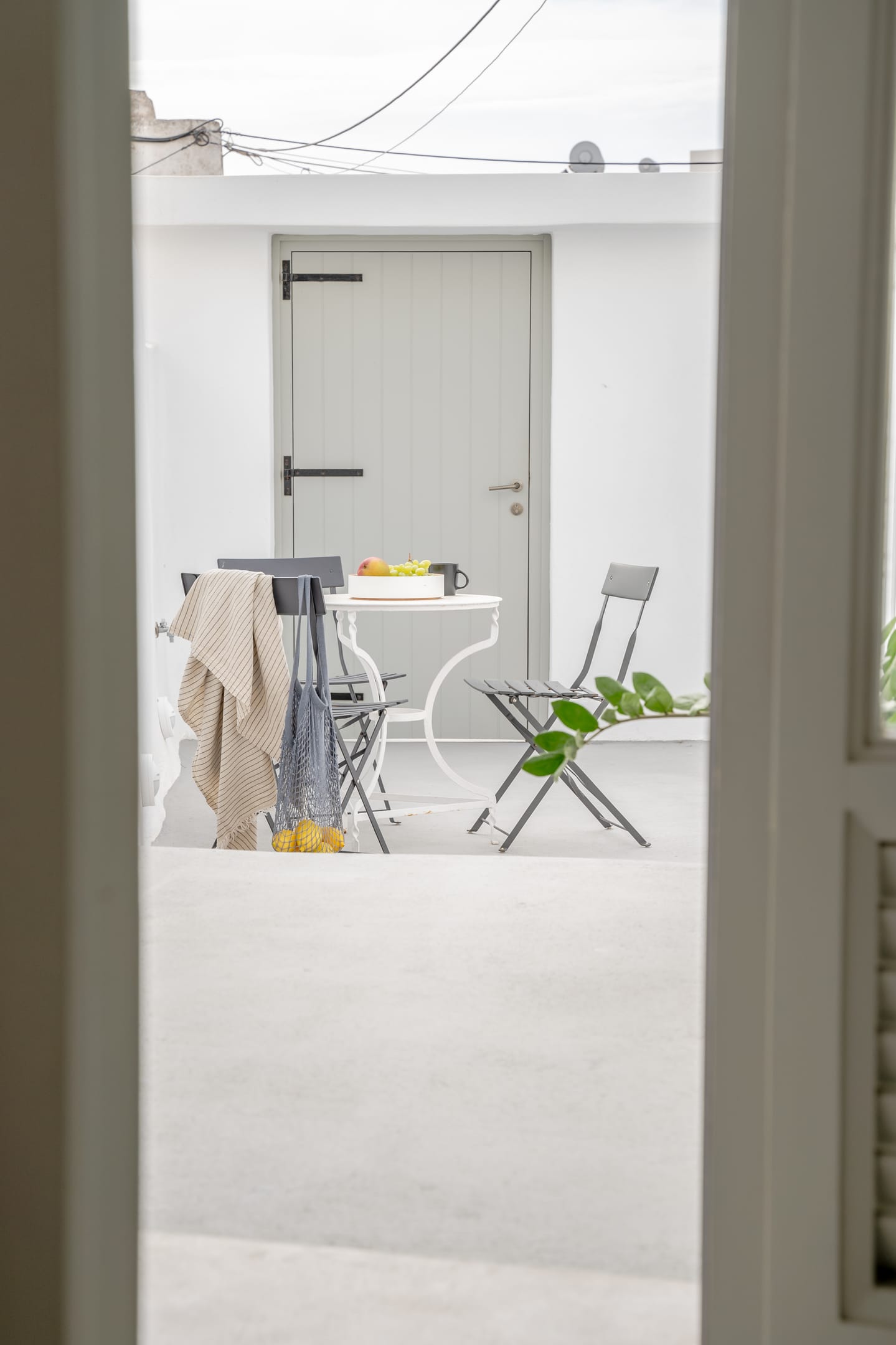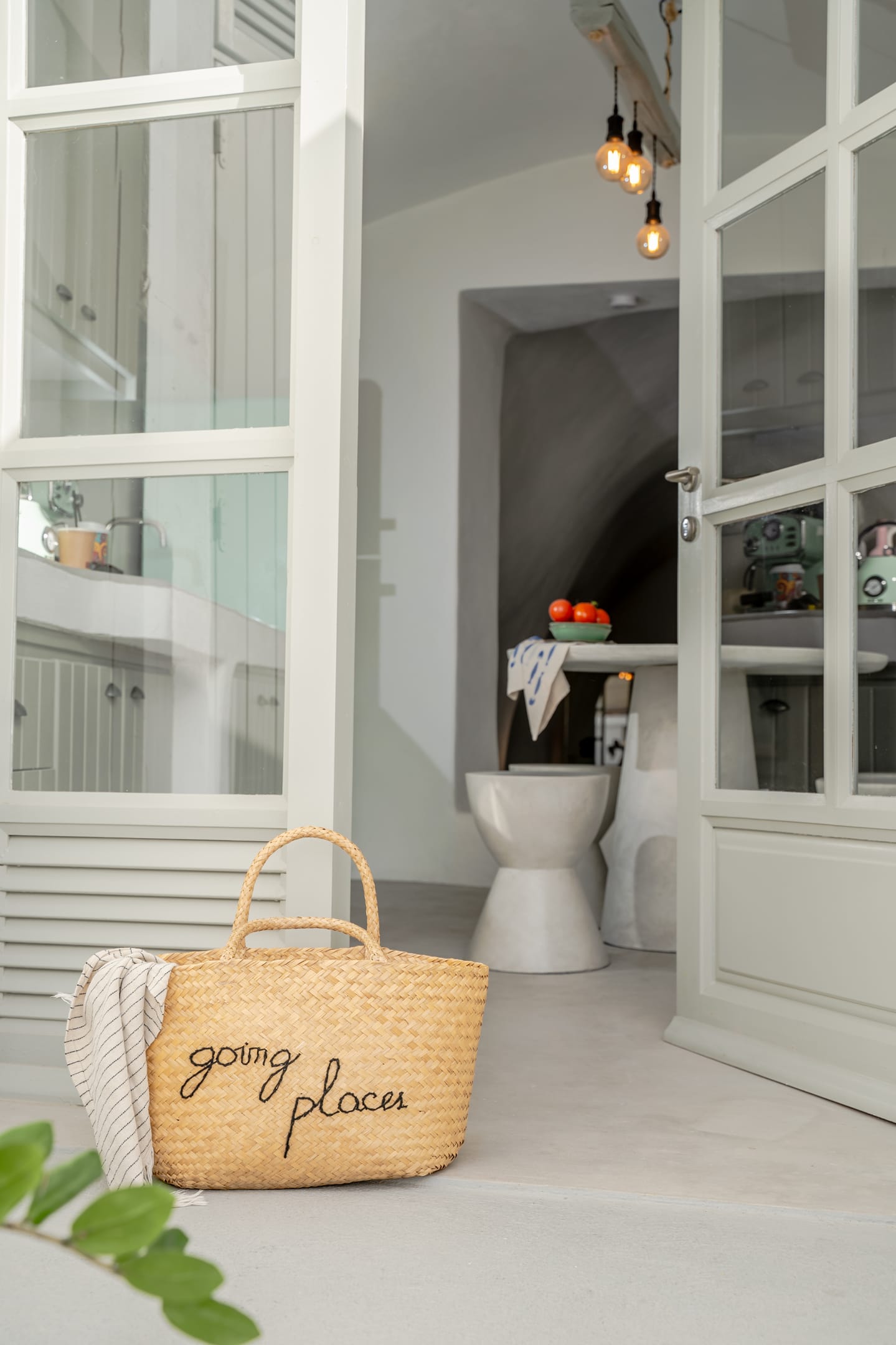 The spacious veranda and rooftop terrace open up to panoramic views of the caldera, the Aegean Sea, and Santorini’s iconic sunsets. The whitewashed, minimalist palette and curated amenities elevate both the aesthetic and the essence of the experience.