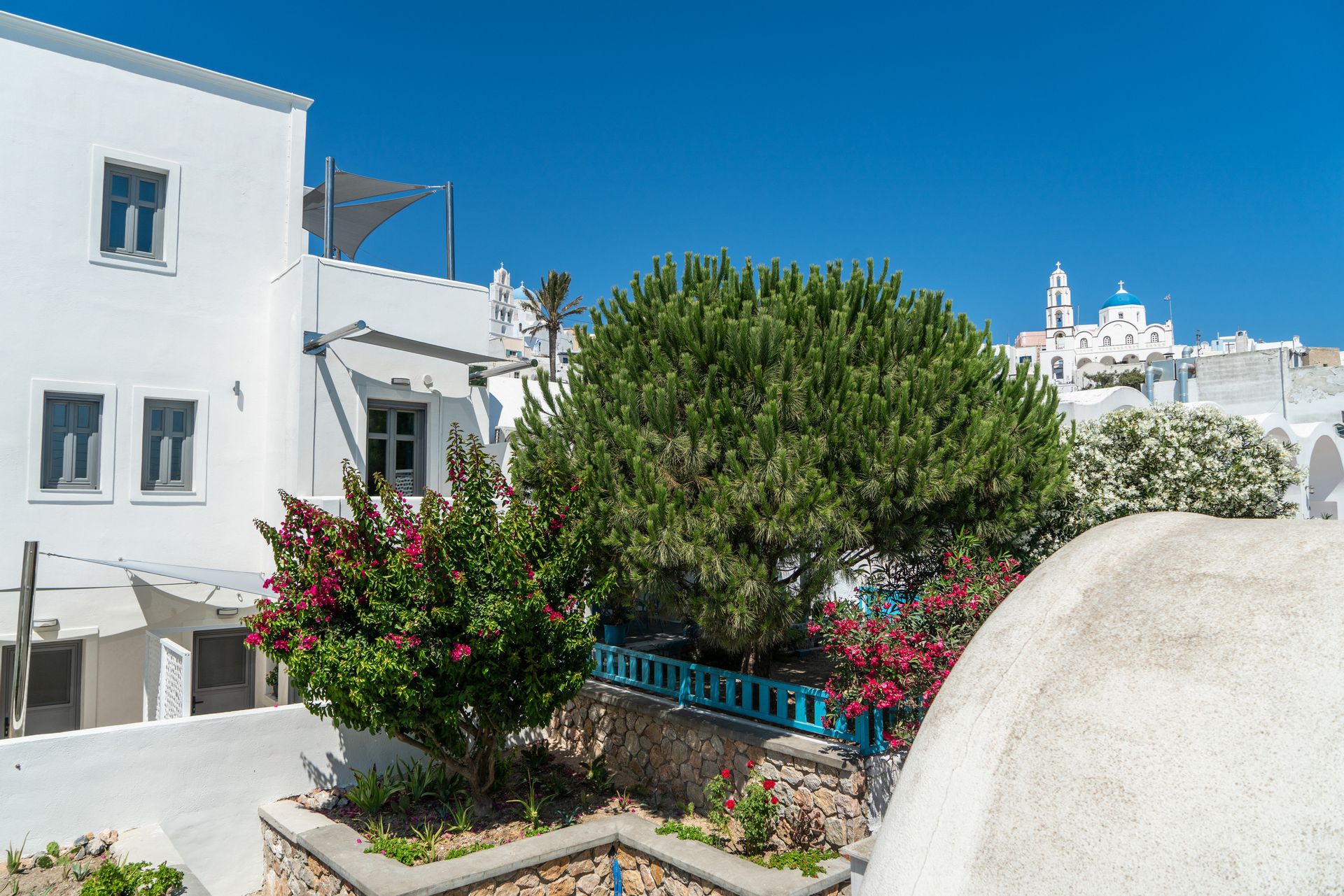 Ladas Pyrgos Houses are located in the center of Pyrgos village. Self-catering accommodation complex, with modern houses and studios. . All feature elegant furnishings, satellite TV, kitchenette, free wifi and private bathrooms. It is a hoteliers family, providing a home with professional touch. Weekly cleaning service, sheets,towels are provided.
