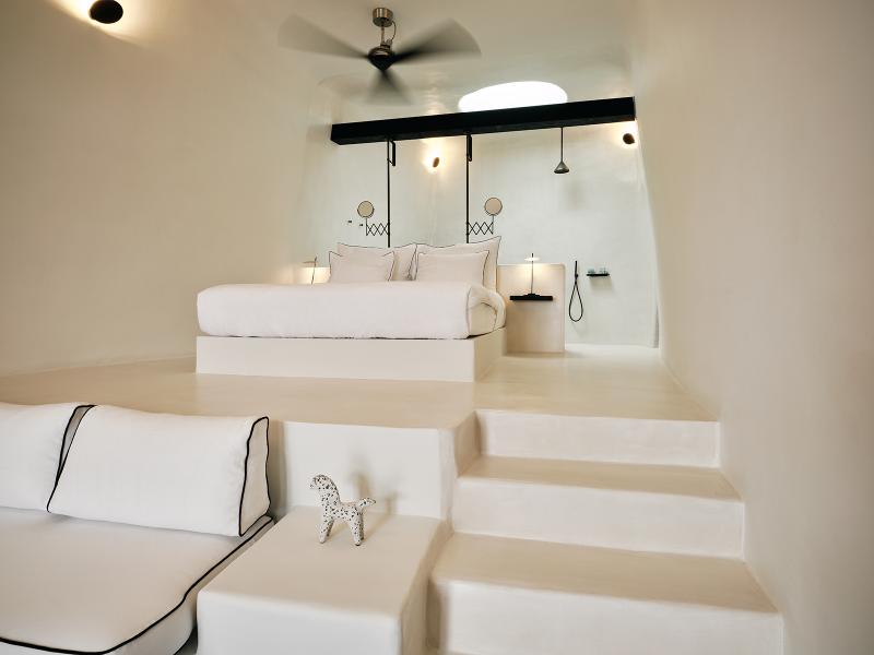 In a time of boundaries and limitations, give yourself the luxury of an experience without limits. Abyss - a boutique designer hotel. 5 luxury suites and a Grand Villa, offering outdoor hot tubs and caldera views. Front office is open 08:00-23:00. Suites offer lounge terrace with private plunge pools and direct view of the Caldera. The living area with double size bed, walk in closet, mini bar, wireless internet. The open space bathroom is equipped with separate rainfall shower and luxury bathroom amenities.